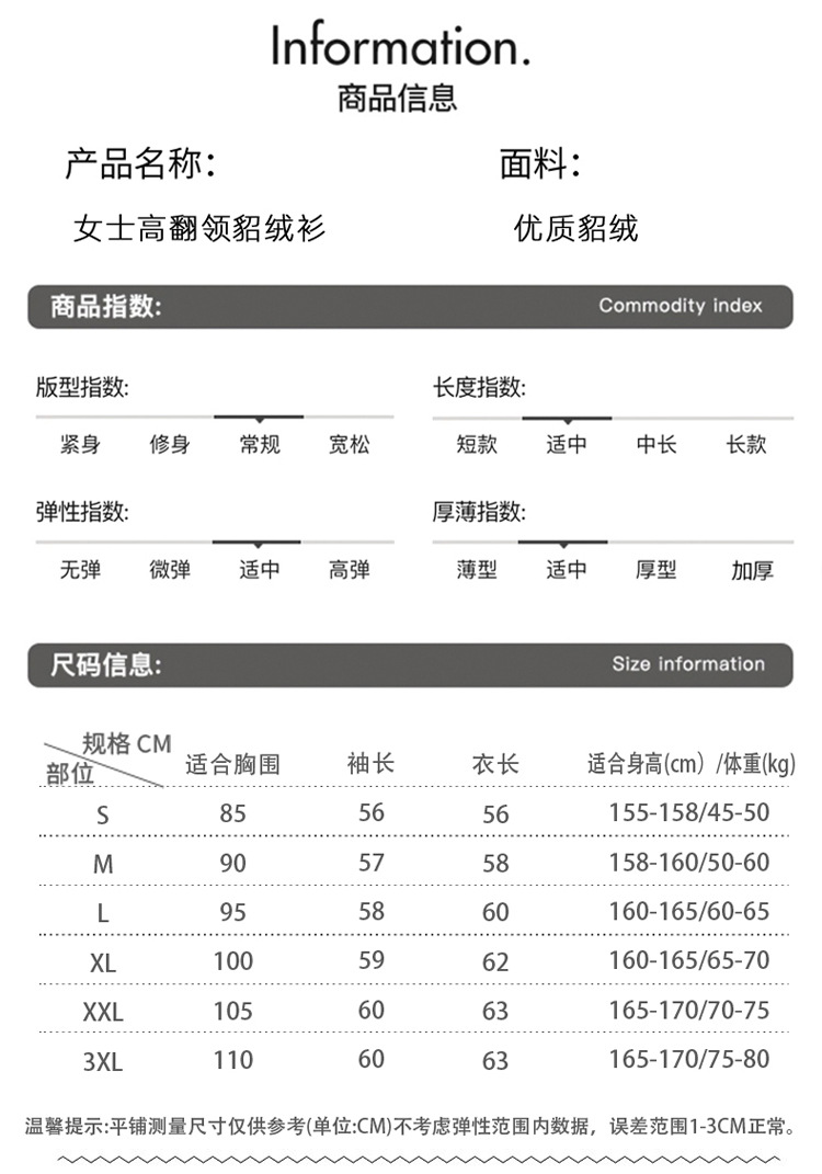 Choice 2024年秋冬新款貂绒毛衣女高领内搭宽松羊绒针织打底衫加厚百搭