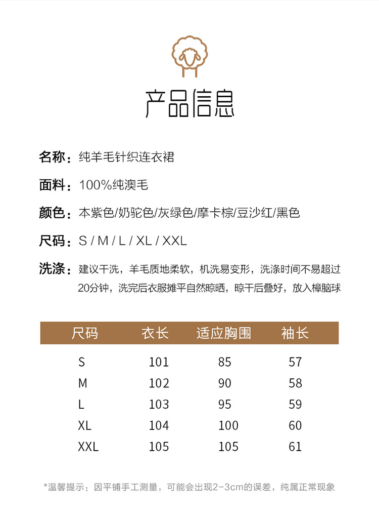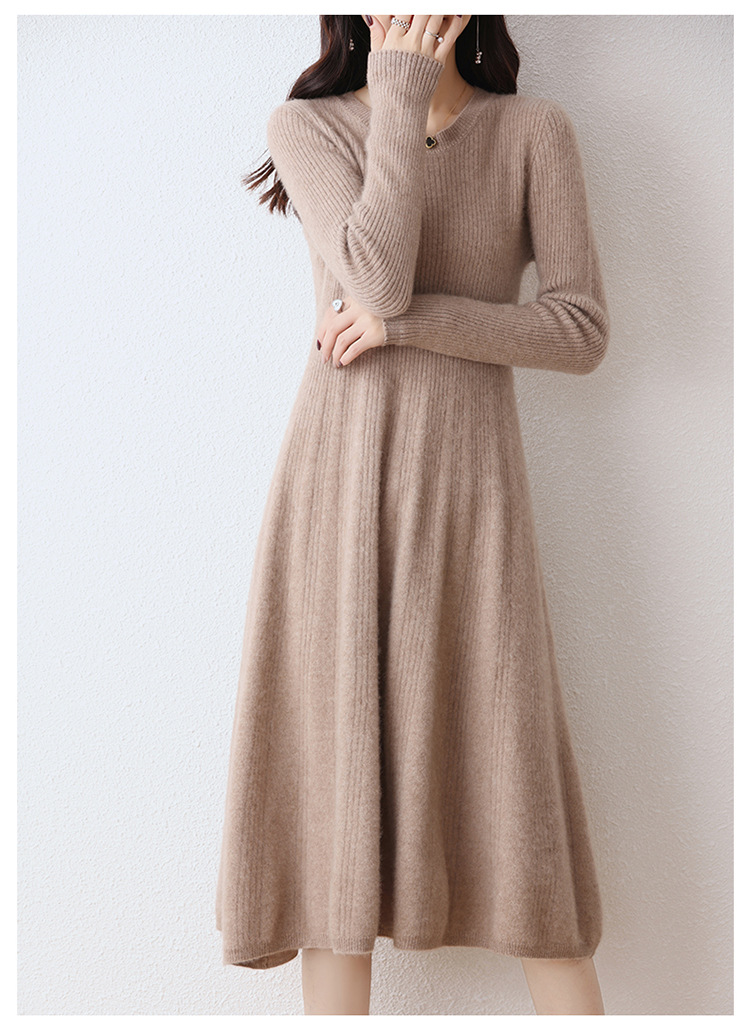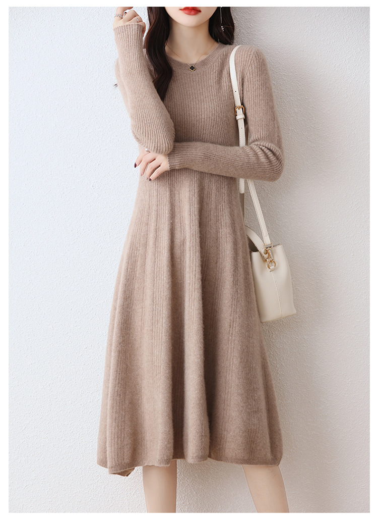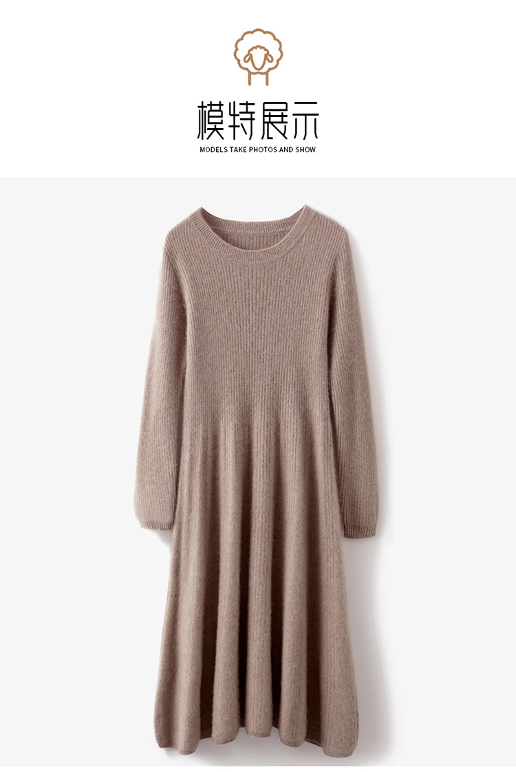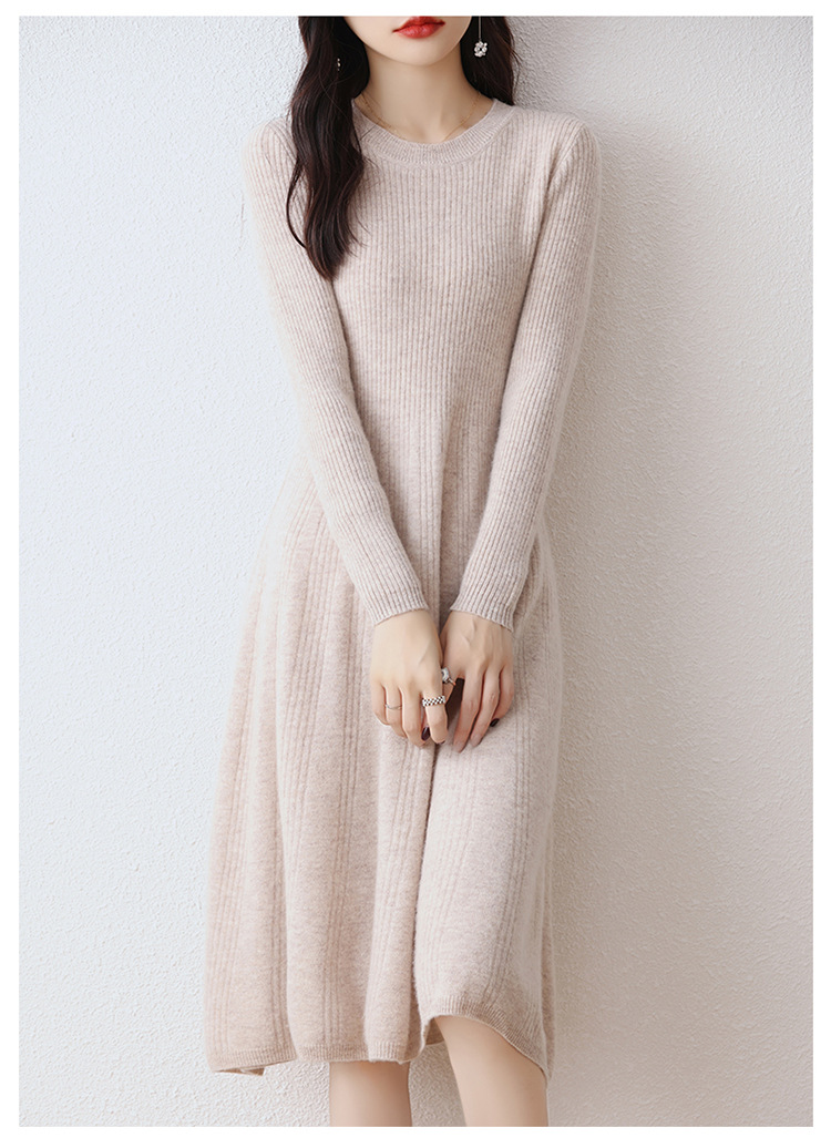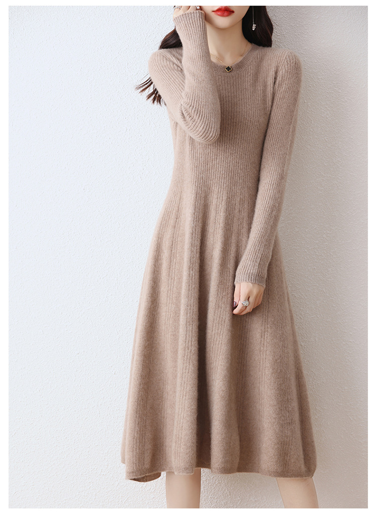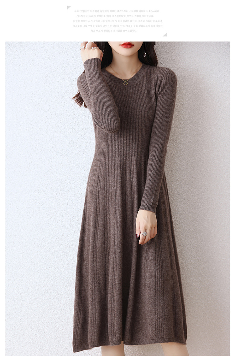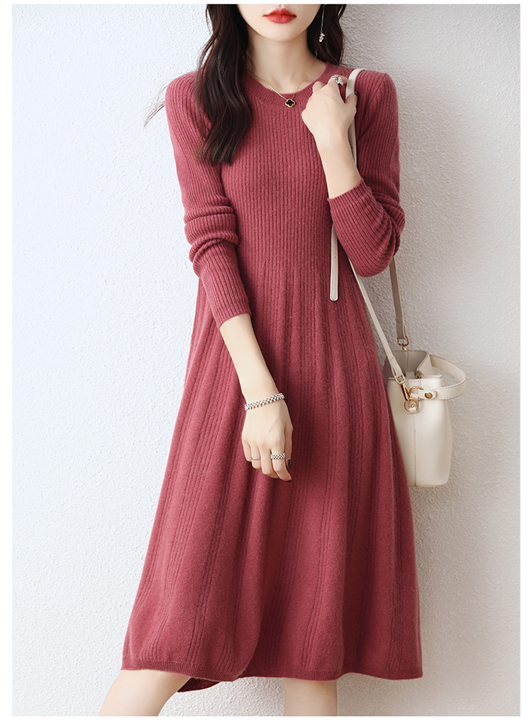 Choice 100纯羊毛针织连衣裙女中长款过膝毛衣裙秋冬圆领羊绒打底大摆裙