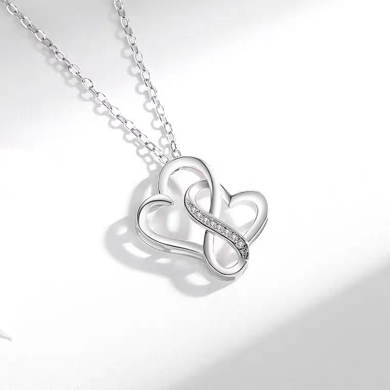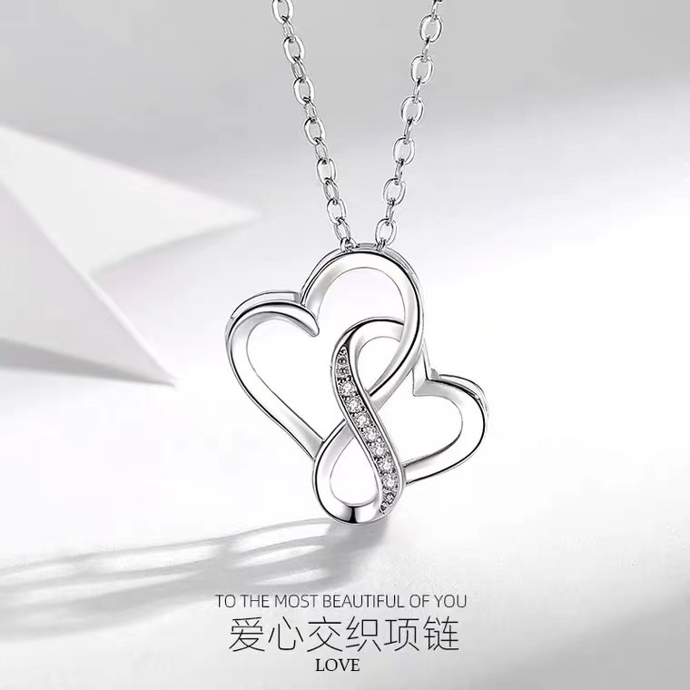 爱心交织项链高级感爱心项链女时尚锁骨链母子双心微镶情人节礼物