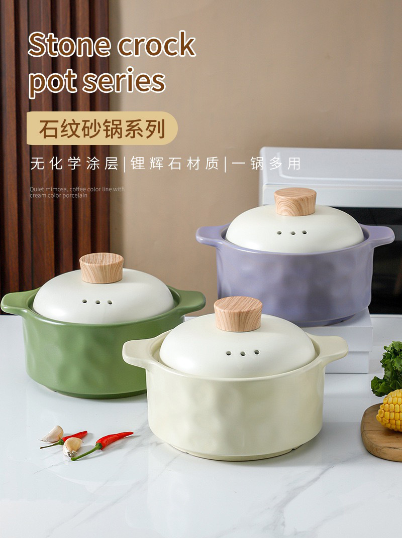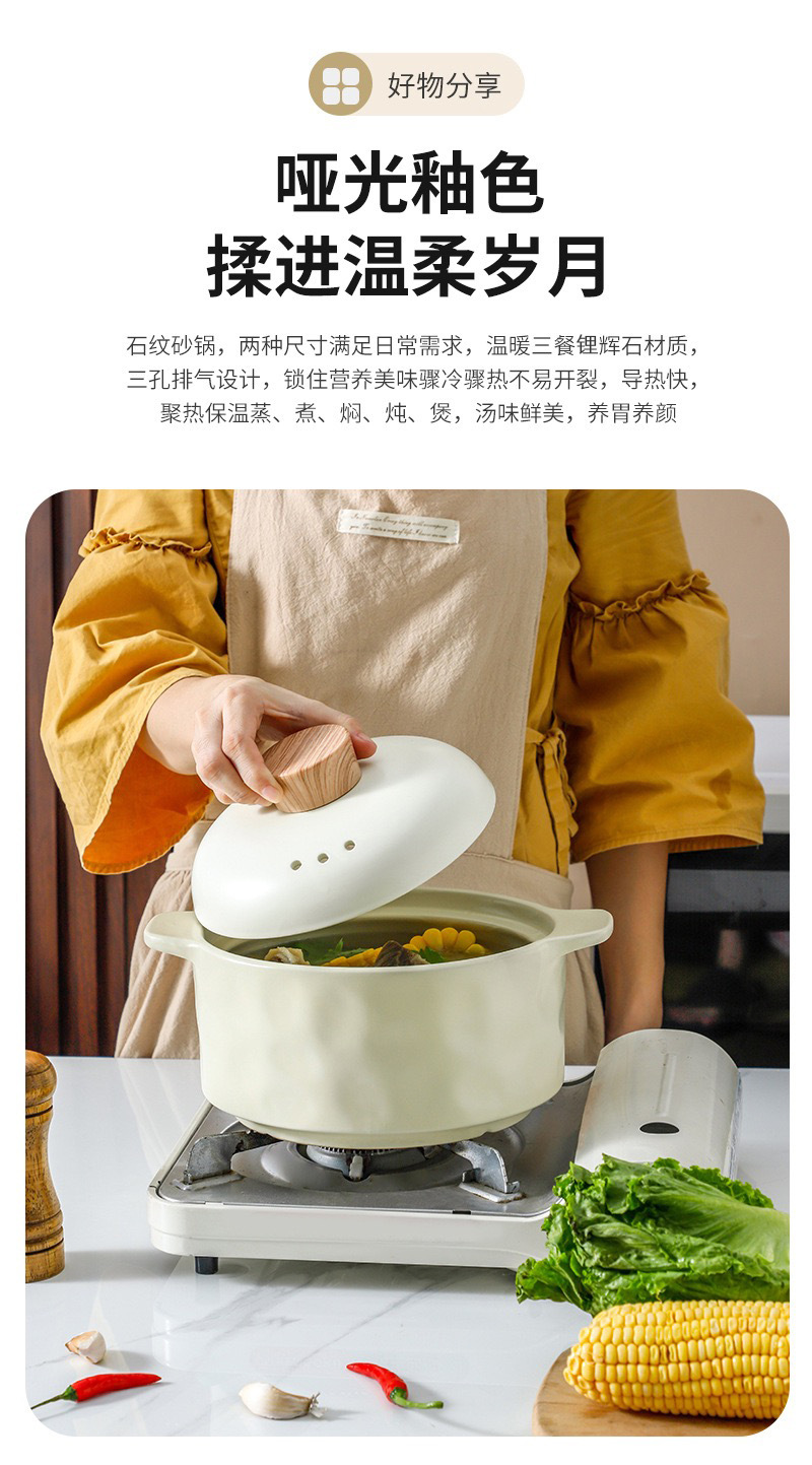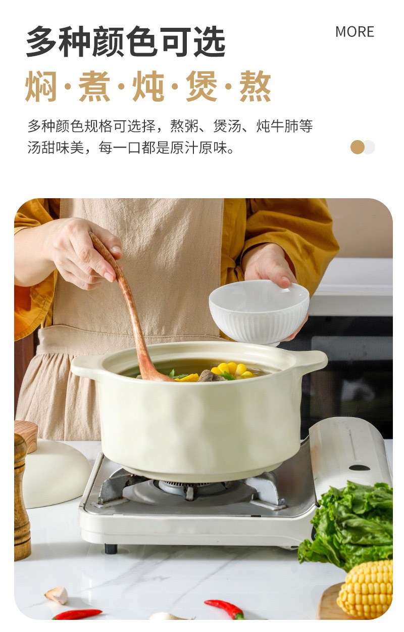 北欧轻奢陶瓷砂锅家用燃煤气灶煲汤锅明火耐热耐高温干烧不裂炖锅