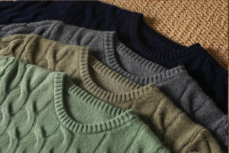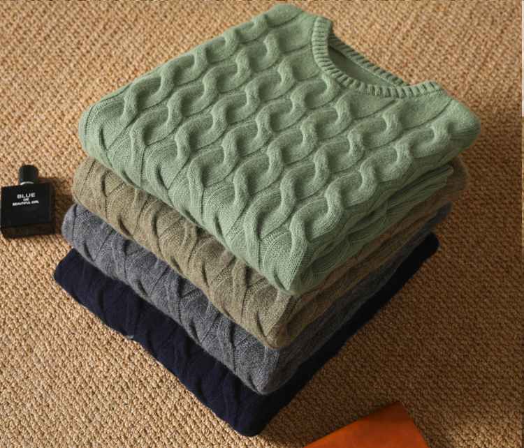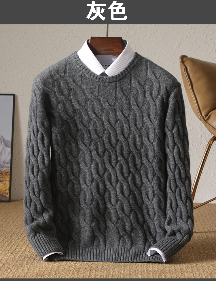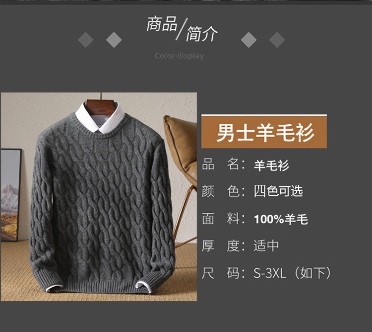 25秋冬加厚男士100羊毛衫圆领麻花套头保暖针织中年毛衣打底衫