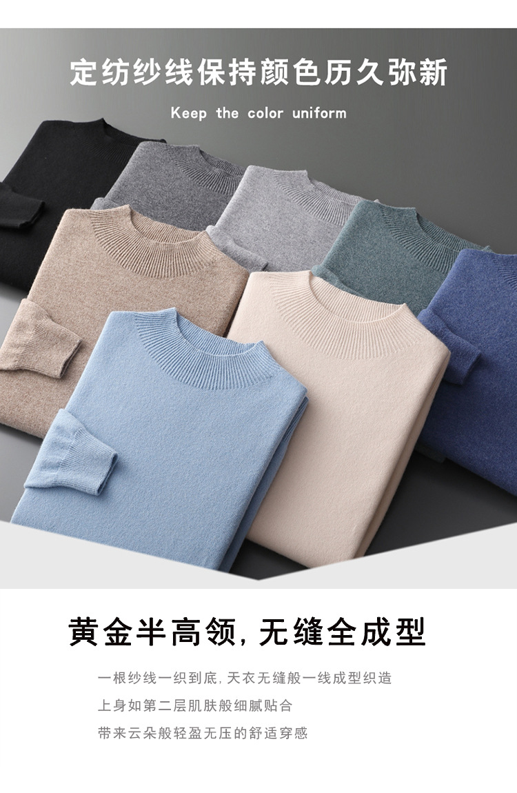 Choice 一线成衣半高领羊毛衫男2024新款纯色针织毛衣宽松保暖套头打底衫