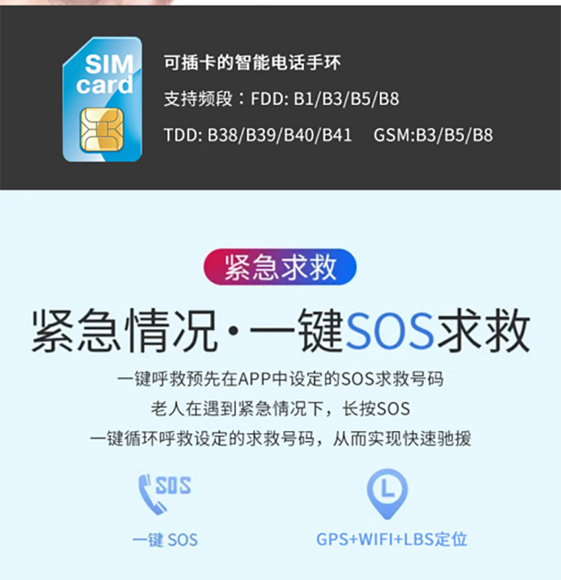 智能老人电话手表心率血氧血压养老适老化项目防走丢定位手环跨境