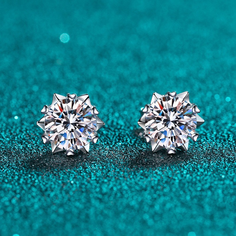 直播货源1克拉耳钉热卖水滴雪花甜美百搭八心八箭锆石高碳钻耳饰