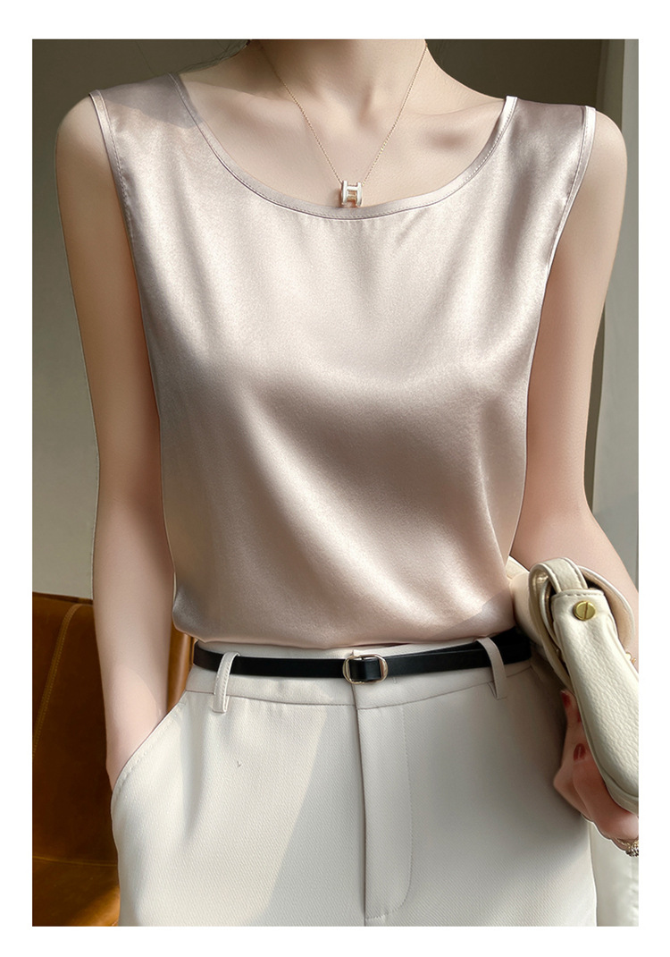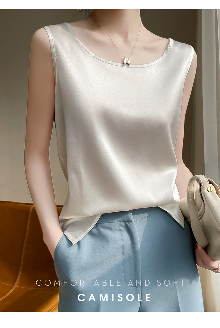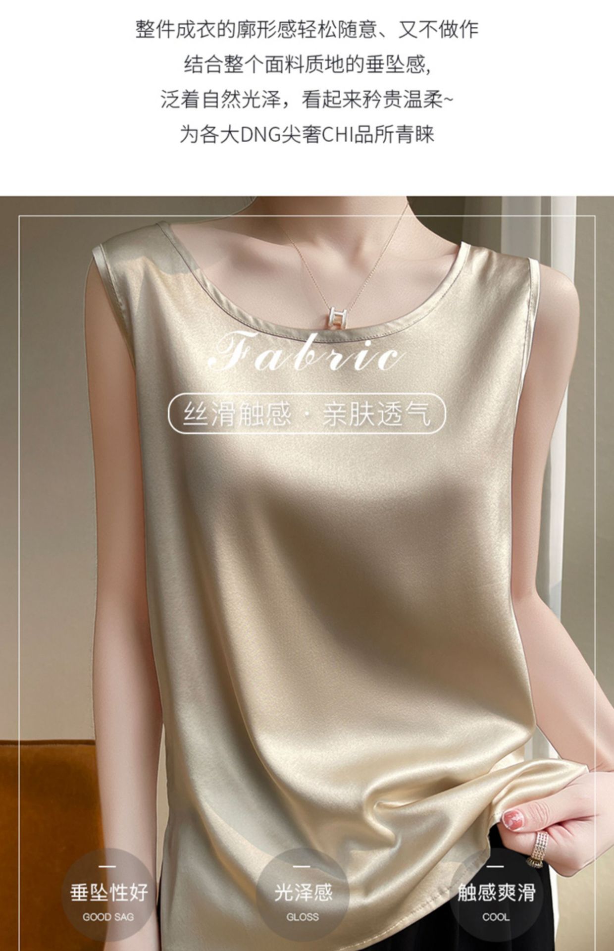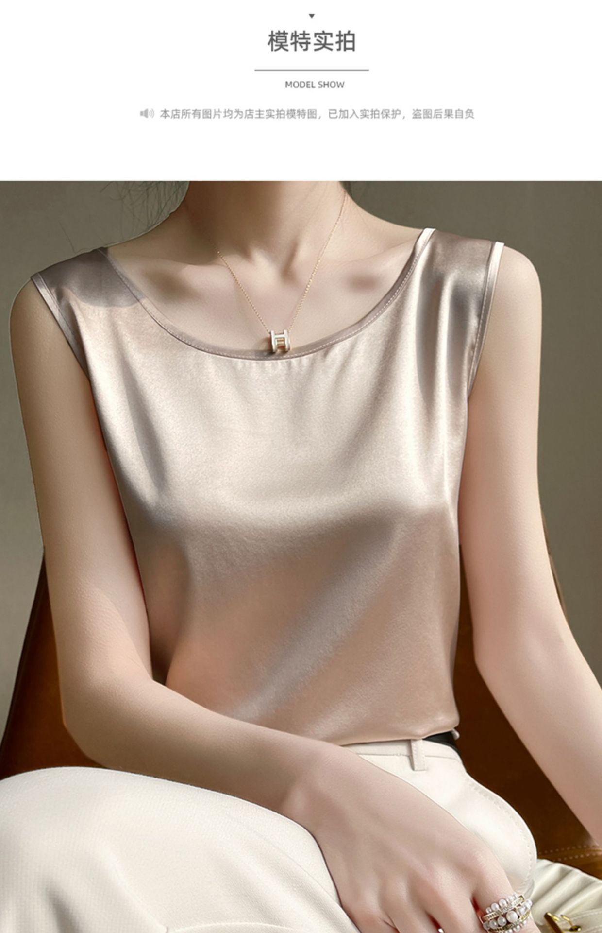 Choice 夏圆领真丝吊带背心女小西装内搭宽松外穿无袖上衣桑蚕丝打底衫