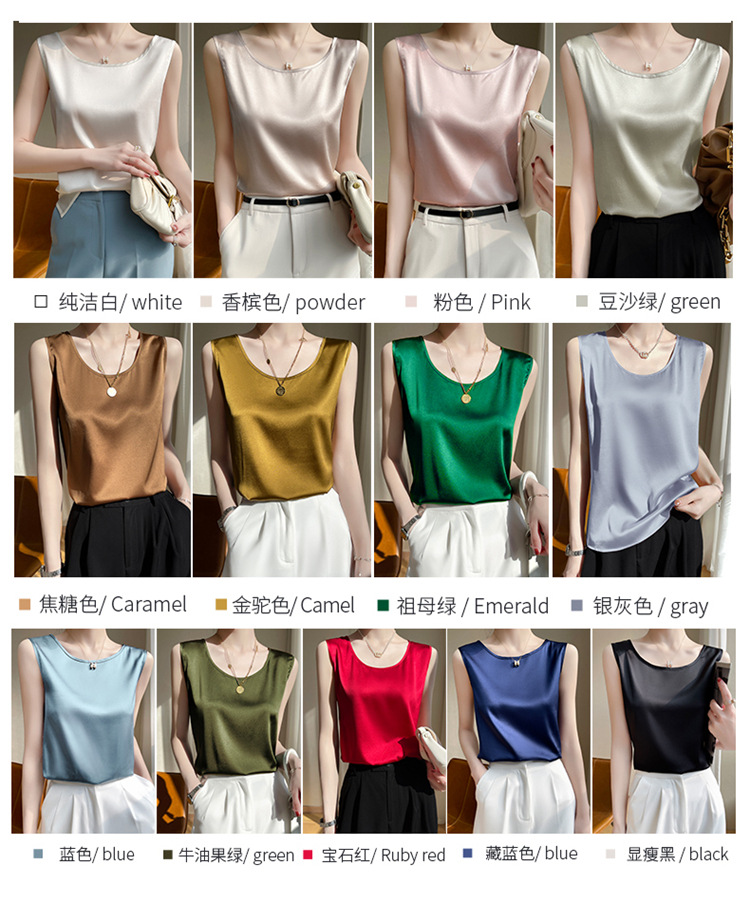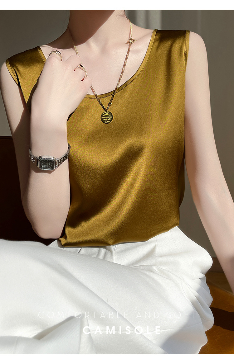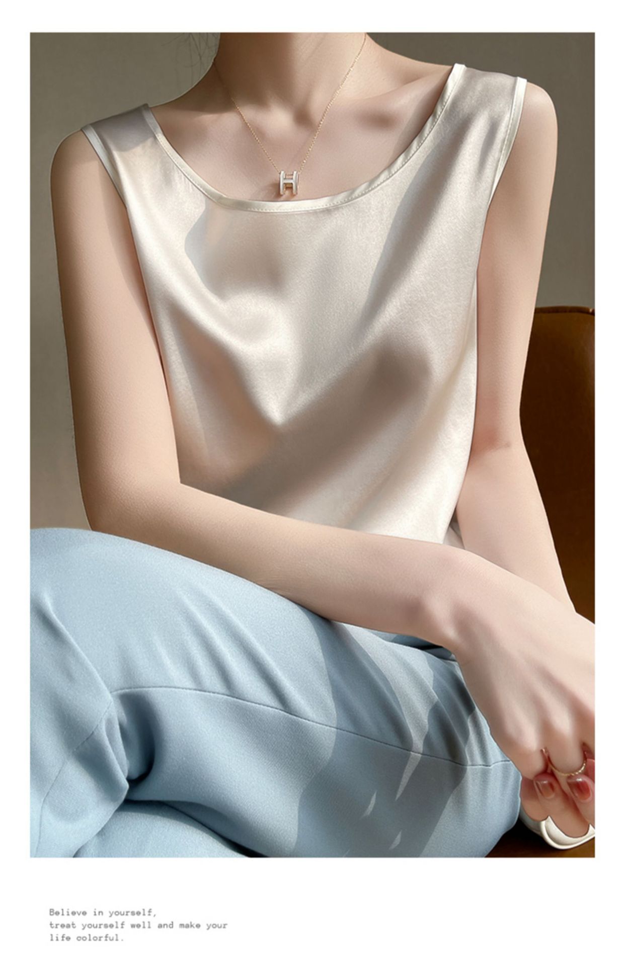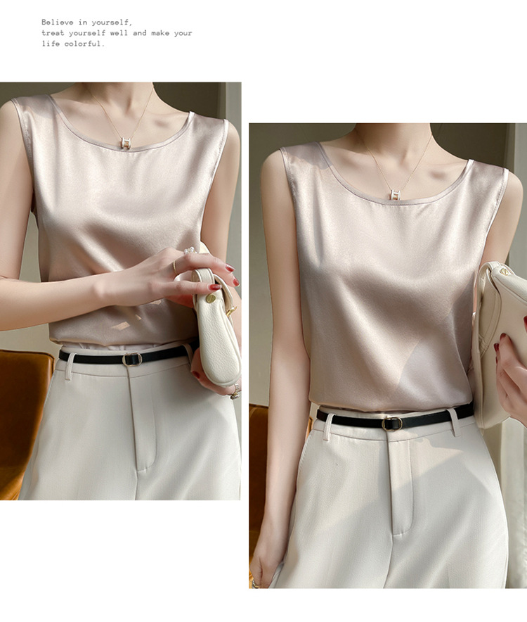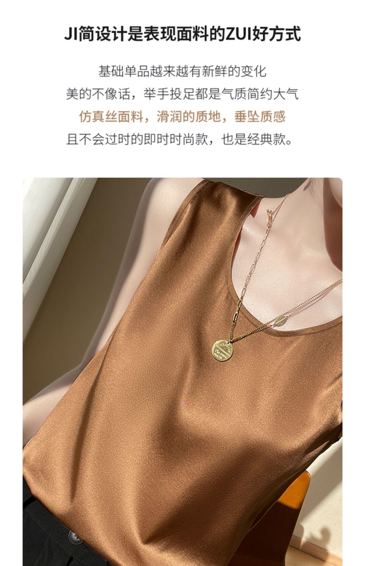 Choice 夏圆领真丝吊带背心女小西装内搭宽松外穿无袖上衣桑蚕丝打底衫