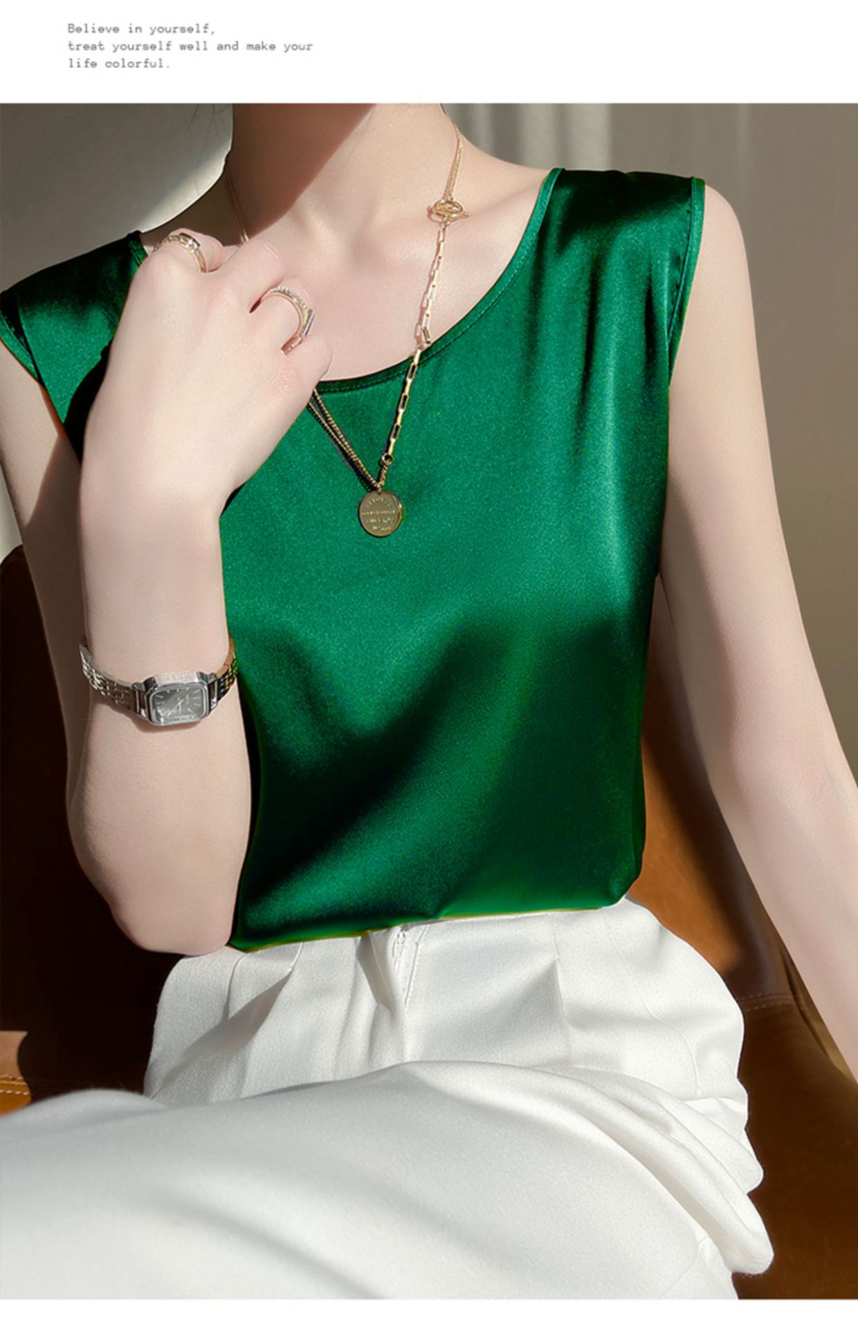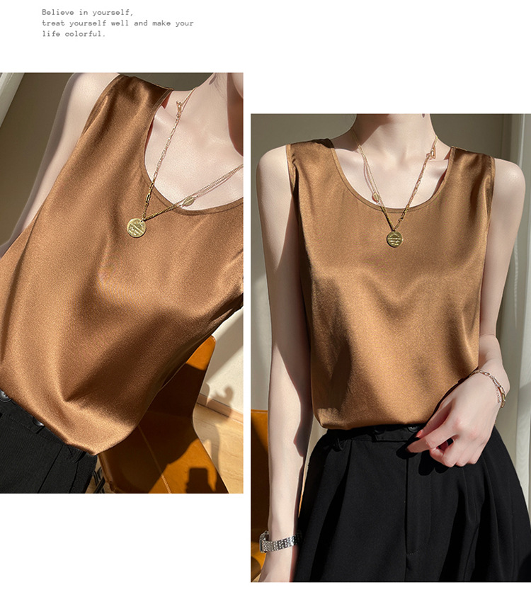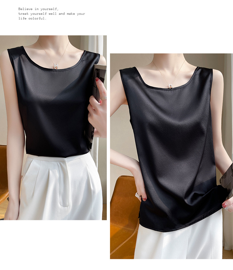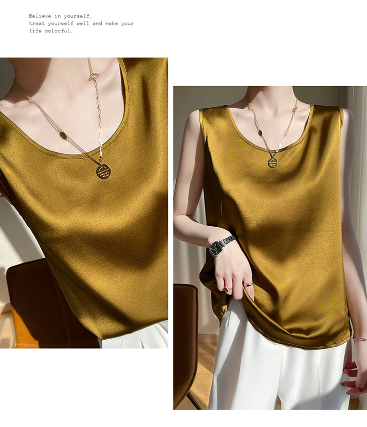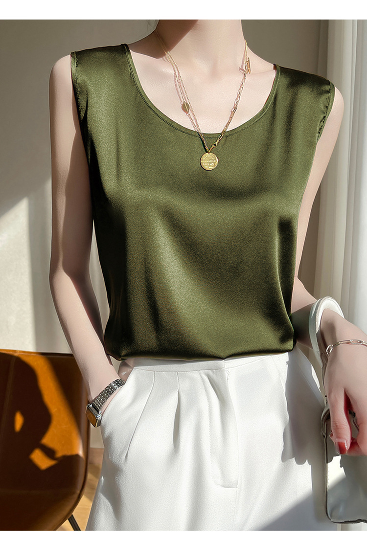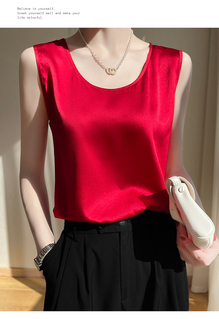 Choice 夏圆领真丝吊带背心女小西装内搭宽松外穿无袖上衣桑蚕丝打底衫