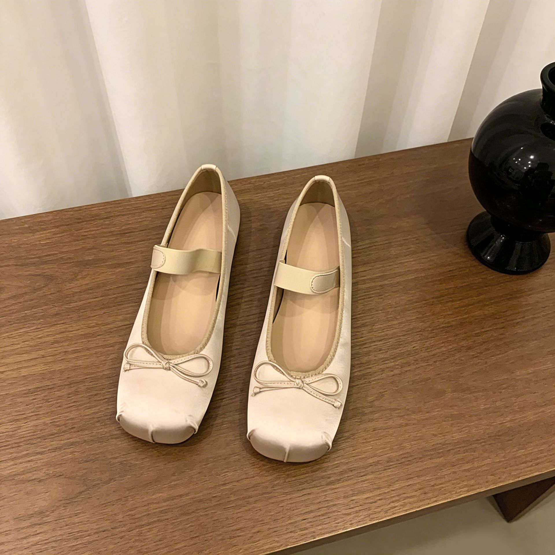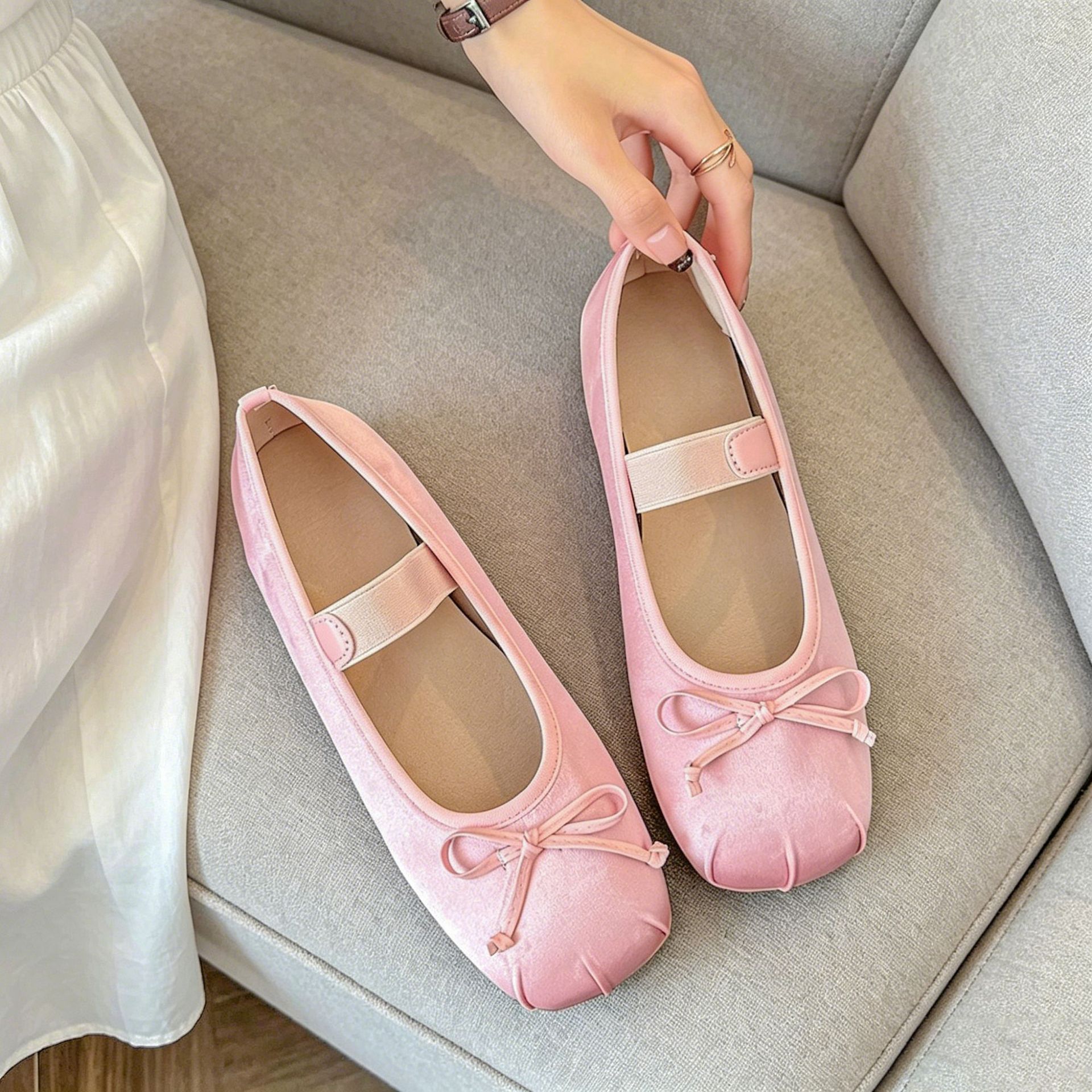东大门平底粉色芭蕾舞单鞋2025年秋季新款复古缎面玛丽珍鞋平底鞋