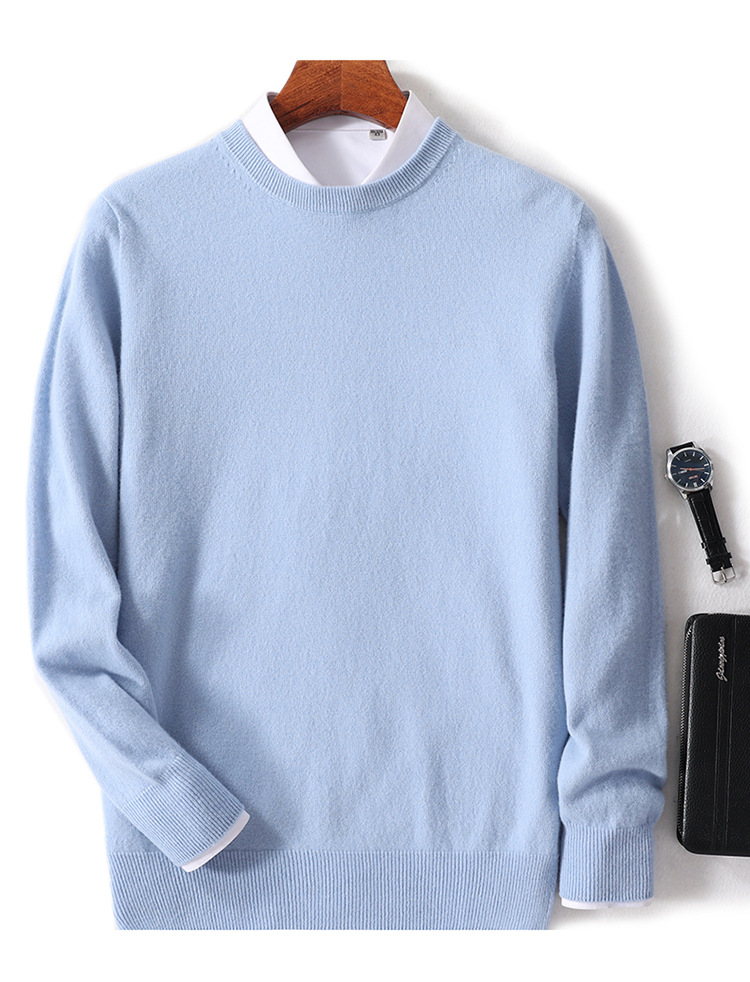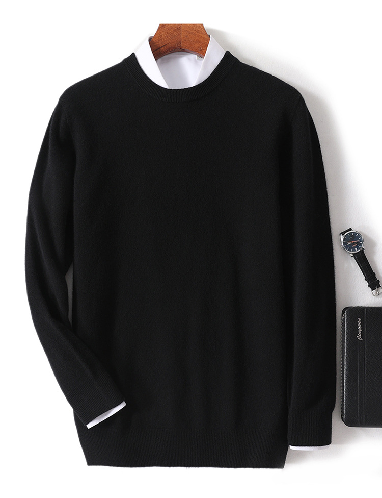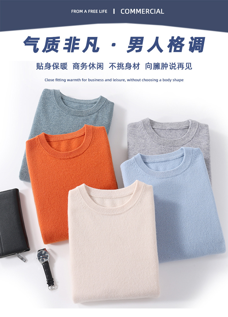 25秋冬一线成衣圆领羊毛衫男纯色羊毛针织毛衣宽松保暖套头打底衫