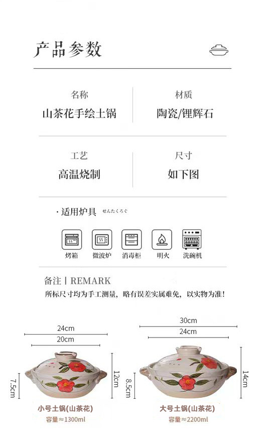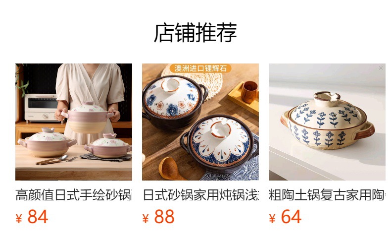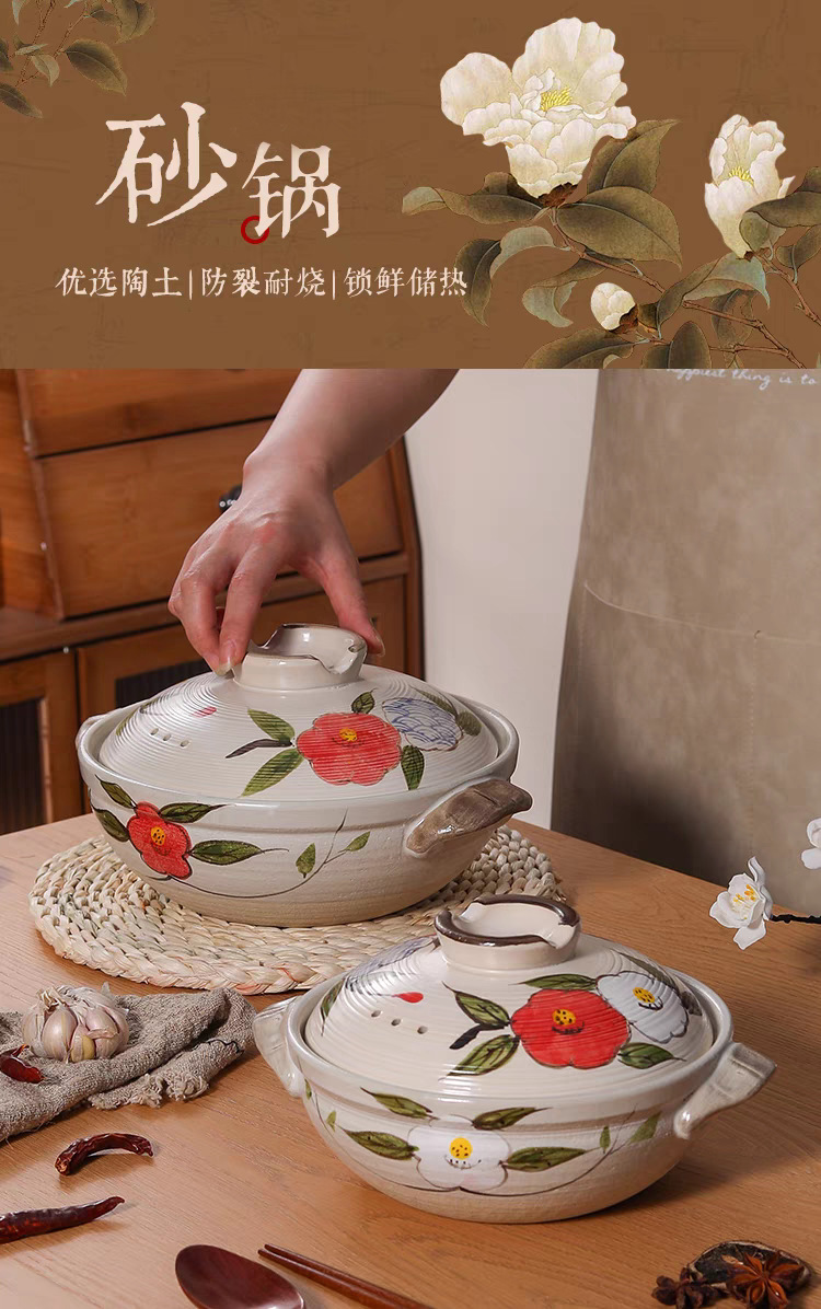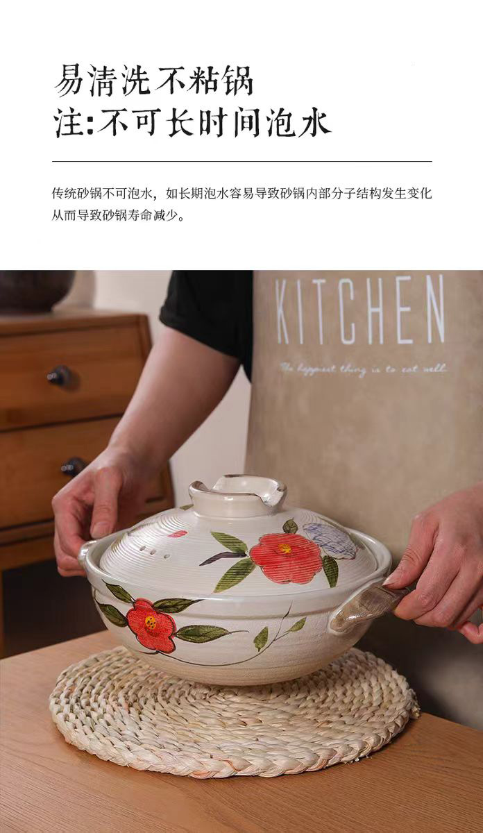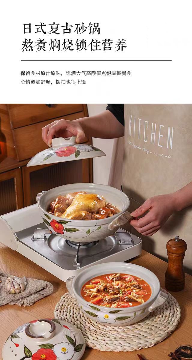 日式土锅耐高温砂锅干烧煲仔饭浅煲家用陶瓷小沙锅煤气灶专用炖锅
