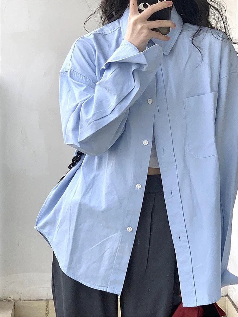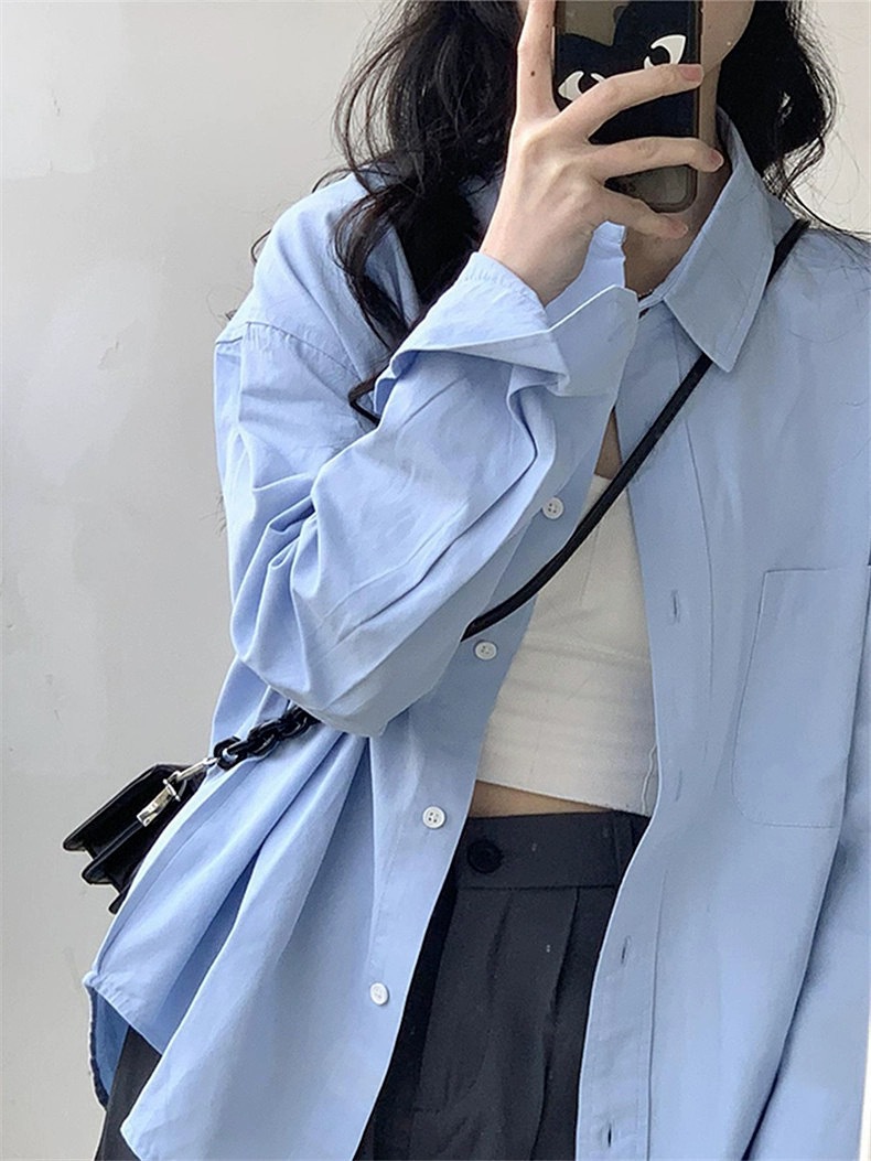 Choice 轻薄衬衫女春夏季宽松百搭上衣薄款休闲长袖衬衣御姐风设计感衬衫