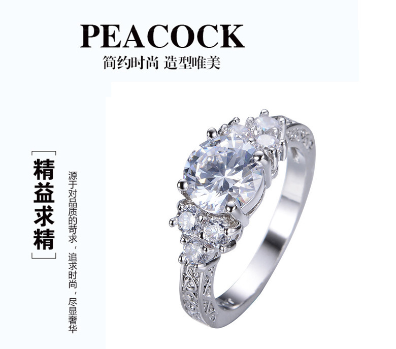 跨境电商热卖货源铜镶钻八心八箭锆石2克拉戒指订婚女款饰品批发