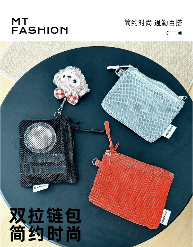 简约网格收纳包双层拉链化妆包便携旅行洗漱包化妆手拿包跨境批发