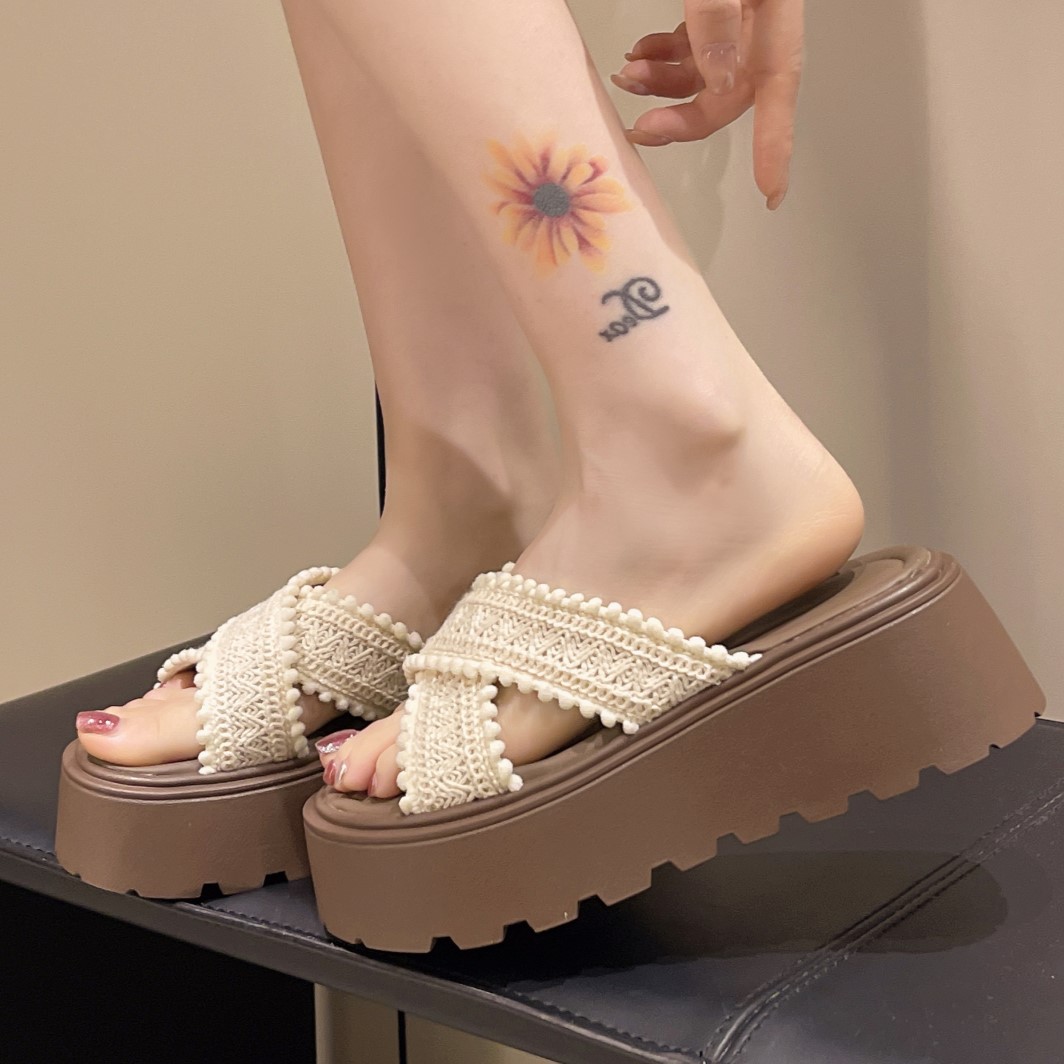松糕厚底交叉带凉拖鞋2025夏季外穿增高鞋设计感波西米亚沙滩凉鞋