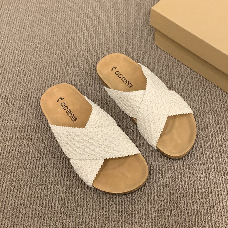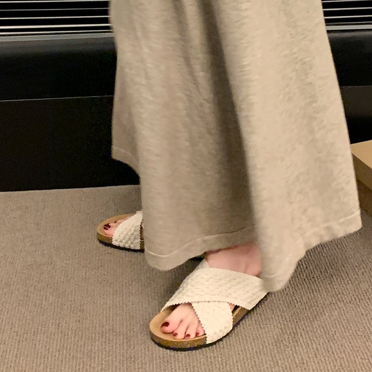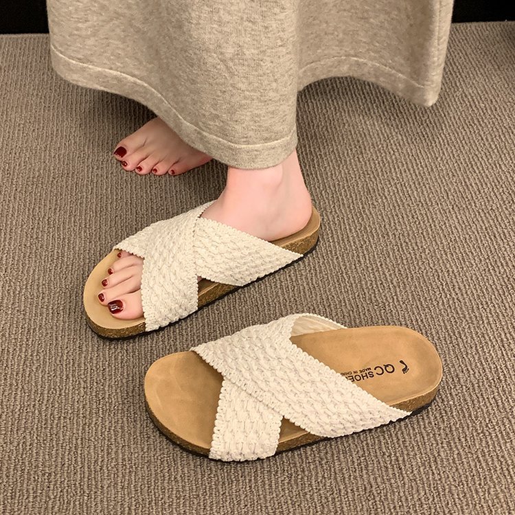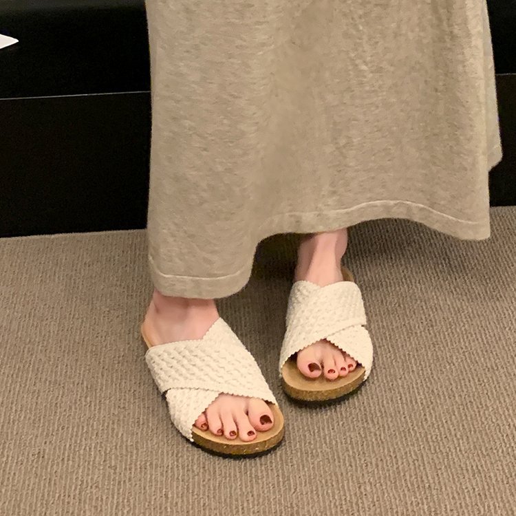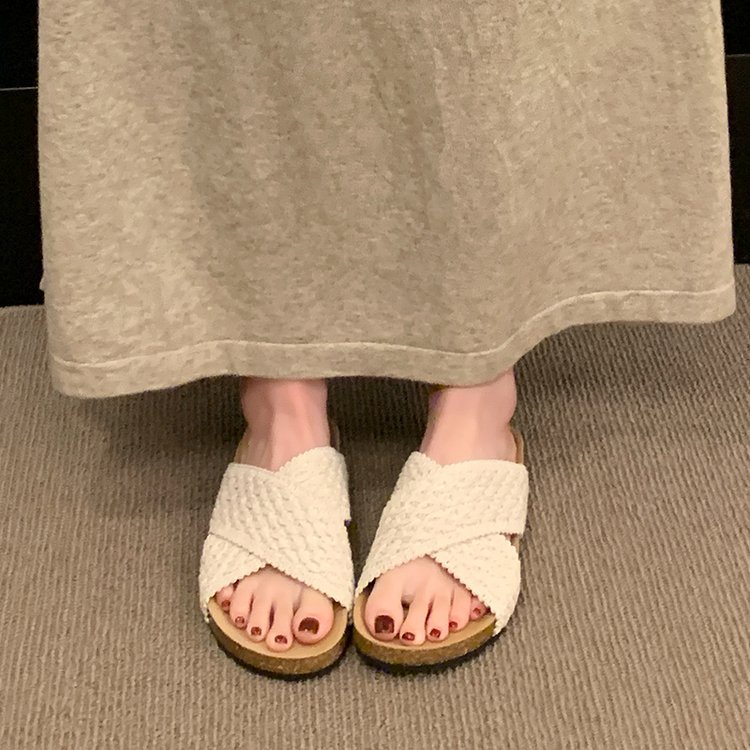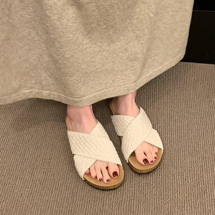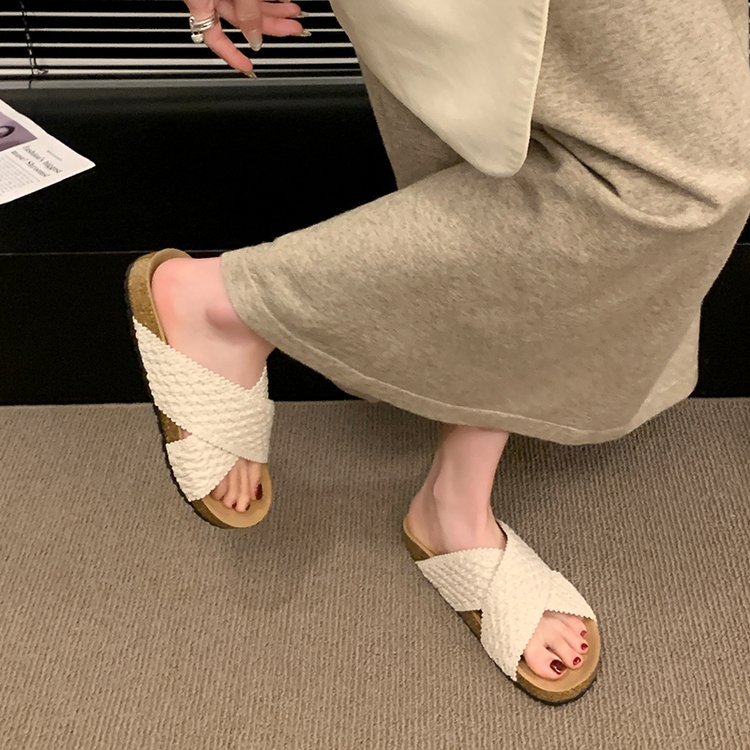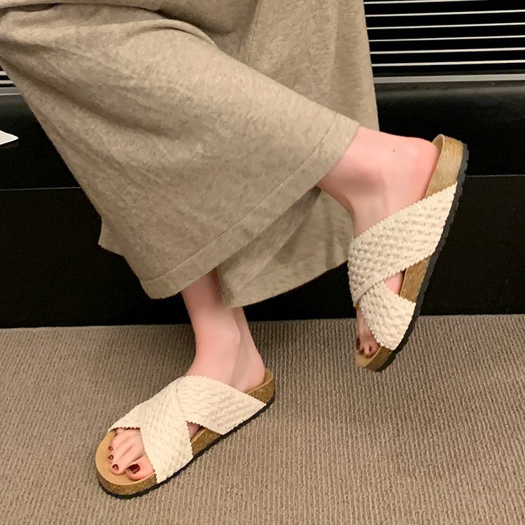 交叉带针织拖鞋女2025夏季外穿新款复古懒人鞋沙滩度假风凉拖鞋子