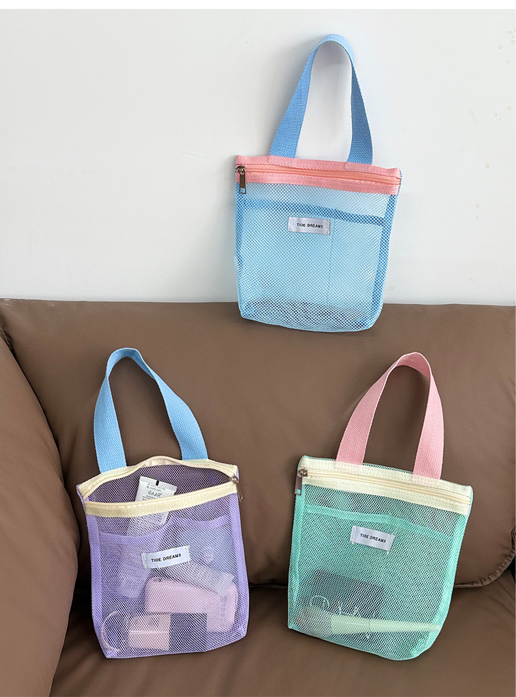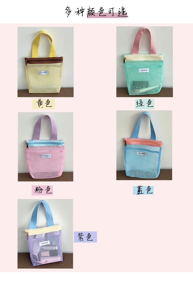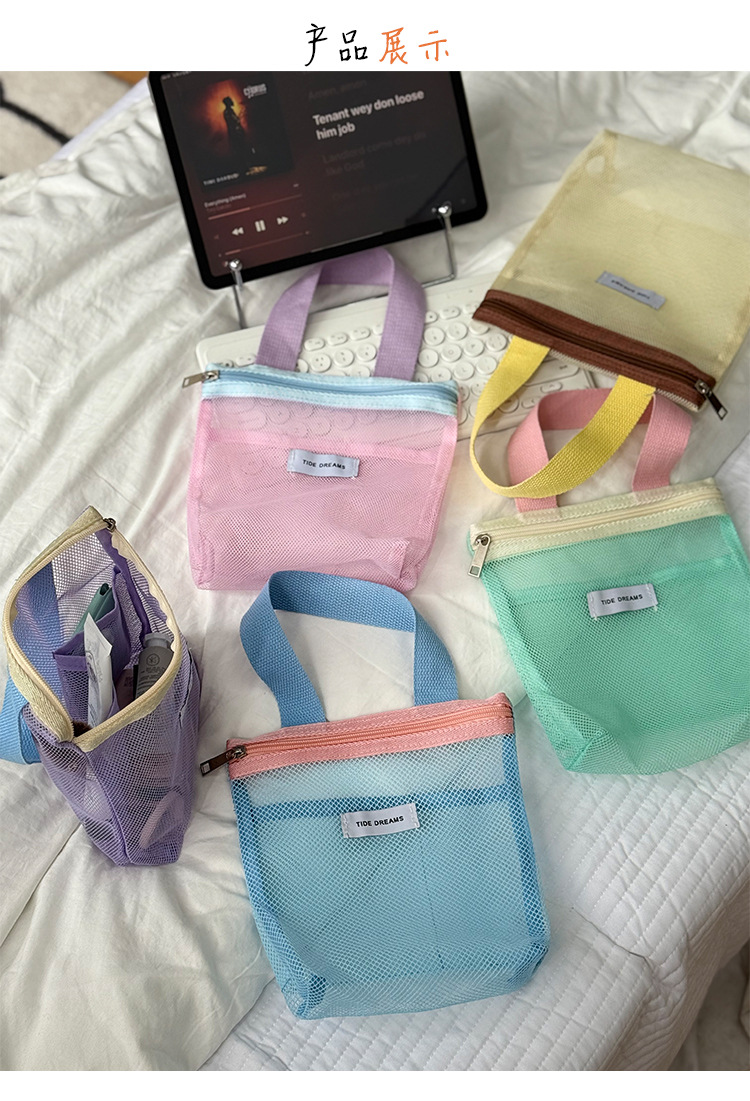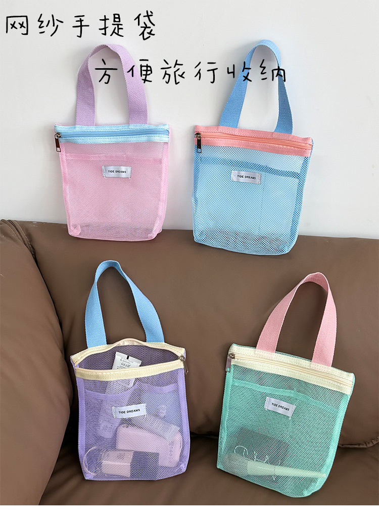 新款多巴胺网纱手提包大容量撞色收纳包宿舍旅行洗漱包跨境批发