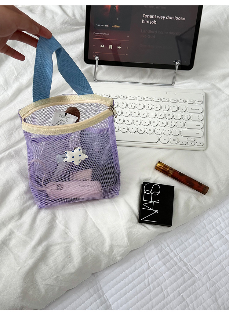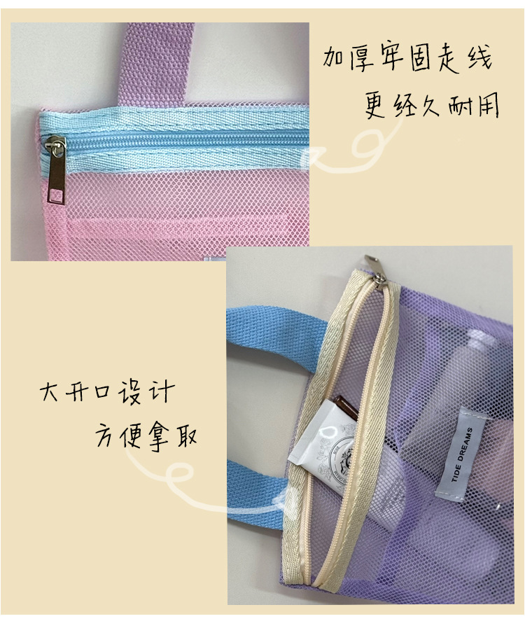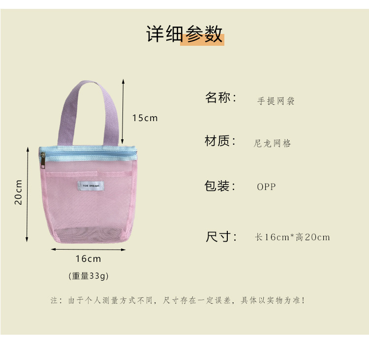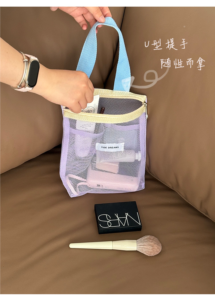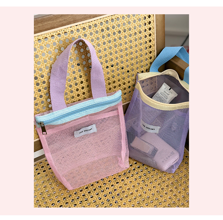 新款多巴胺网纱手提包大容量撞色收纳包宿舍旅行洗漱包跨境批发