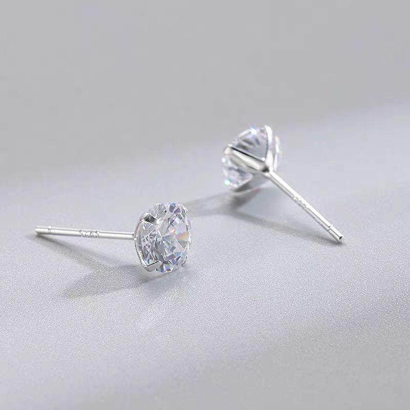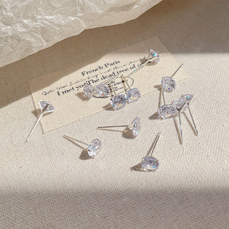 超闪爆闪锆石耳钉女小众设计925银日常百搭养耳洞时尚耳骨钉批发