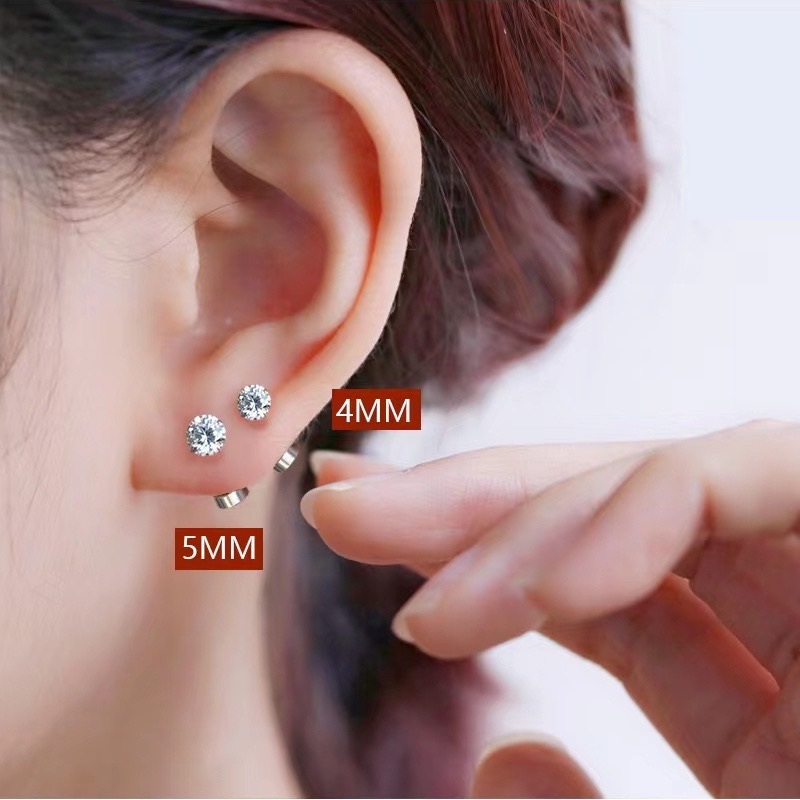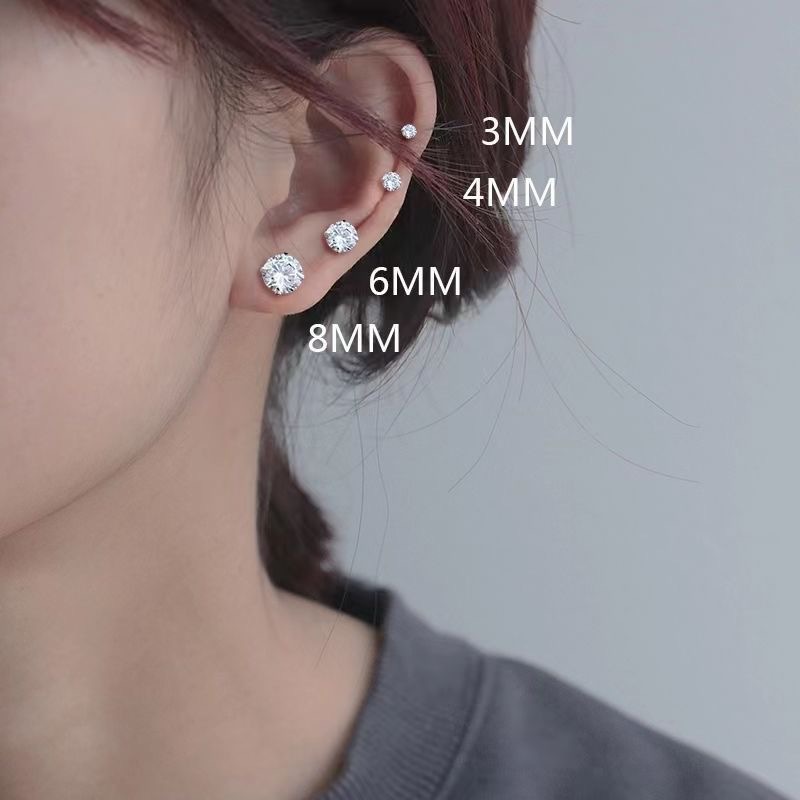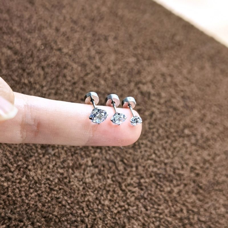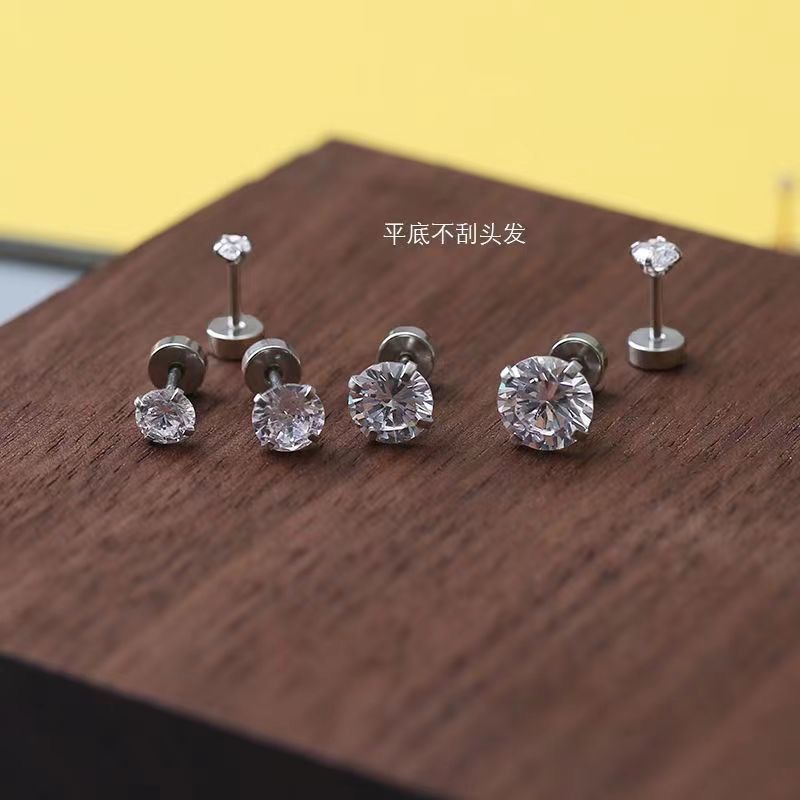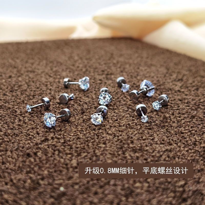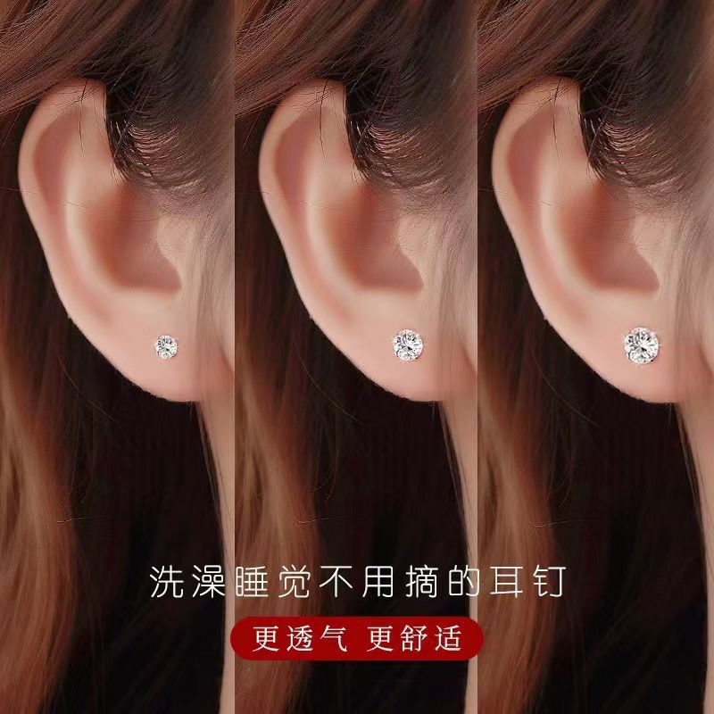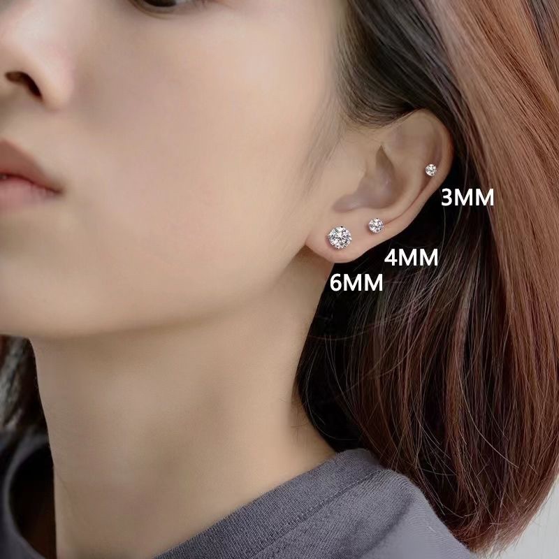 闪钻爆闪锆石耳钉925银内螺旋螺丝拧扣日常百搭女小众设计耳骨钉
