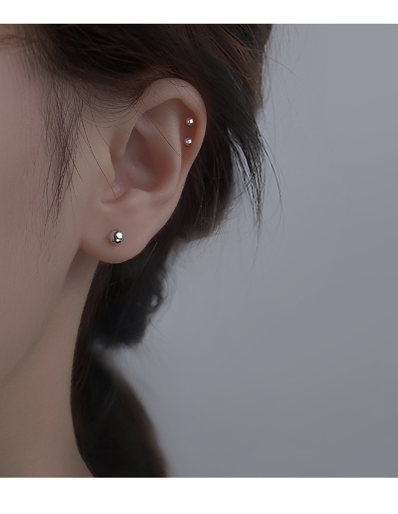 养耳洞925银耳钉女小众设计内螺旋小耳钉日常百搭双头圆珠耳骨钉