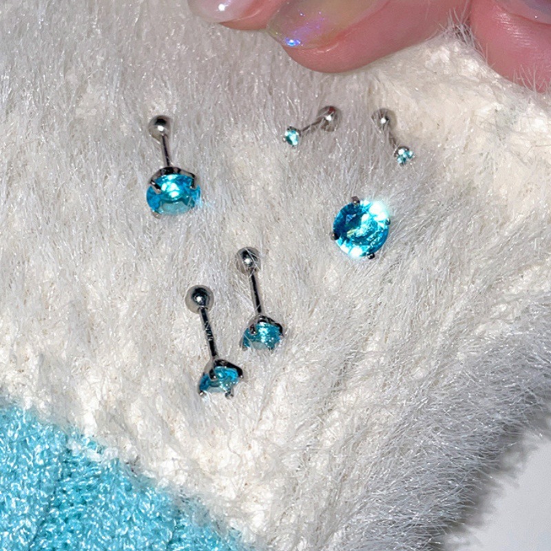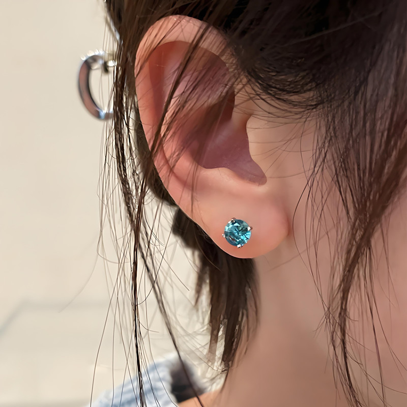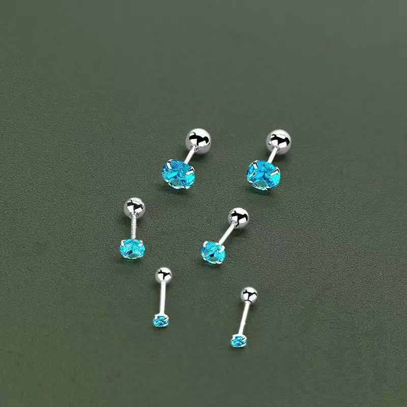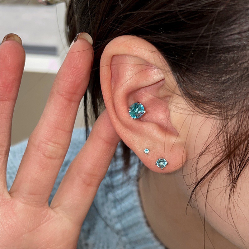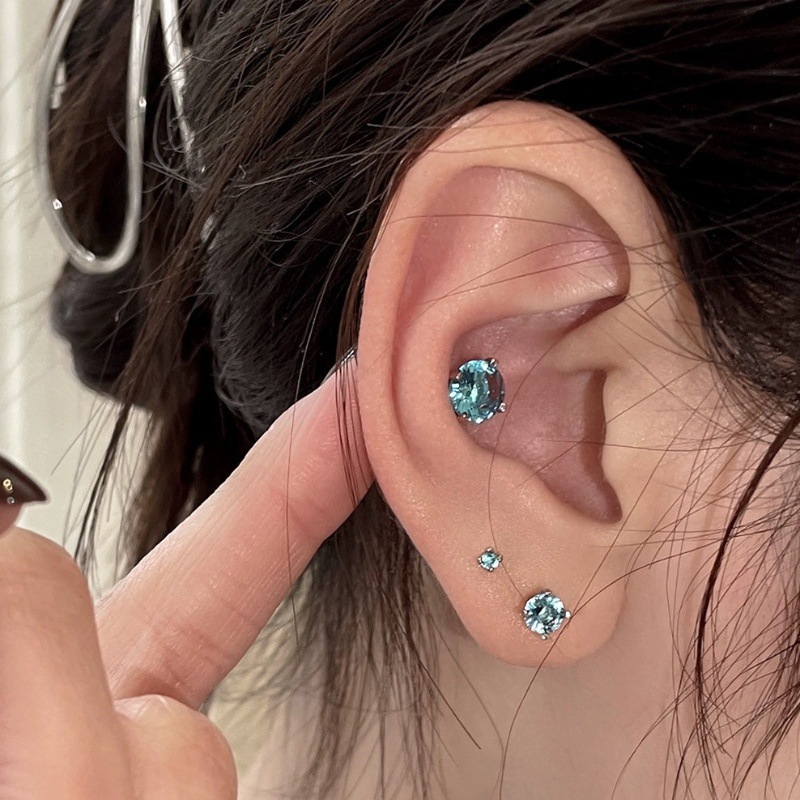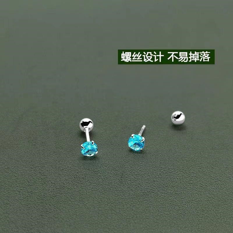 闪钻爆闪蓝色锆石耳钉925银ins风女士小众设计养耳洞内螺旋高级感