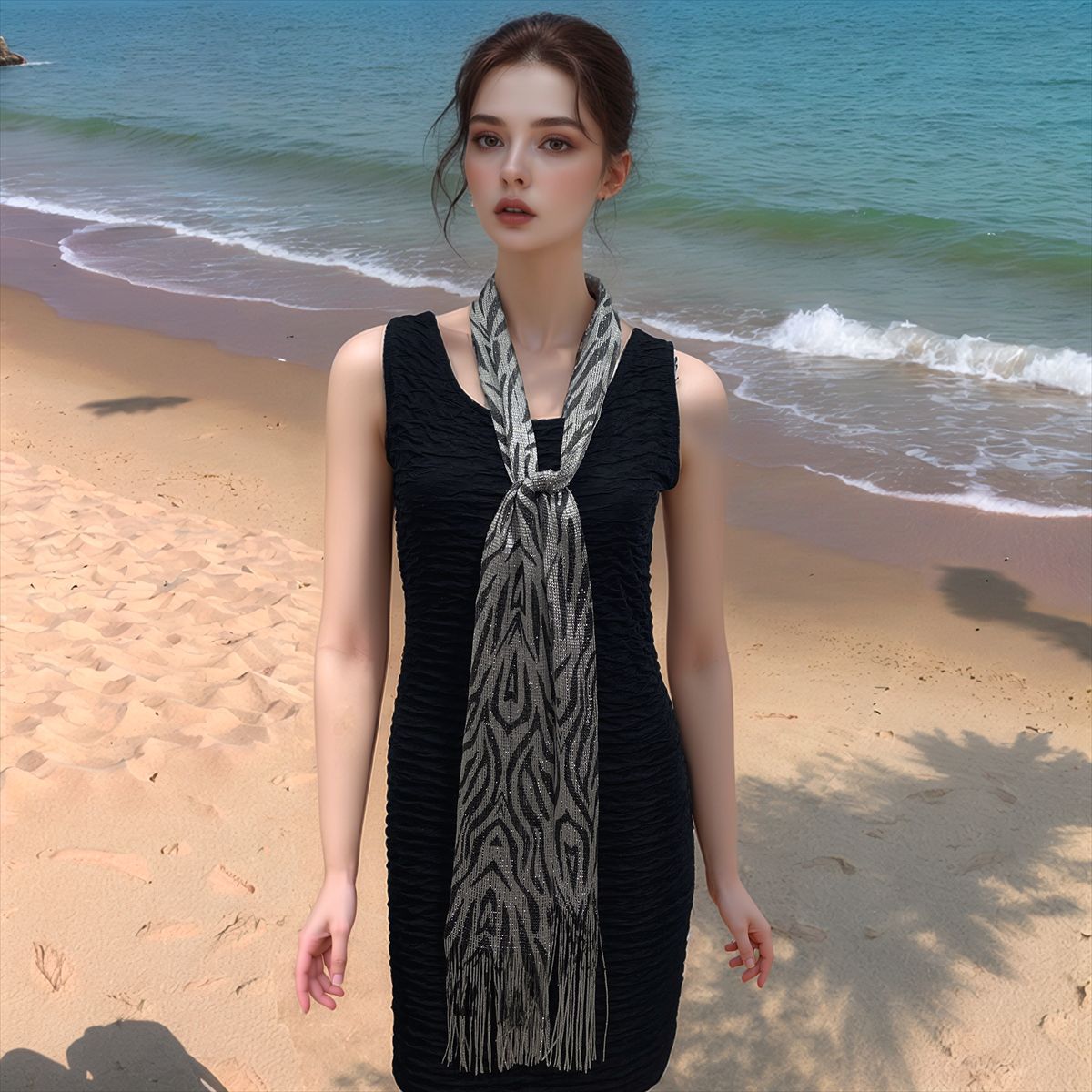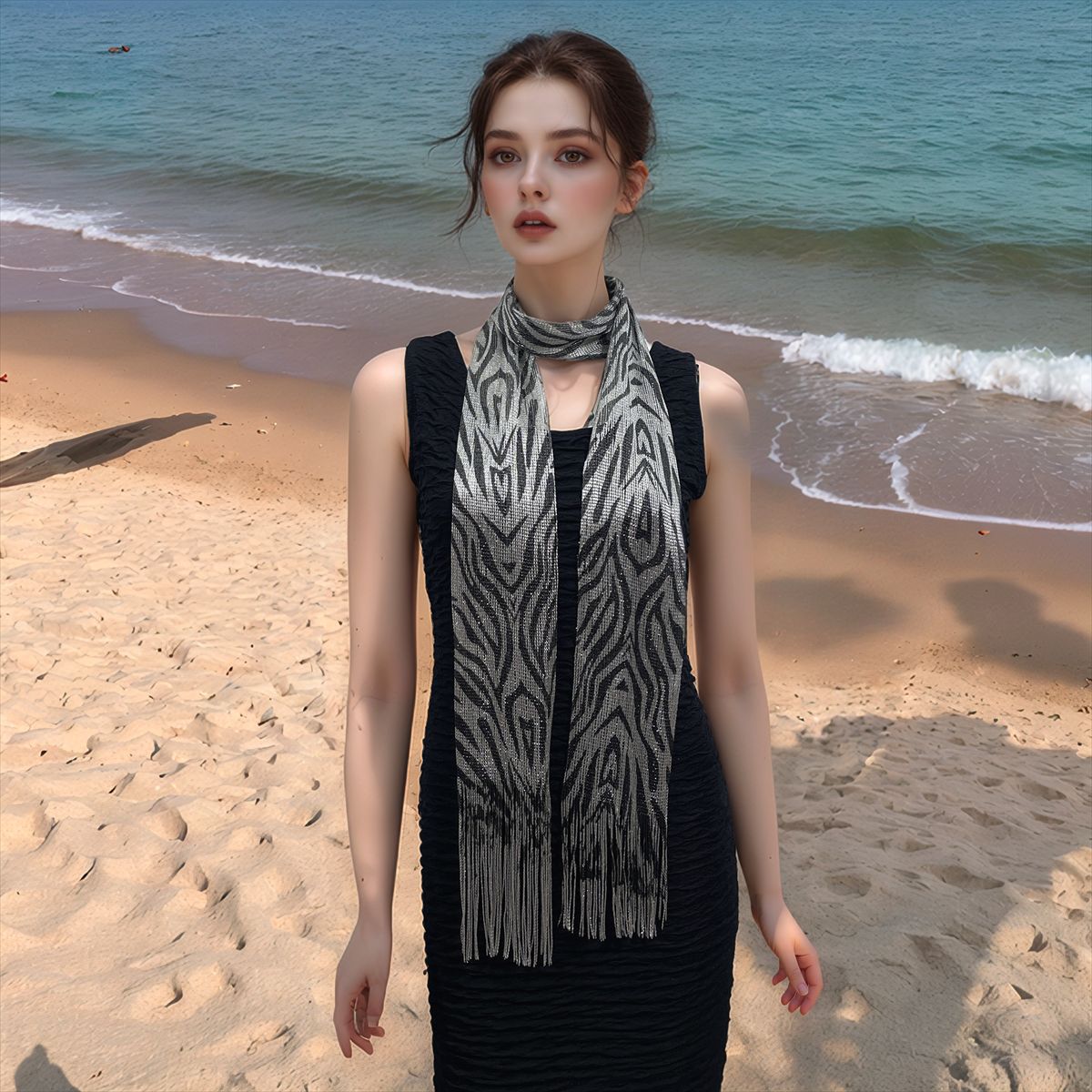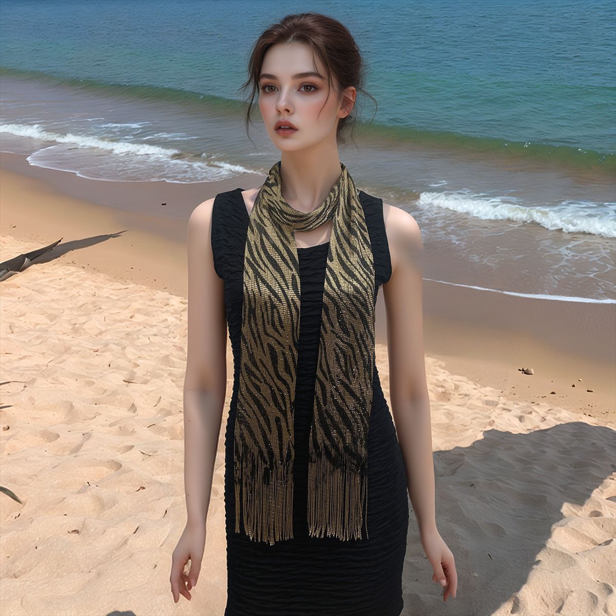 夏季时尚亚马逊新款围巾亮丝豹纹印花平板巾时尚舞会女士斑马纹巾