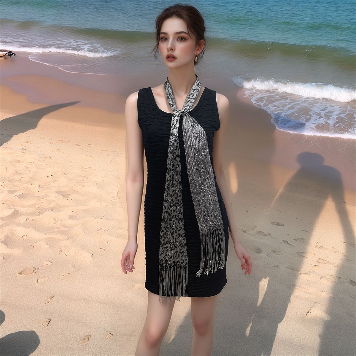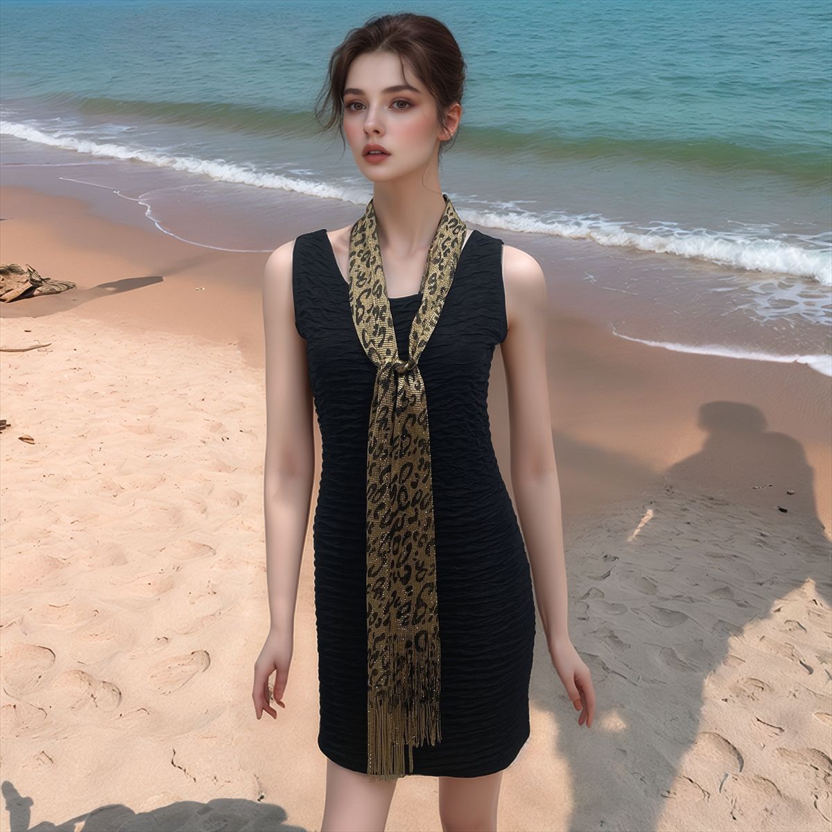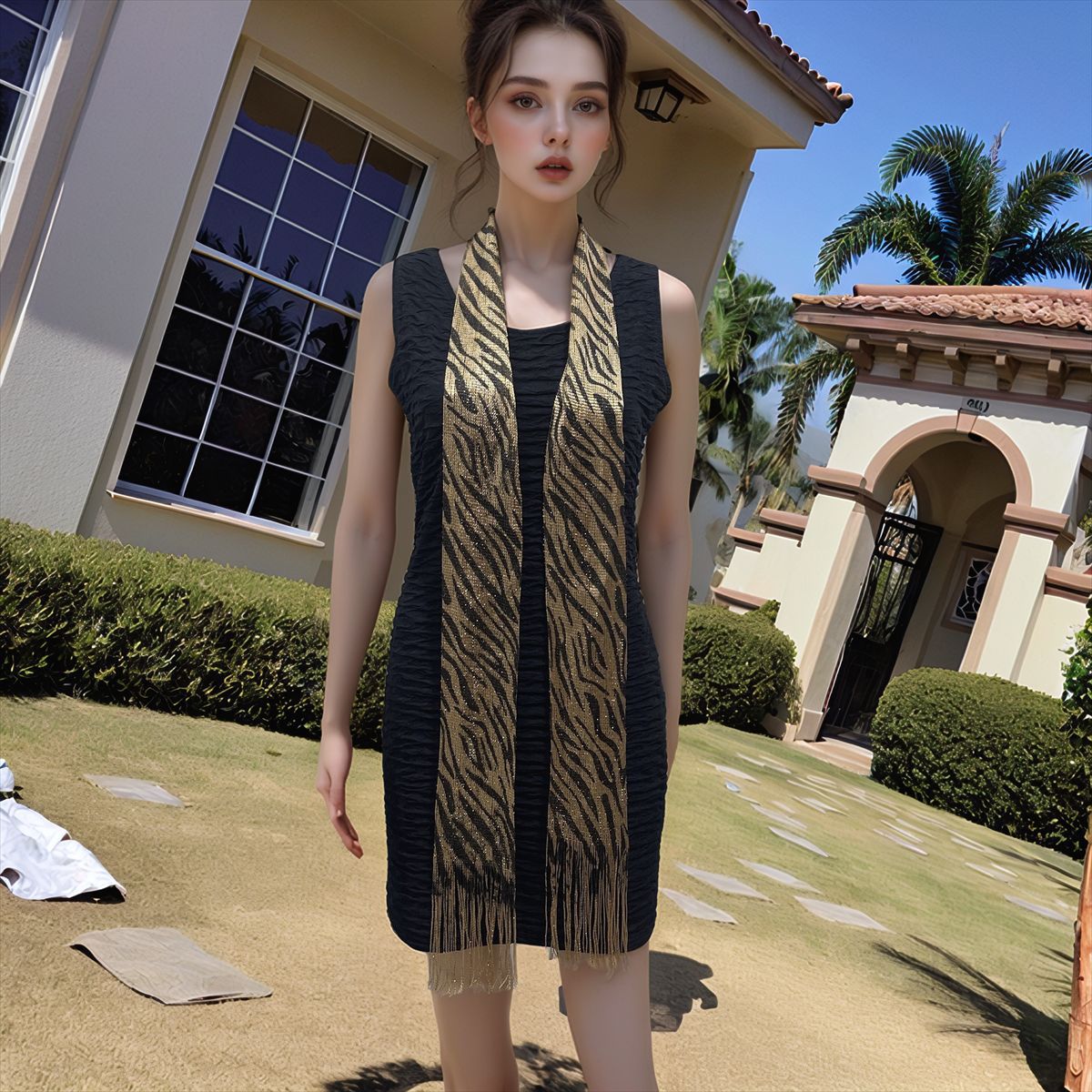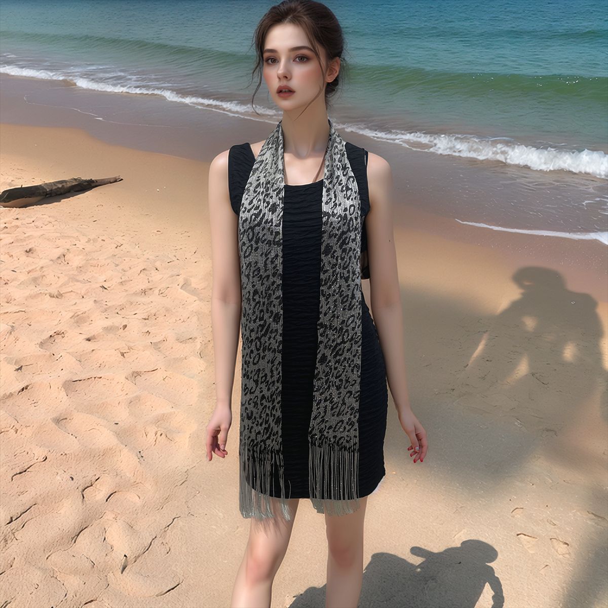 夏季时尚亚马逊新款围巾亮丝豹纹印花平板巾时尚舞会女士斑马纹巾
