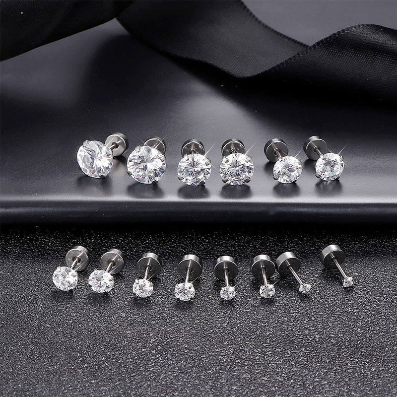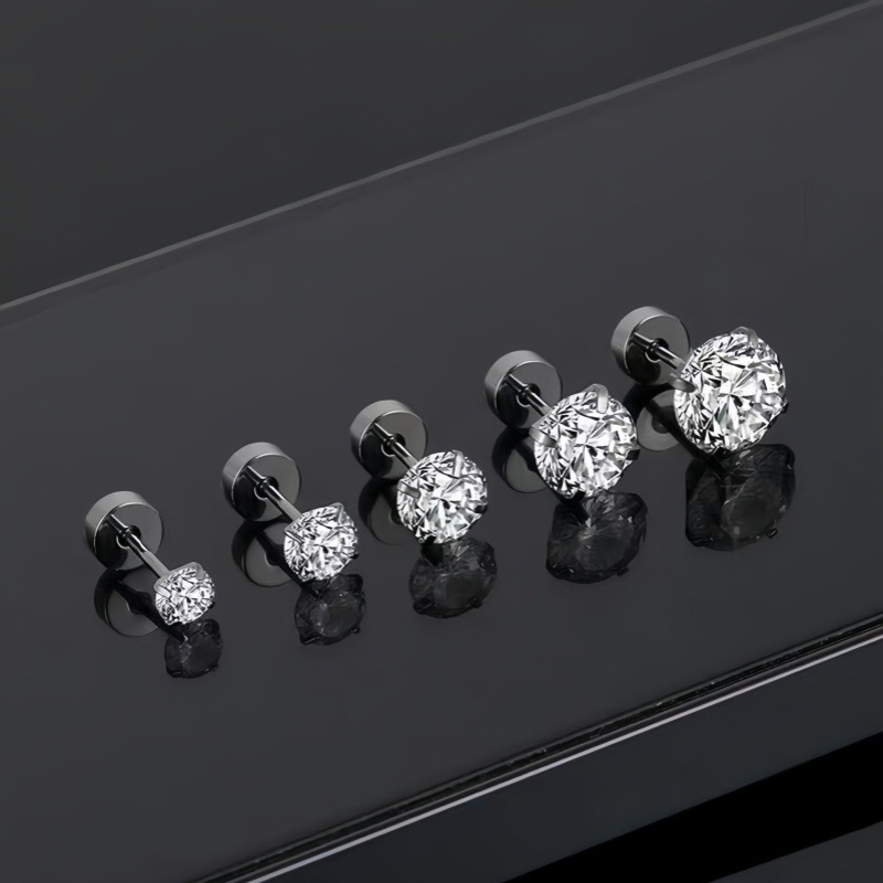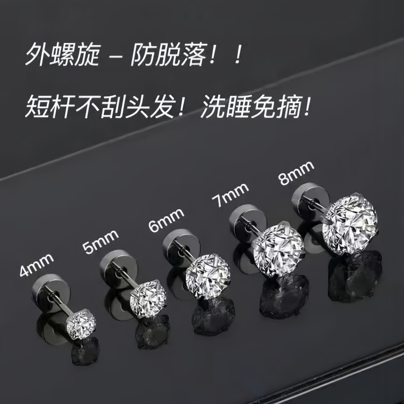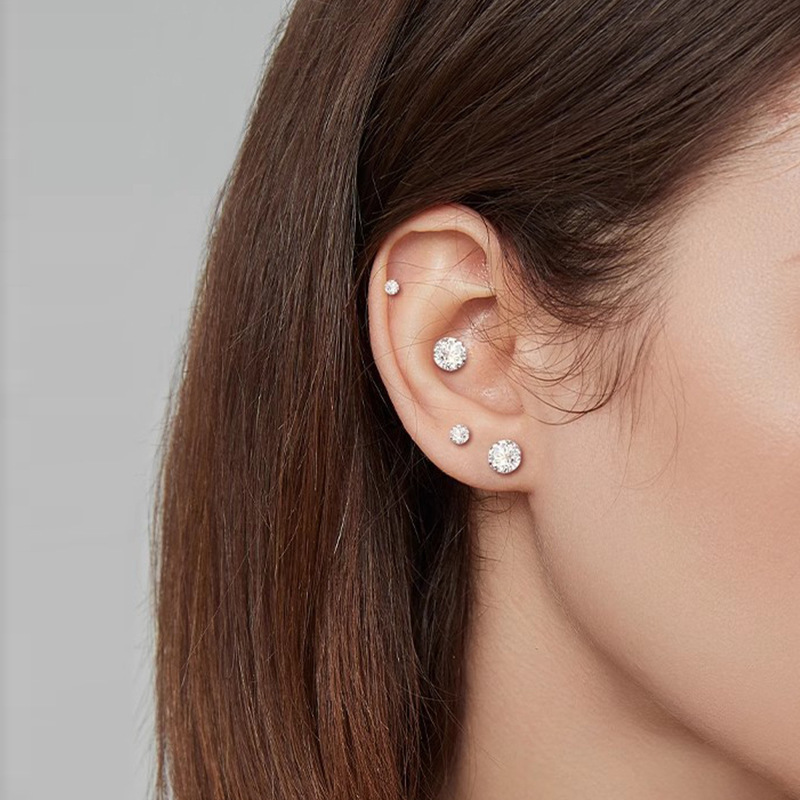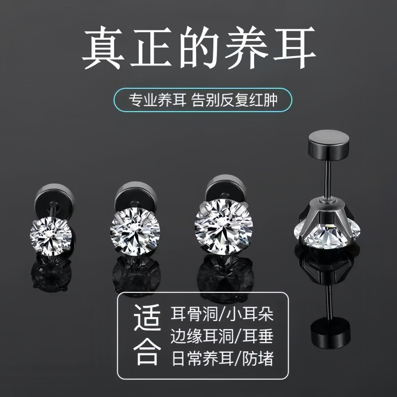 2025新款锆石耳钉养耳洞女日常百搭内螺旋耳蜗钉不锈钢耳骨钉批发
