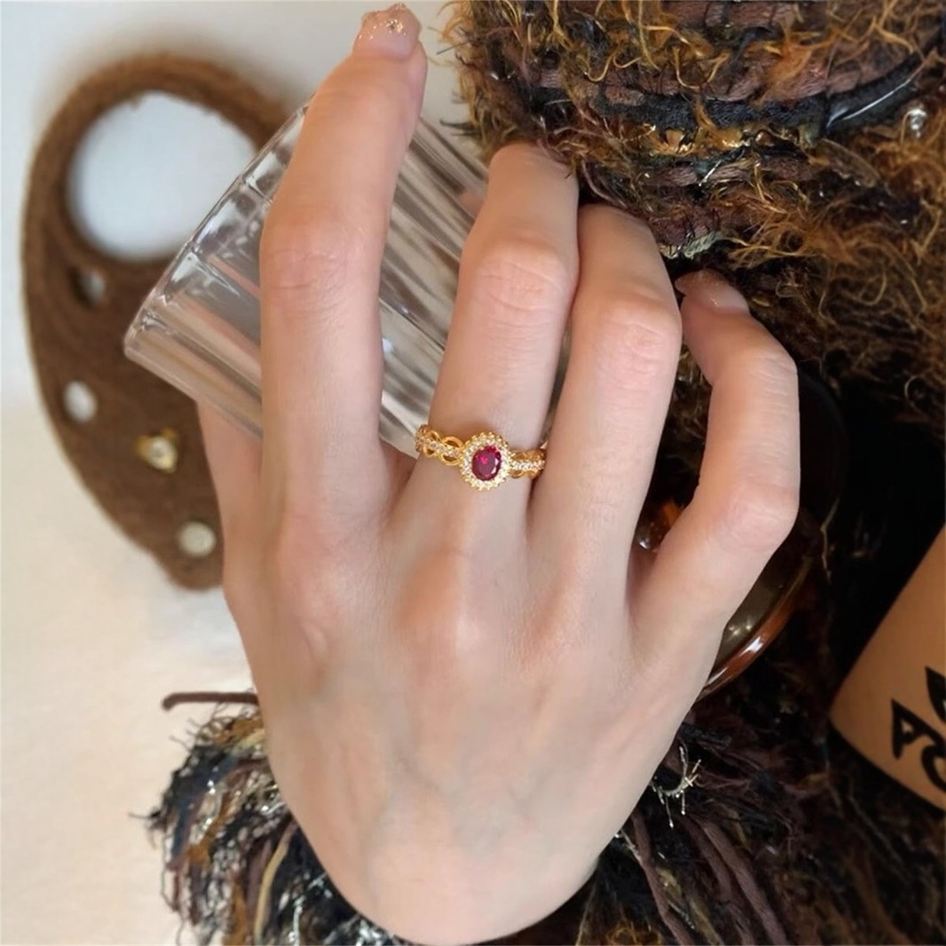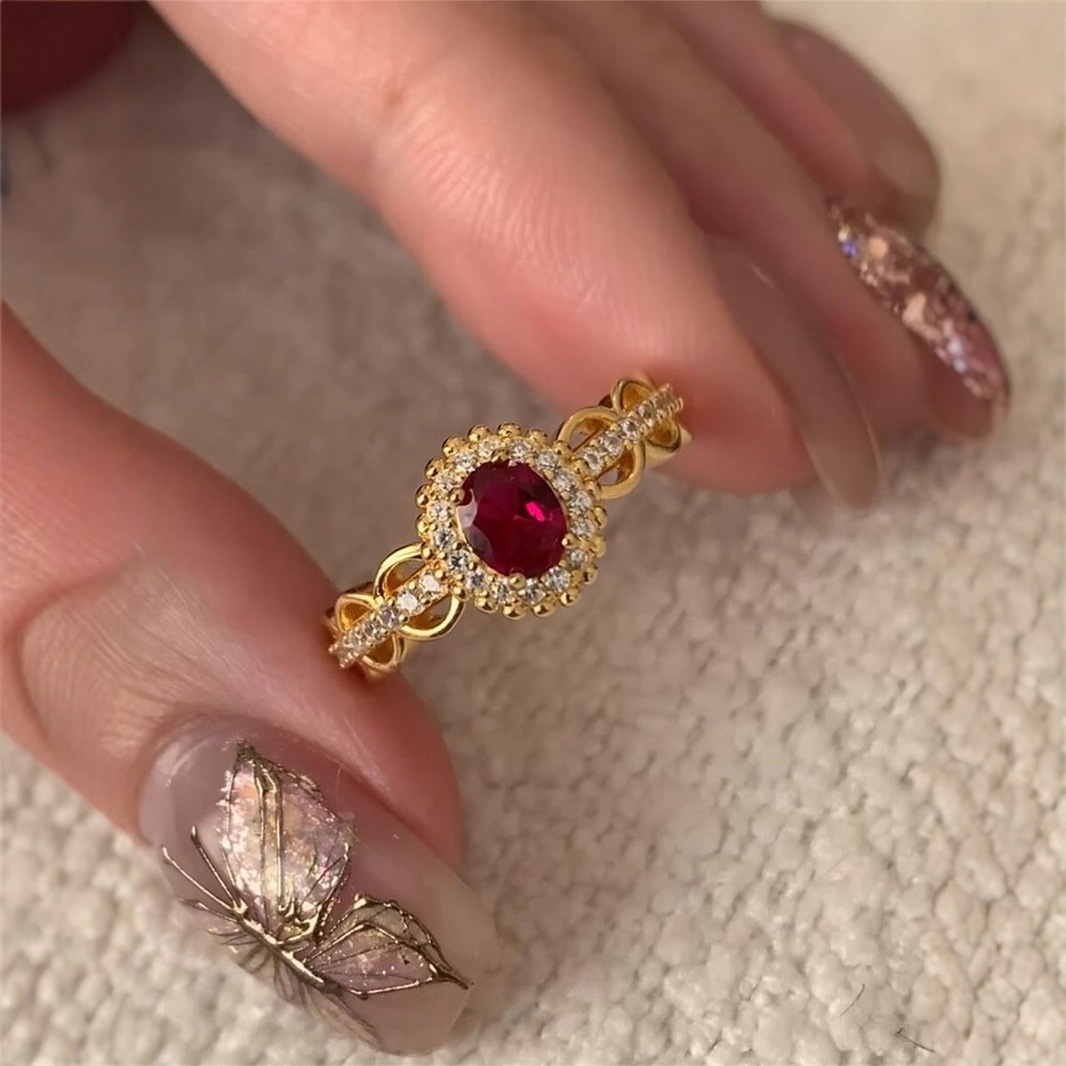 仿越南沙金中古风镶钻戒指女士复古蕾丝小巧精致简约指环送女友