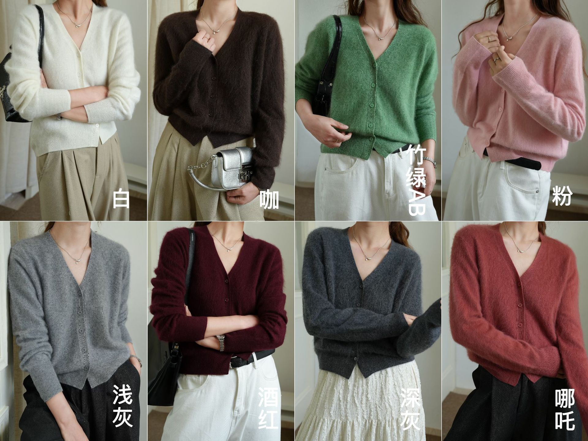 Choice 2026早春羊毛羊绒拉毛V领百搭毛衣针织开衫外套女打底老钱风女装