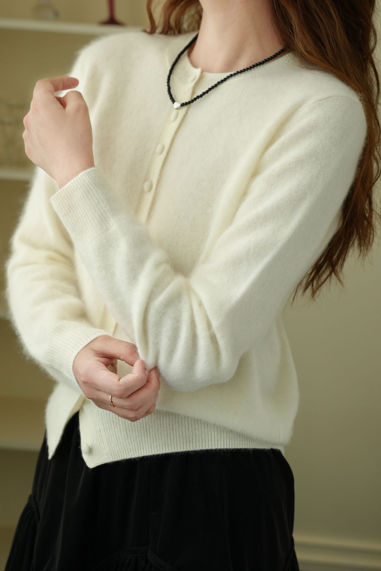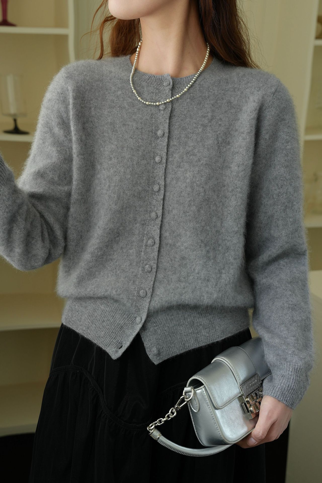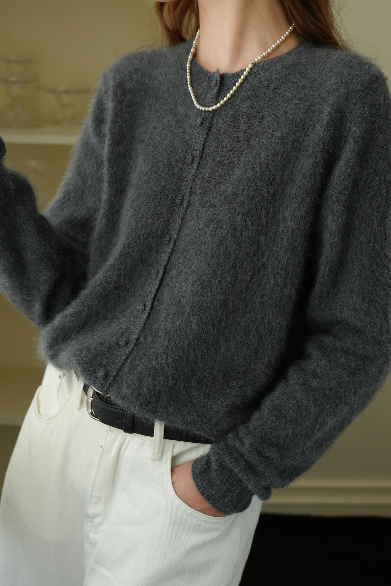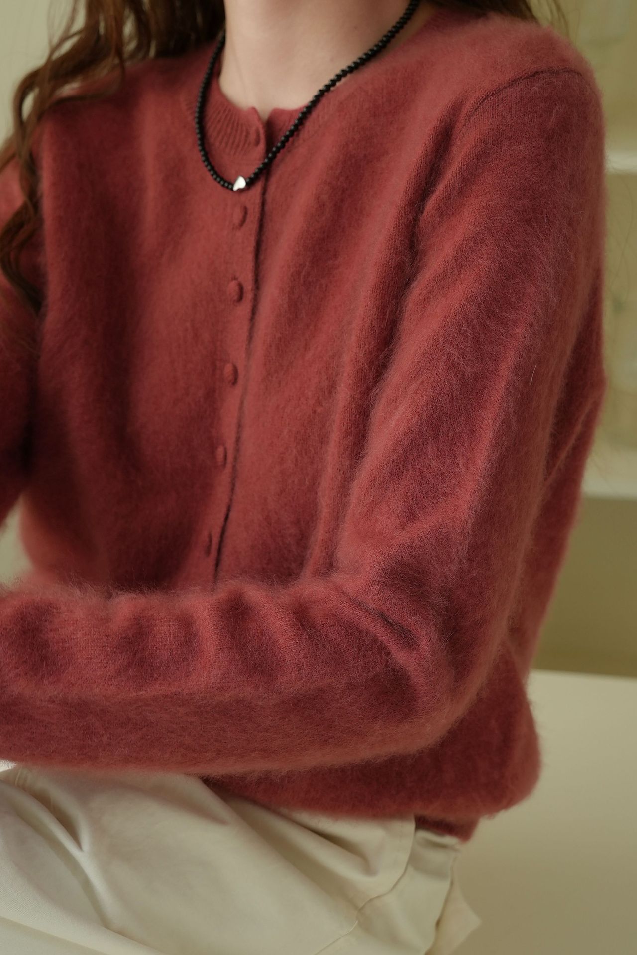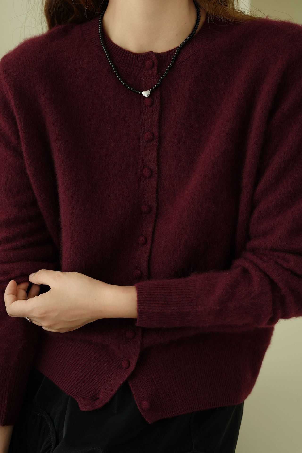 Choice 2025秋濮院羊毛羊绒拉毛圆领百搭毛衣开衫外套女打底老钱风女装