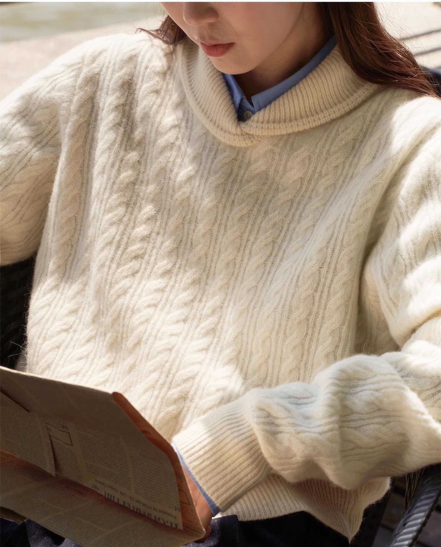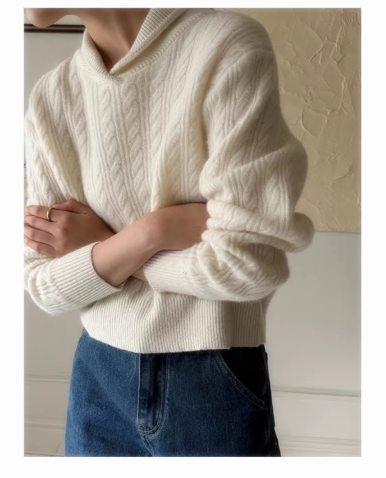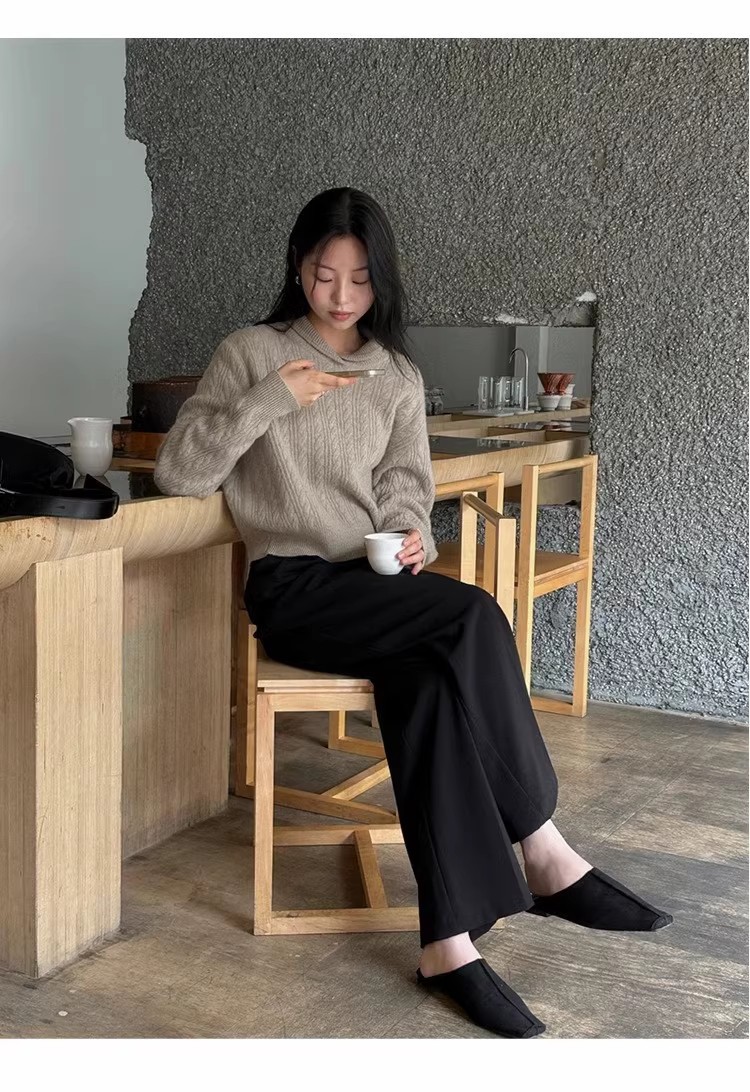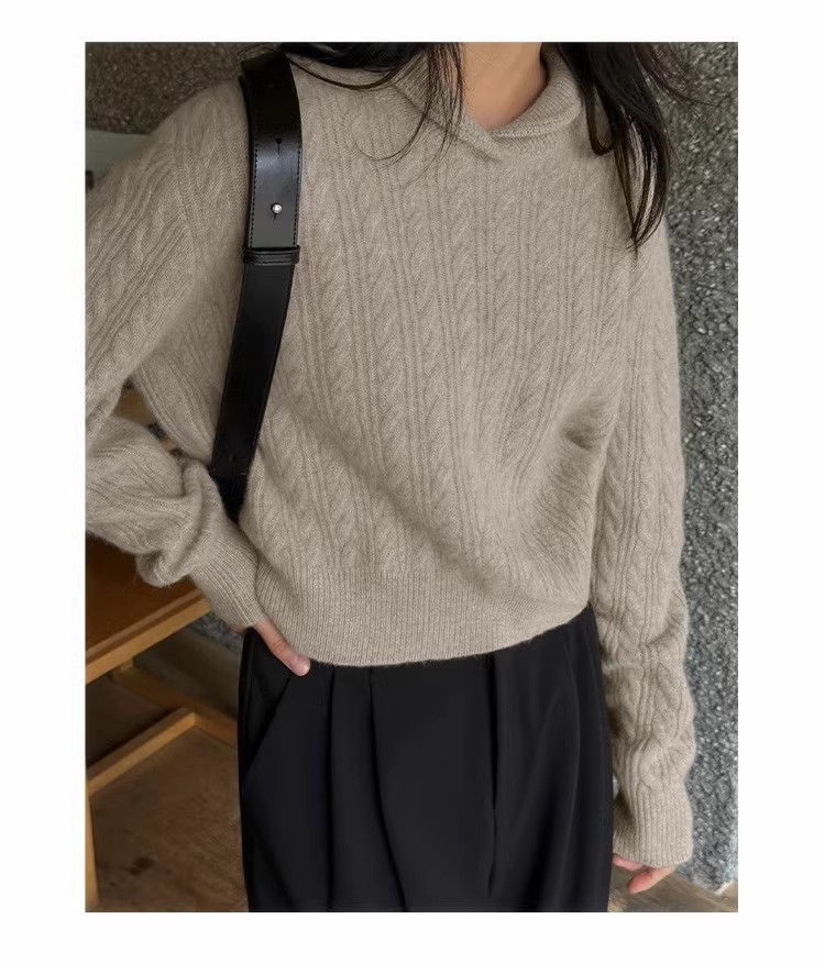 Choice 100%纯羊毛衫女休闲针织衫毛衣小翻领秋冬宽松慵懒风羊绒打底衫