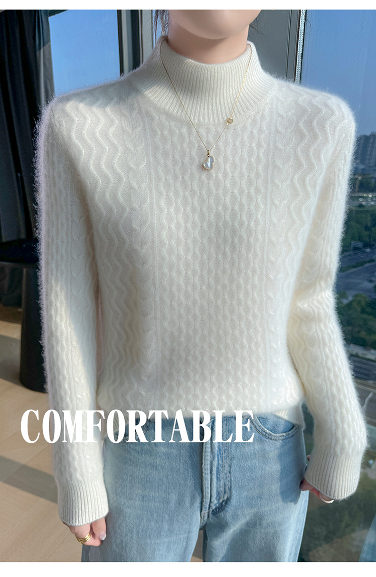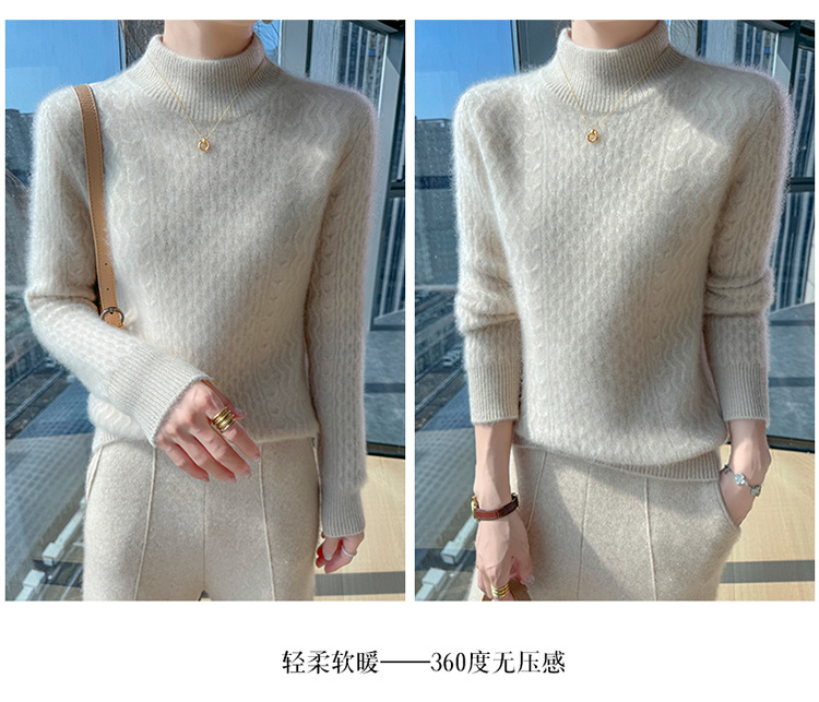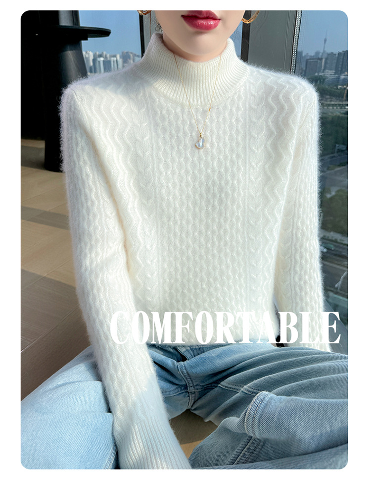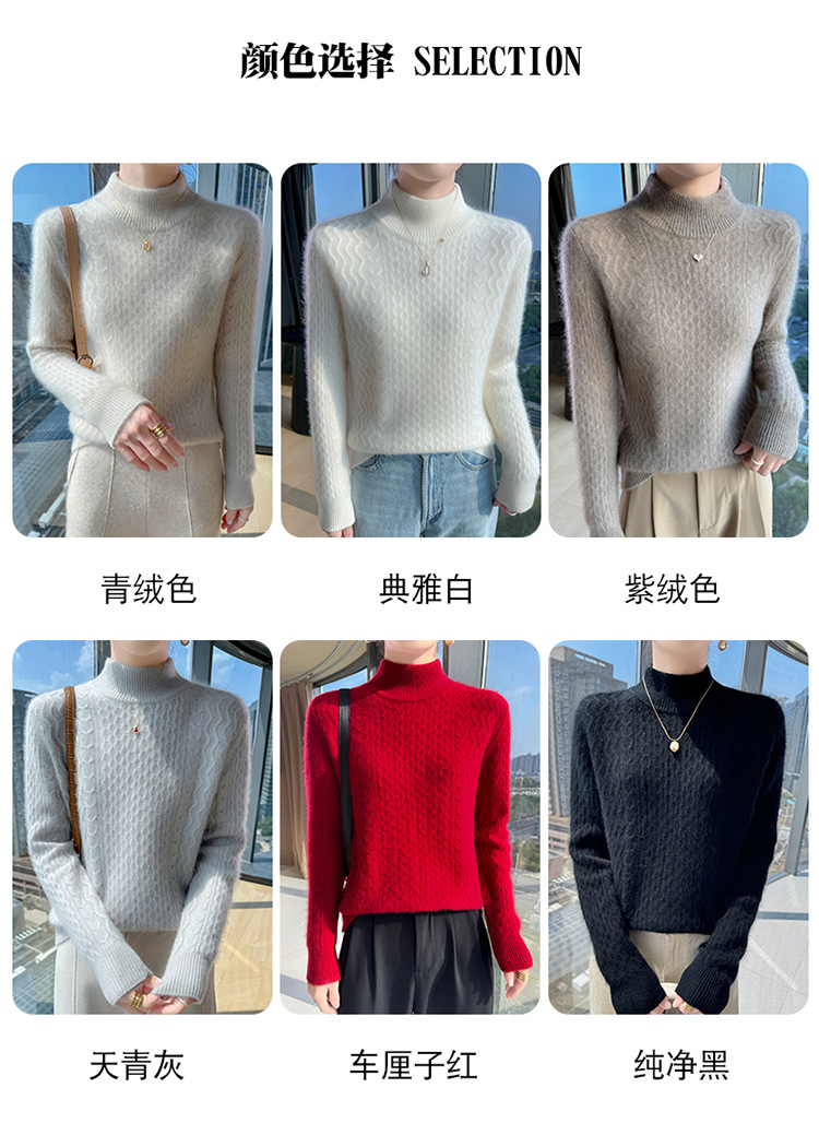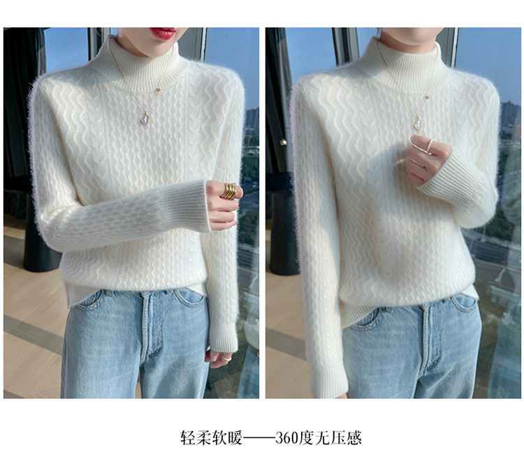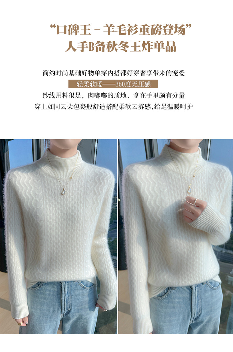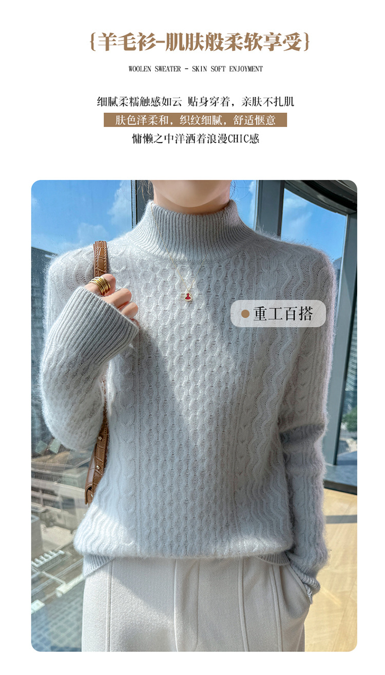Choice 秋冬新款100羊毛双股加厚双层领羊绒针织衫女宽松扭花打底衫毛衣