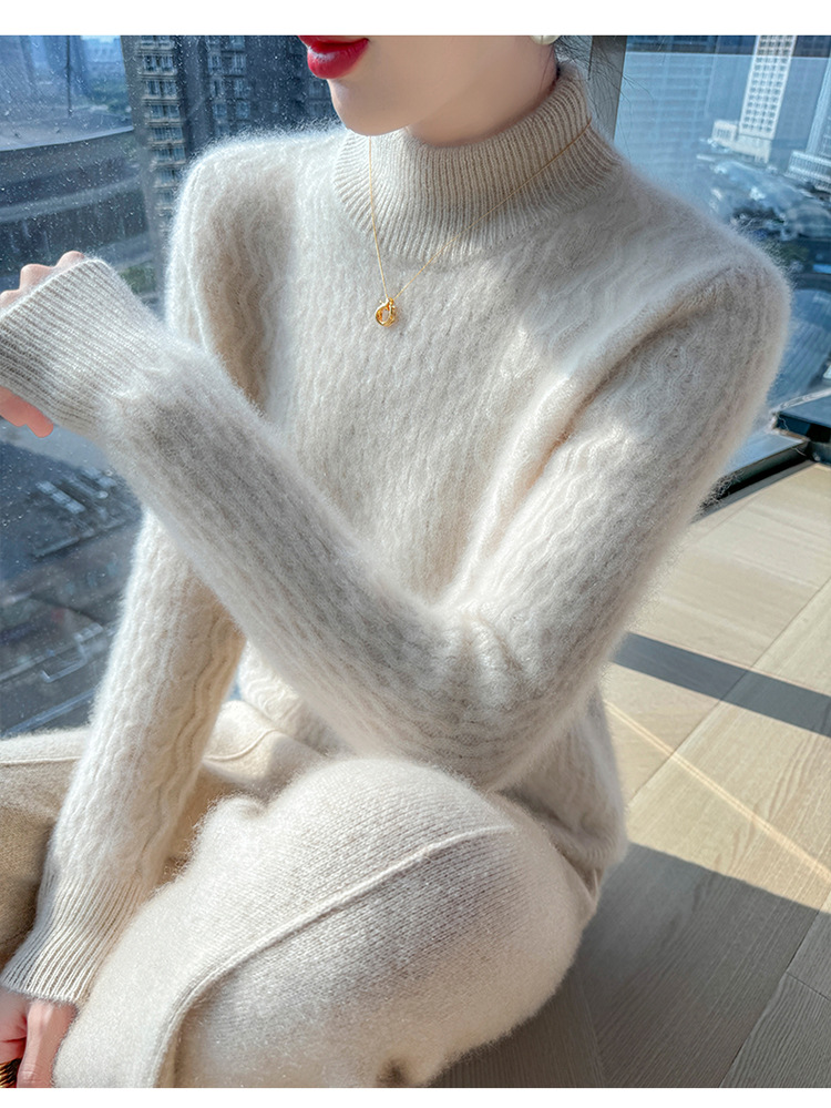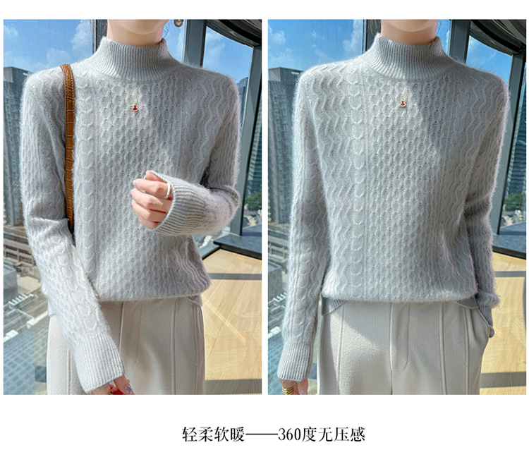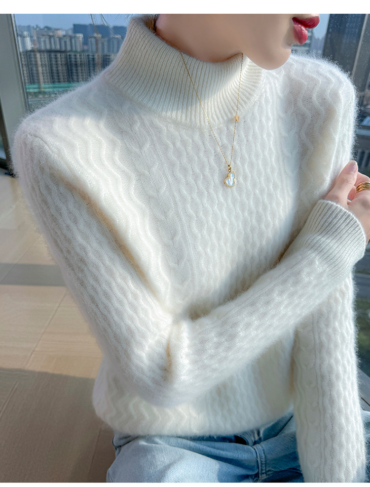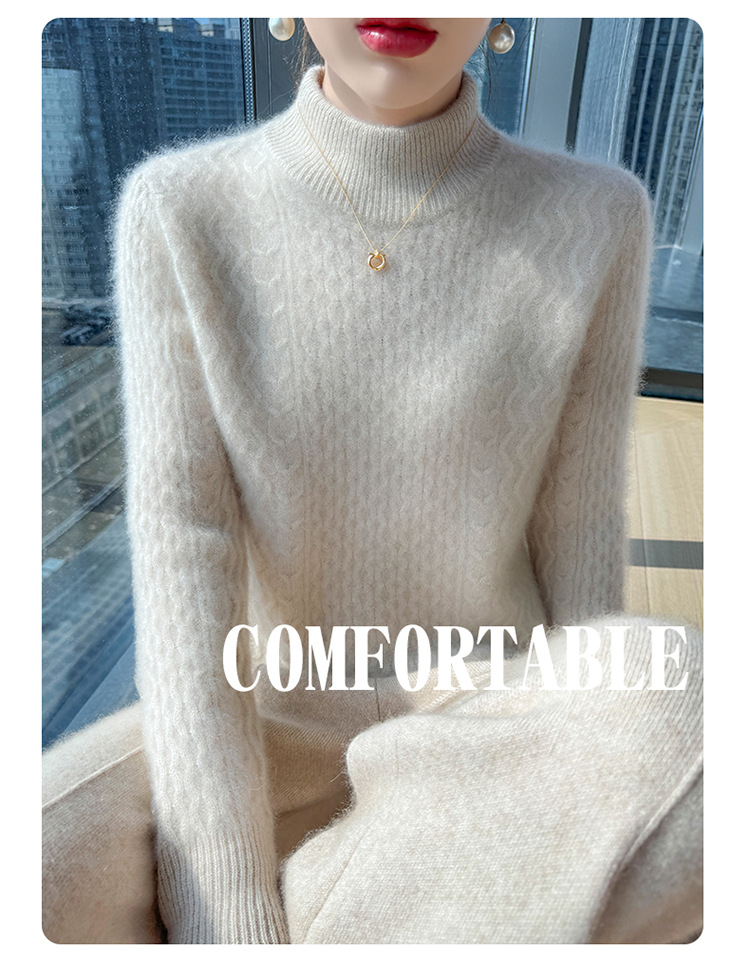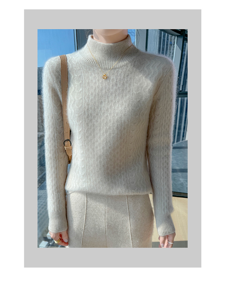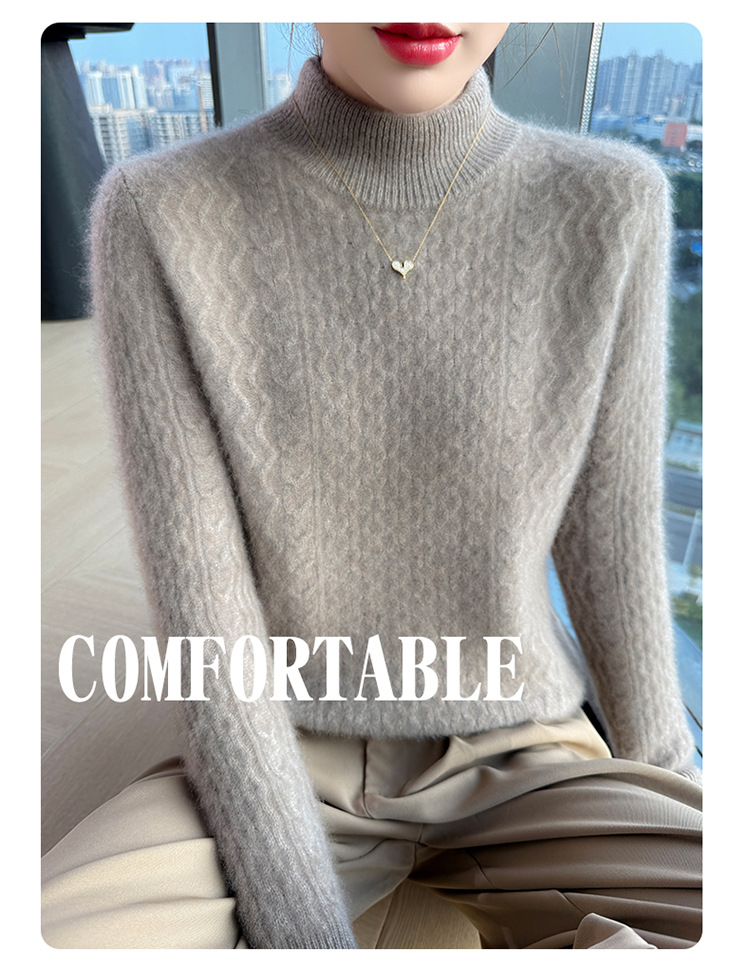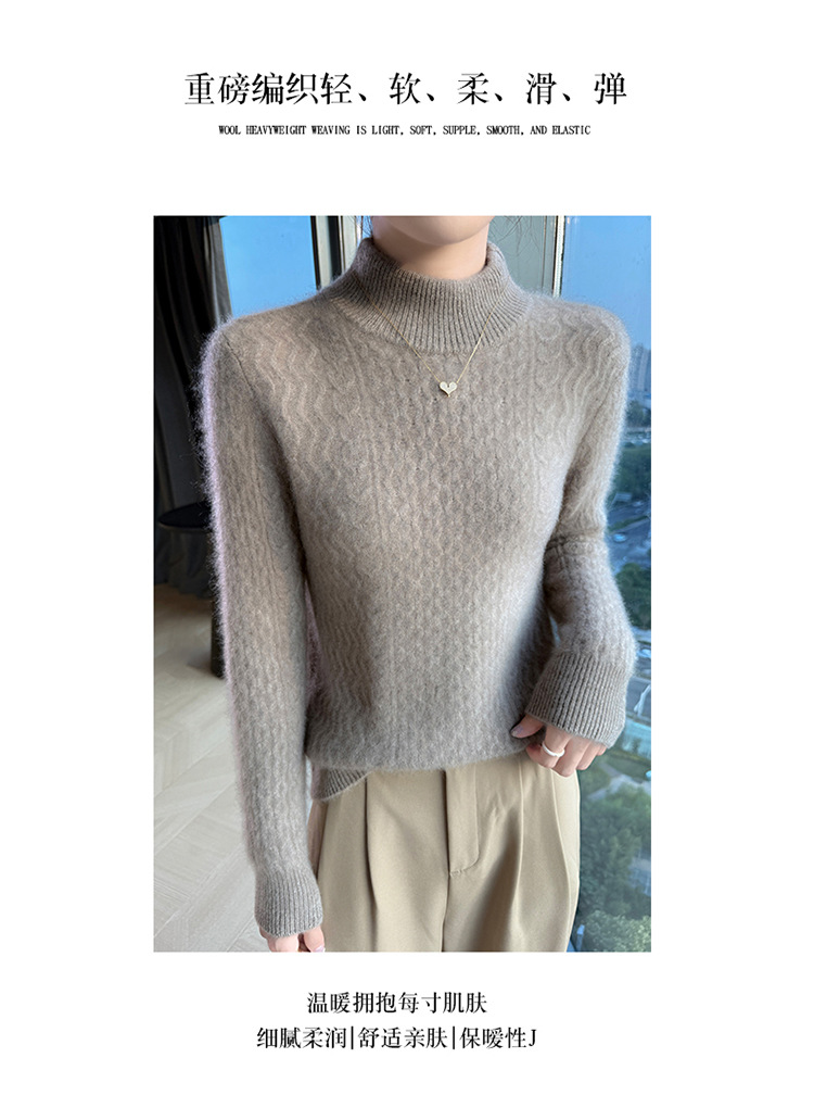 Choice 秋冬新款100羊毛双股加厚双层领羊绒针织衫女宽松扭花打底衫毛衣