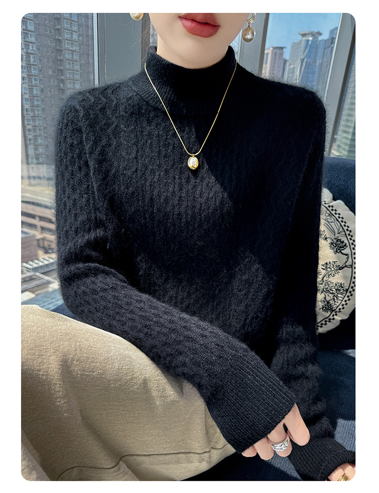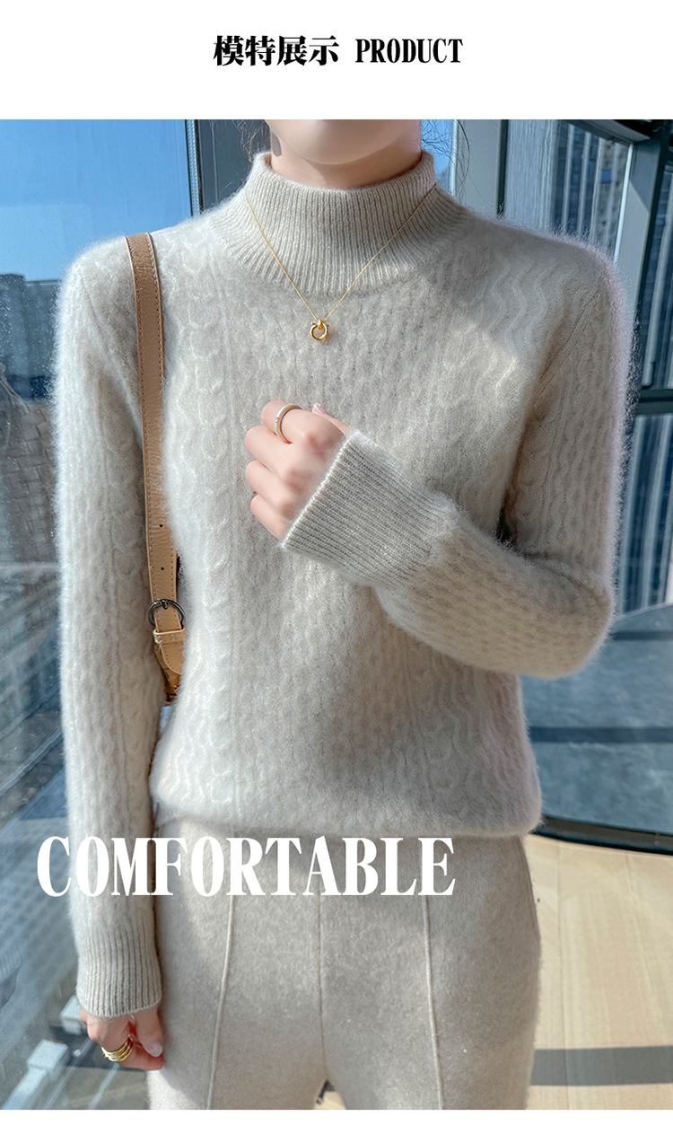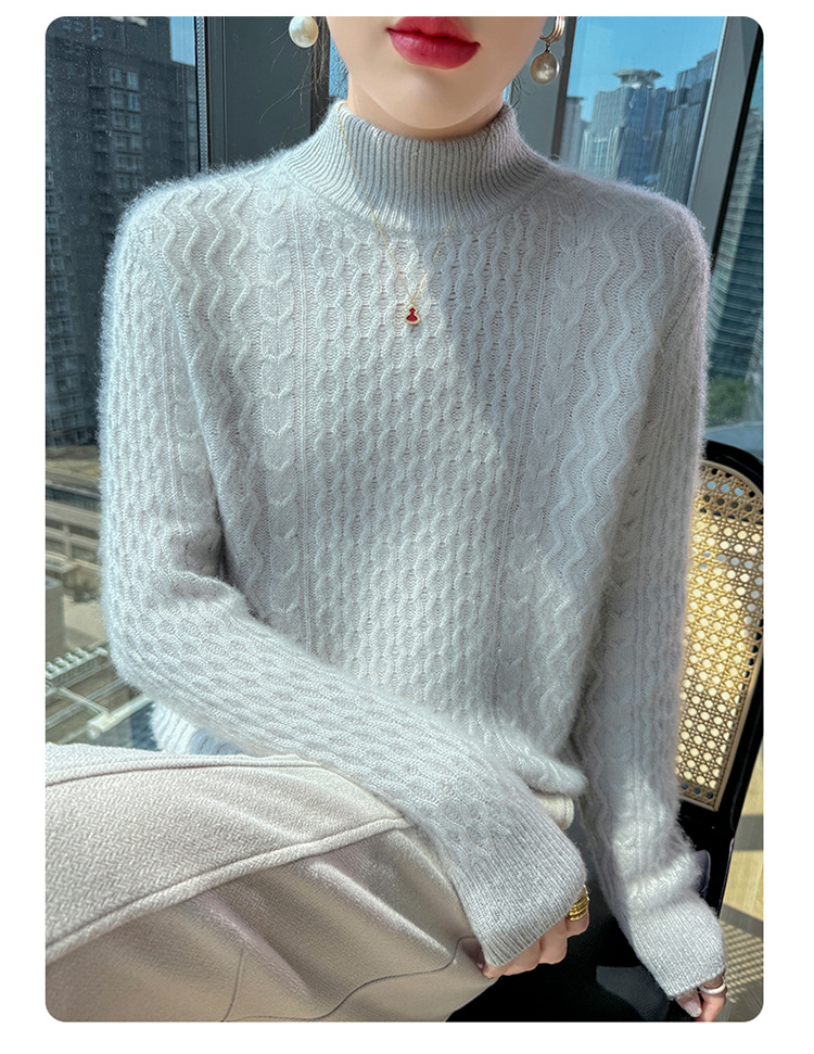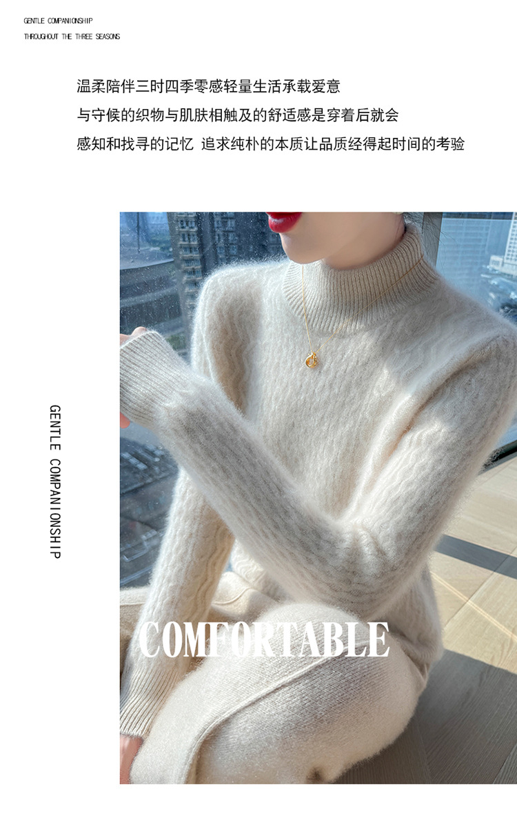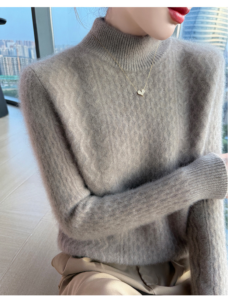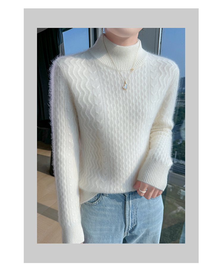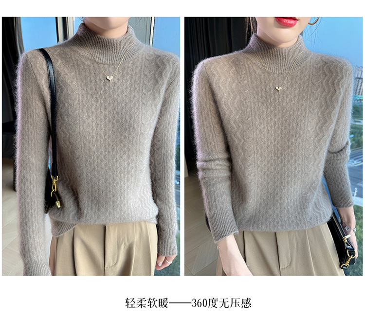 Choice 秋冬新款100羊毛双股加厚双层领羊绒针织衫女宽松扭花打底衫毛衣