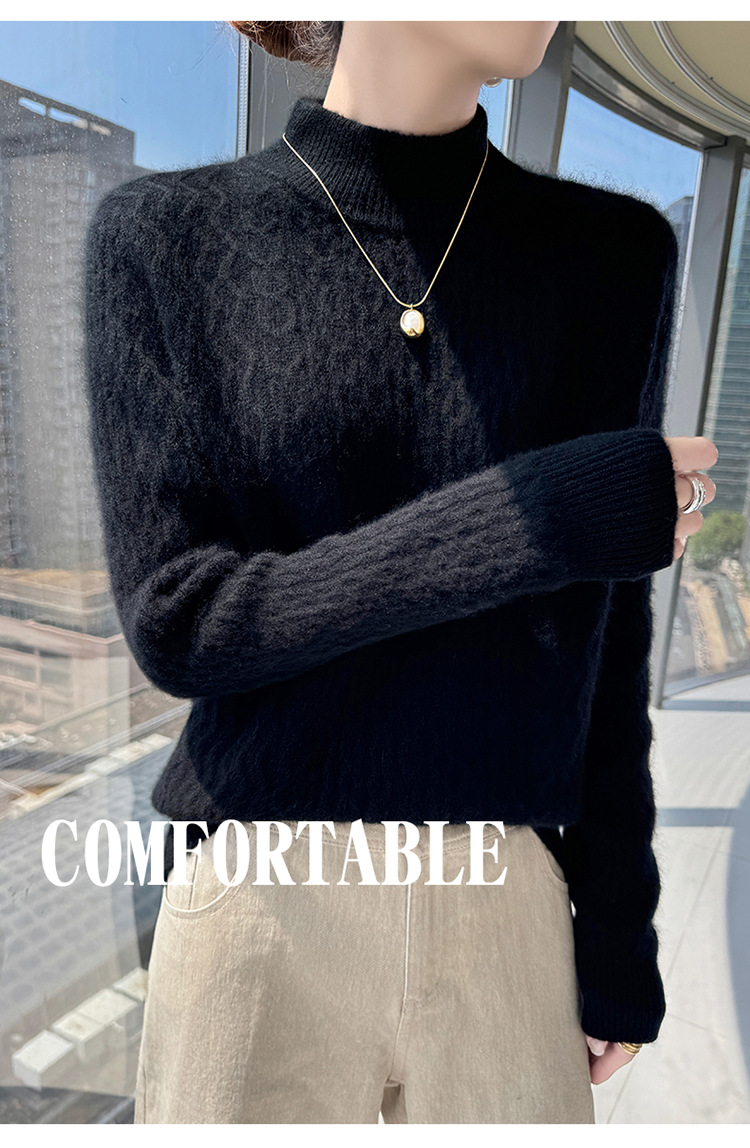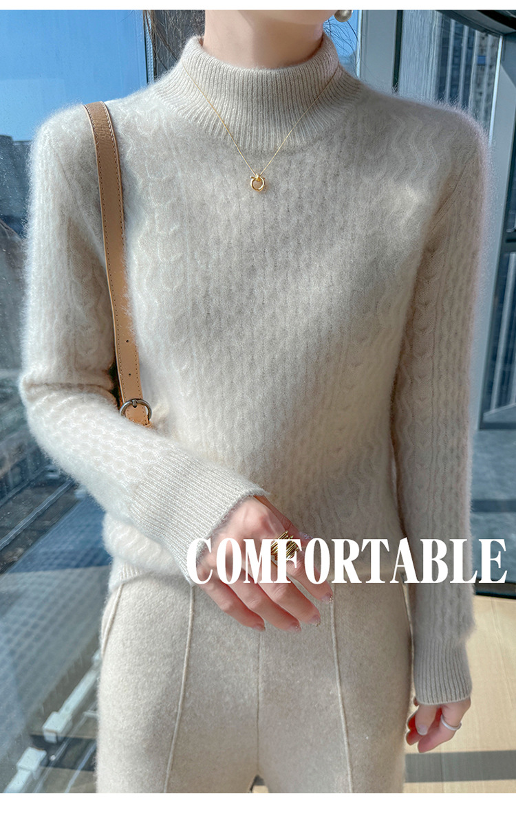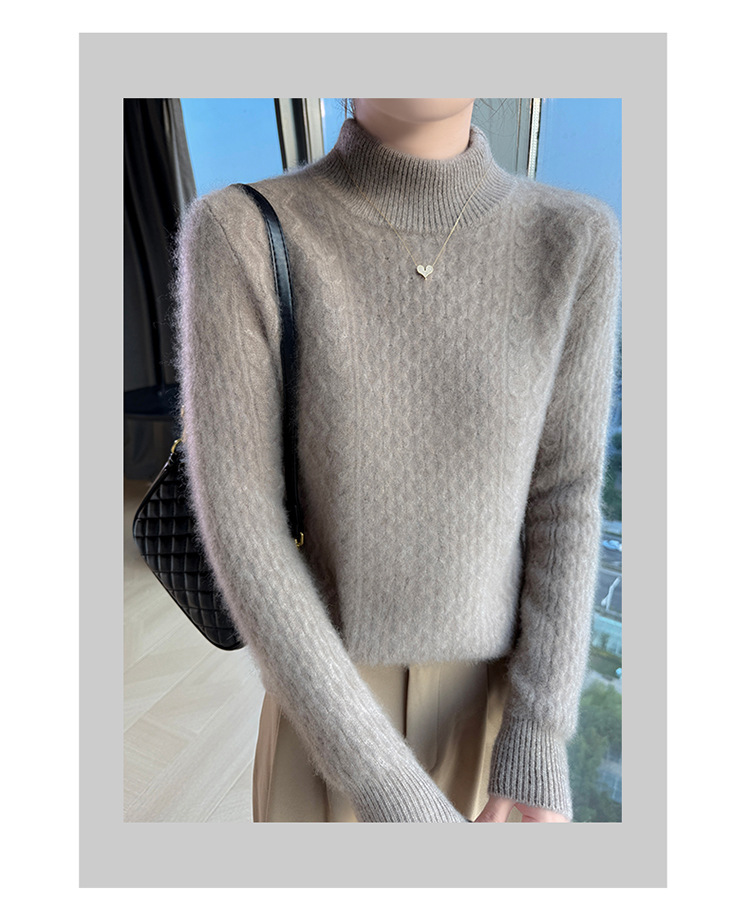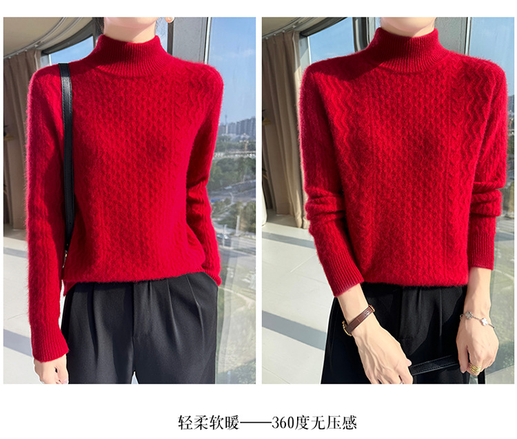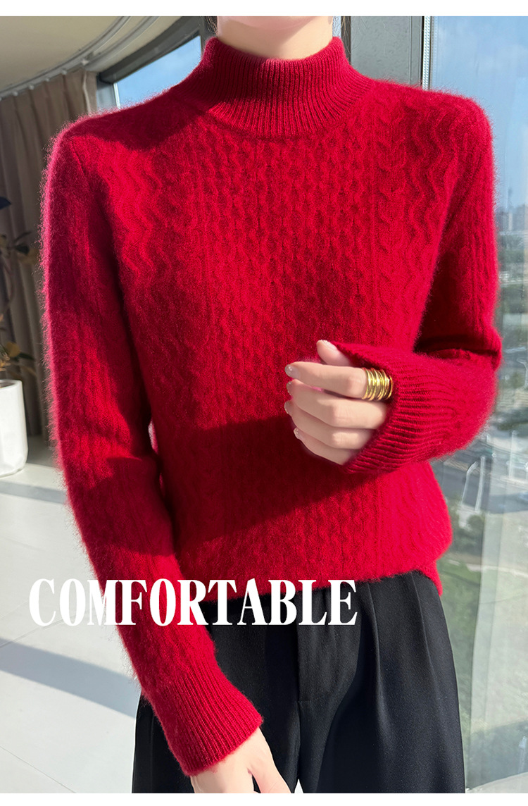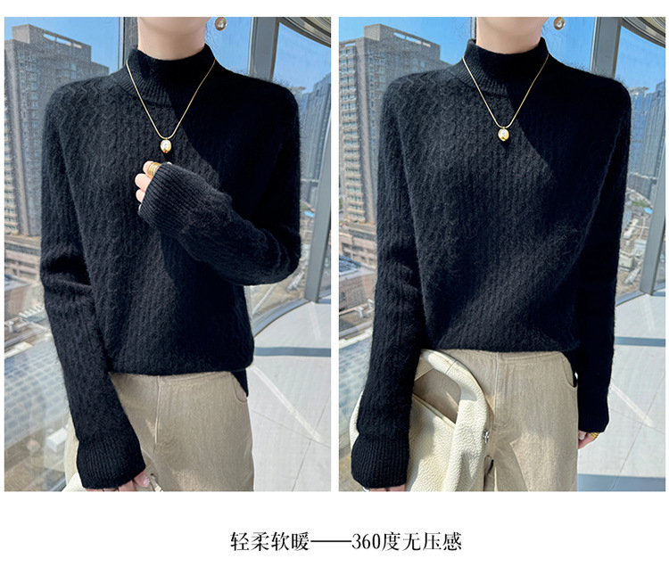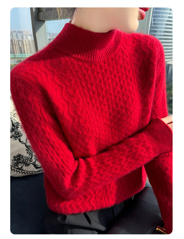 Choice 秋冬新款100羊毛双股加厚双层领羊绒针织衫女宽松扭花打底衫毛衣