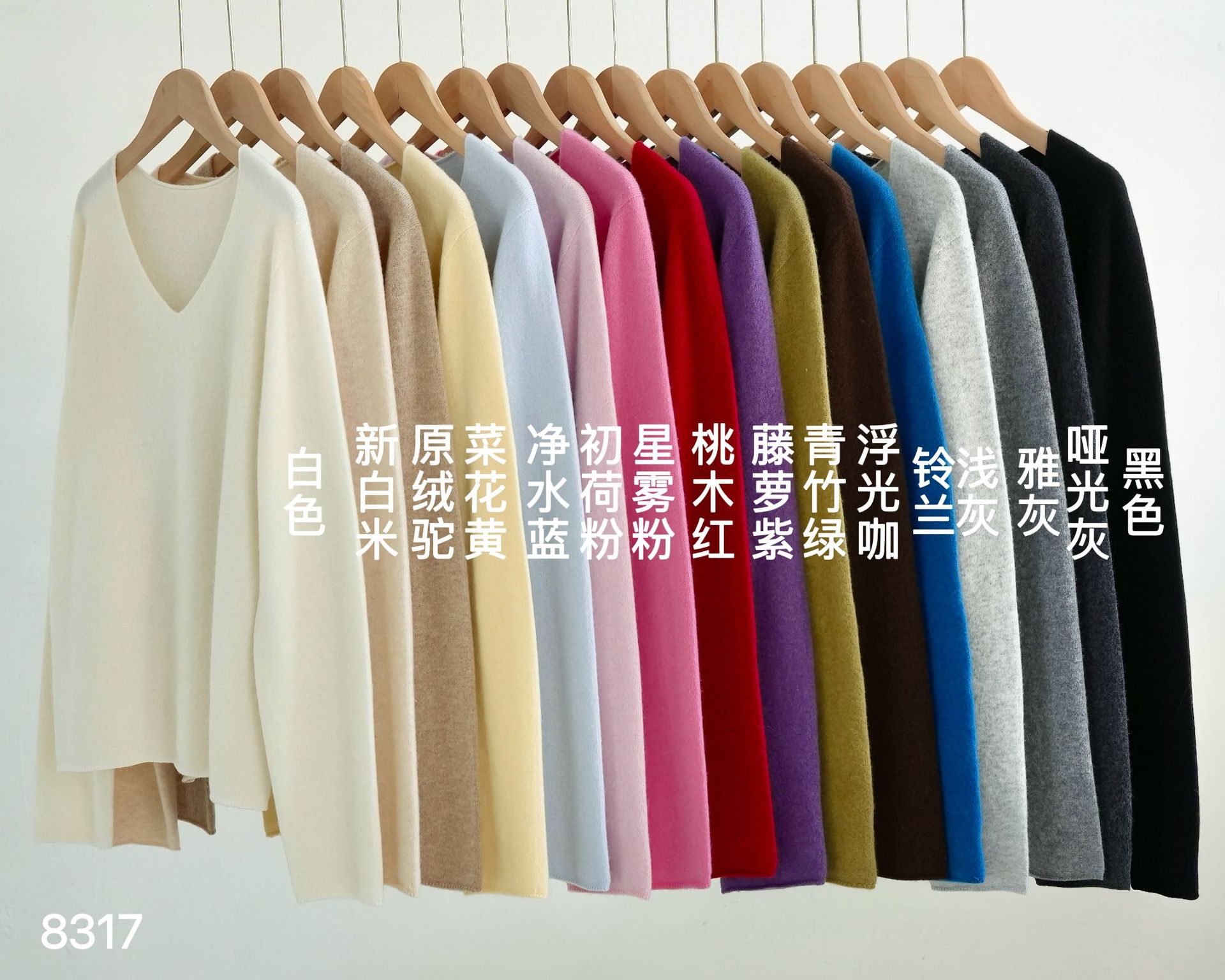 Choice 女式羊毛衫V领羊绒羊毛衫女上衣慵懒宽松长袖套头针织打底衫毛衣