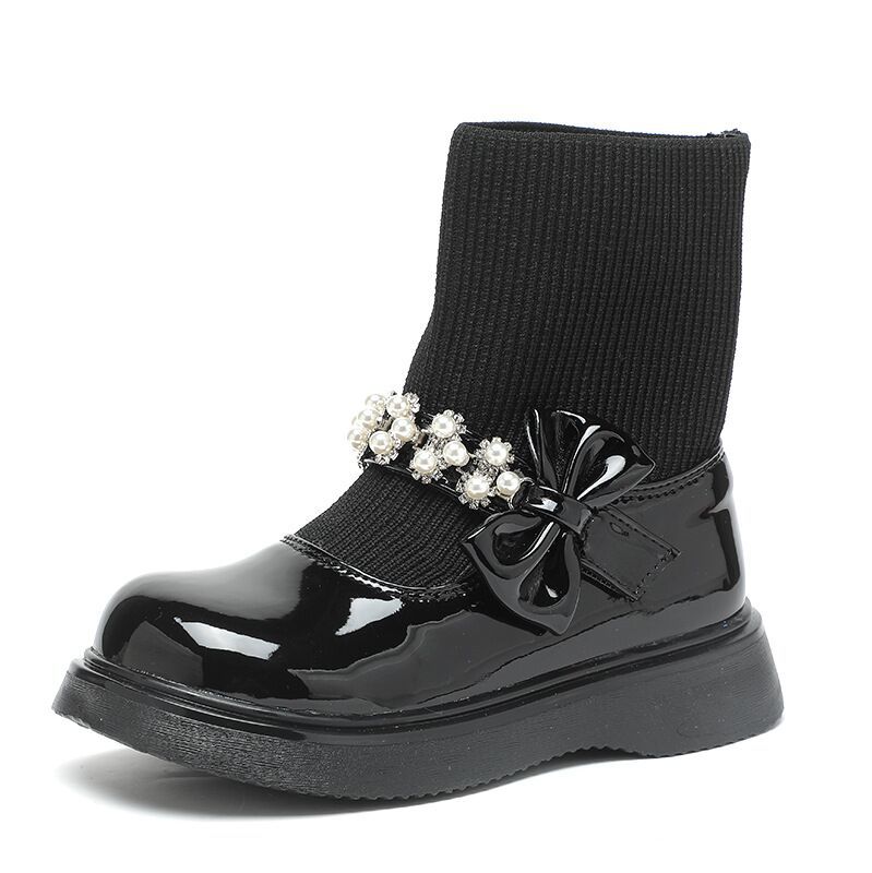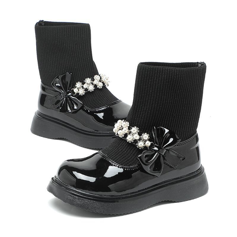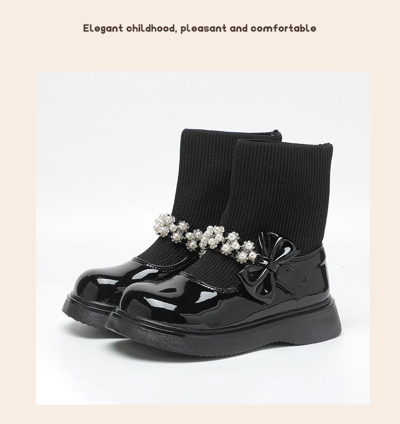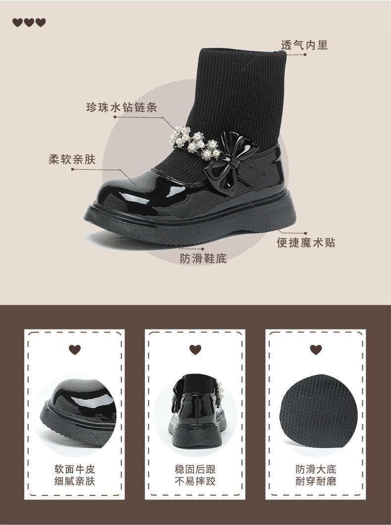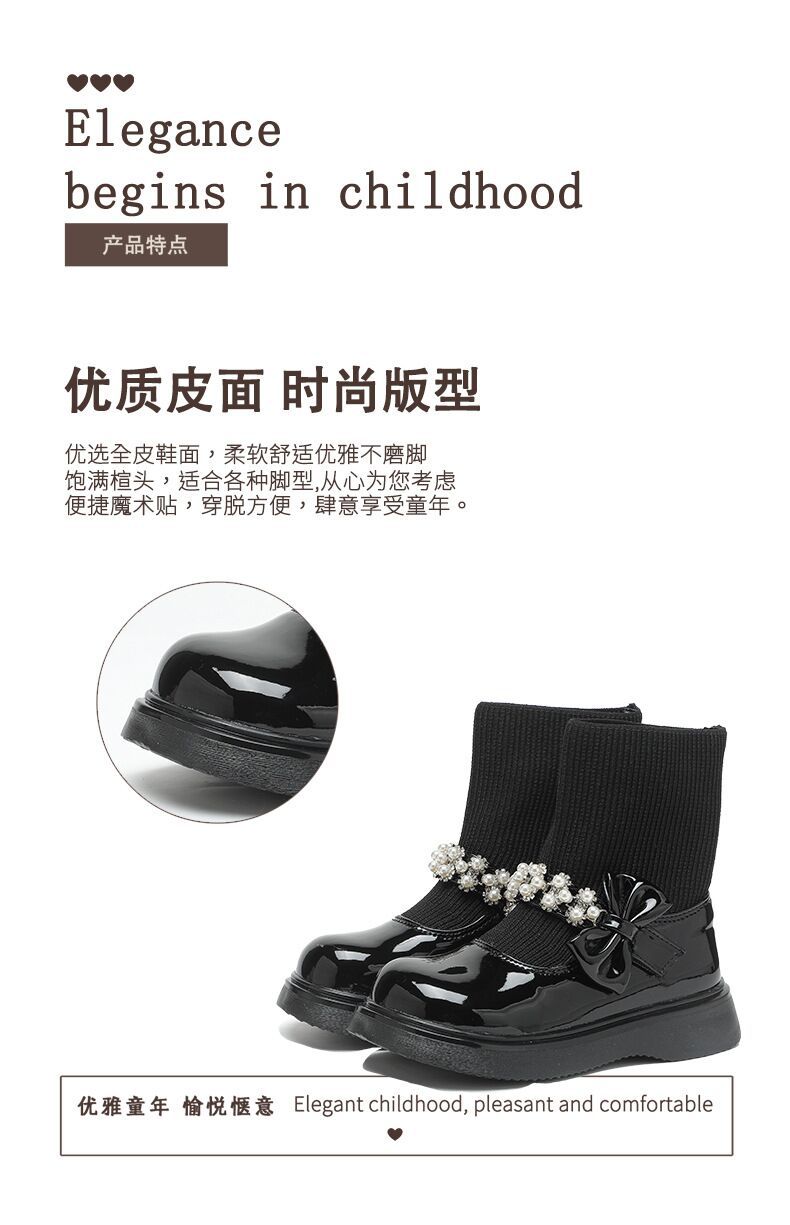 女童短靴袜子鞋2025秋冬季新款儿童皮鞋公主靴子女孩单靴珍珠棉袜