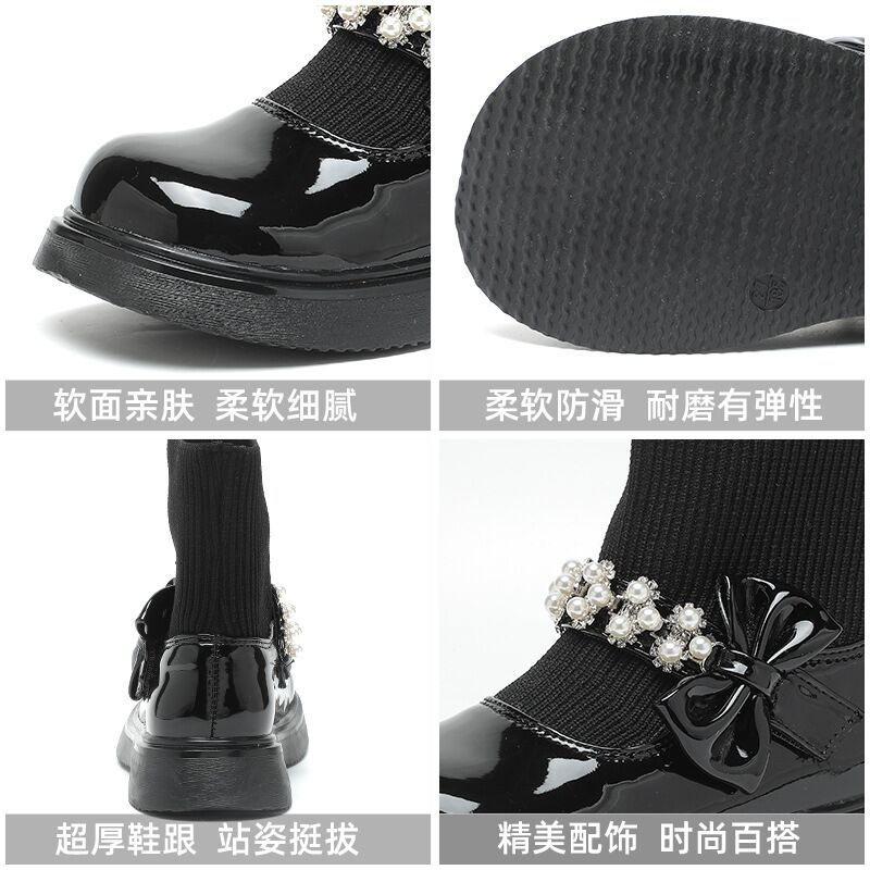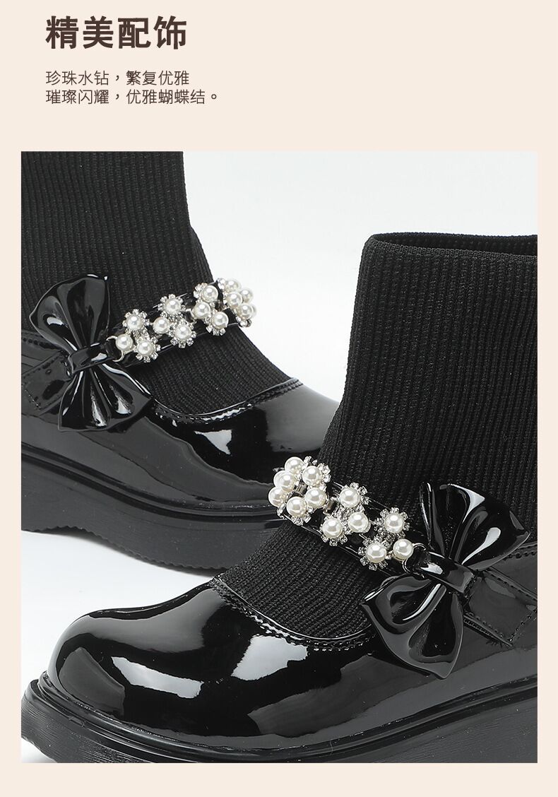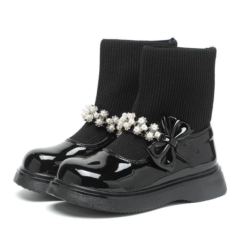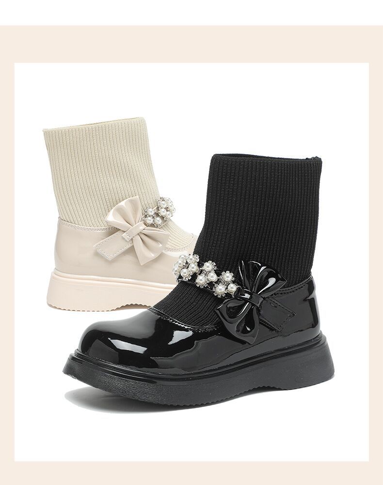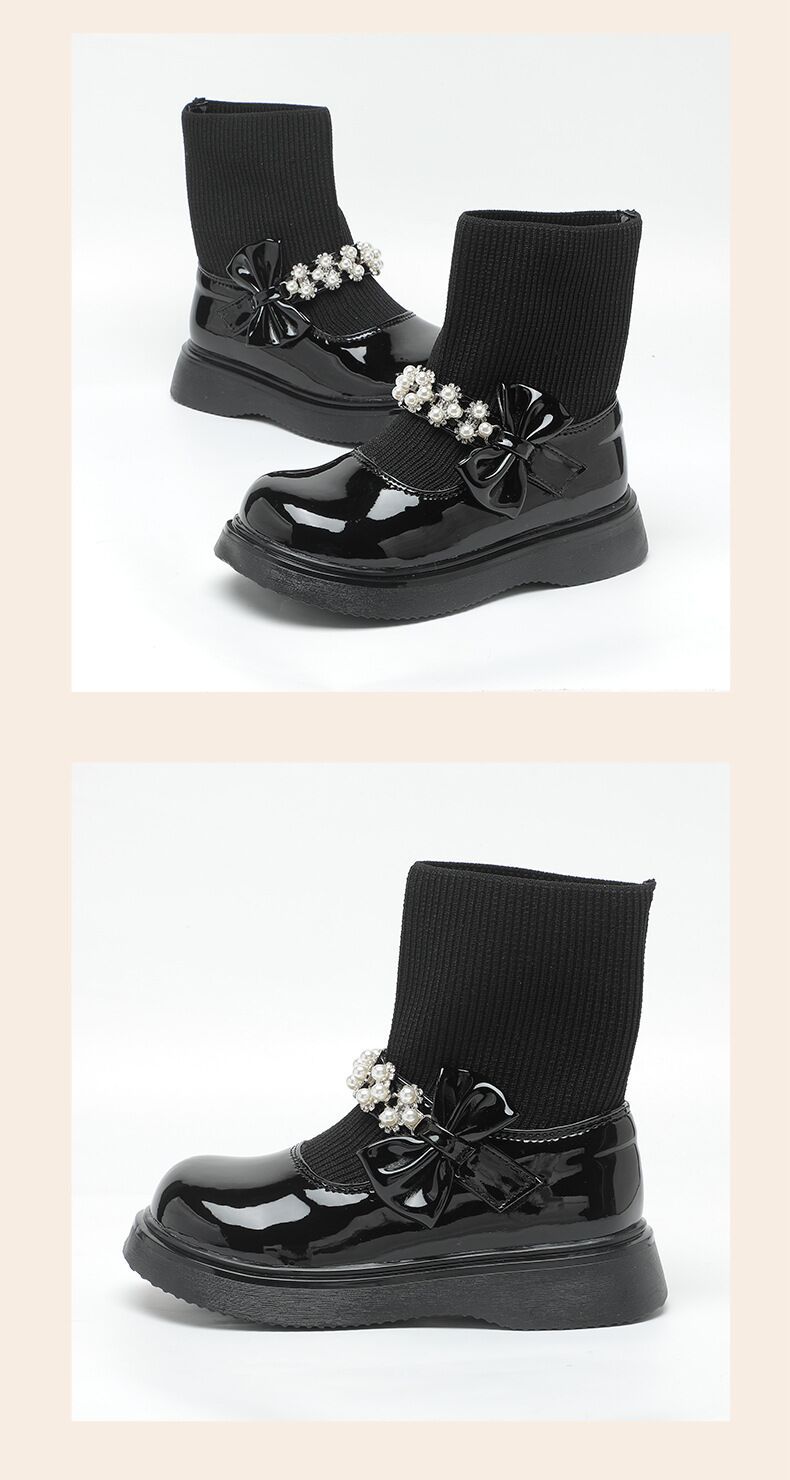 女童短靴袜子鞋2025秋冬季新款儿童皮鞋公主靴子女孩单靴珍珠棉袜