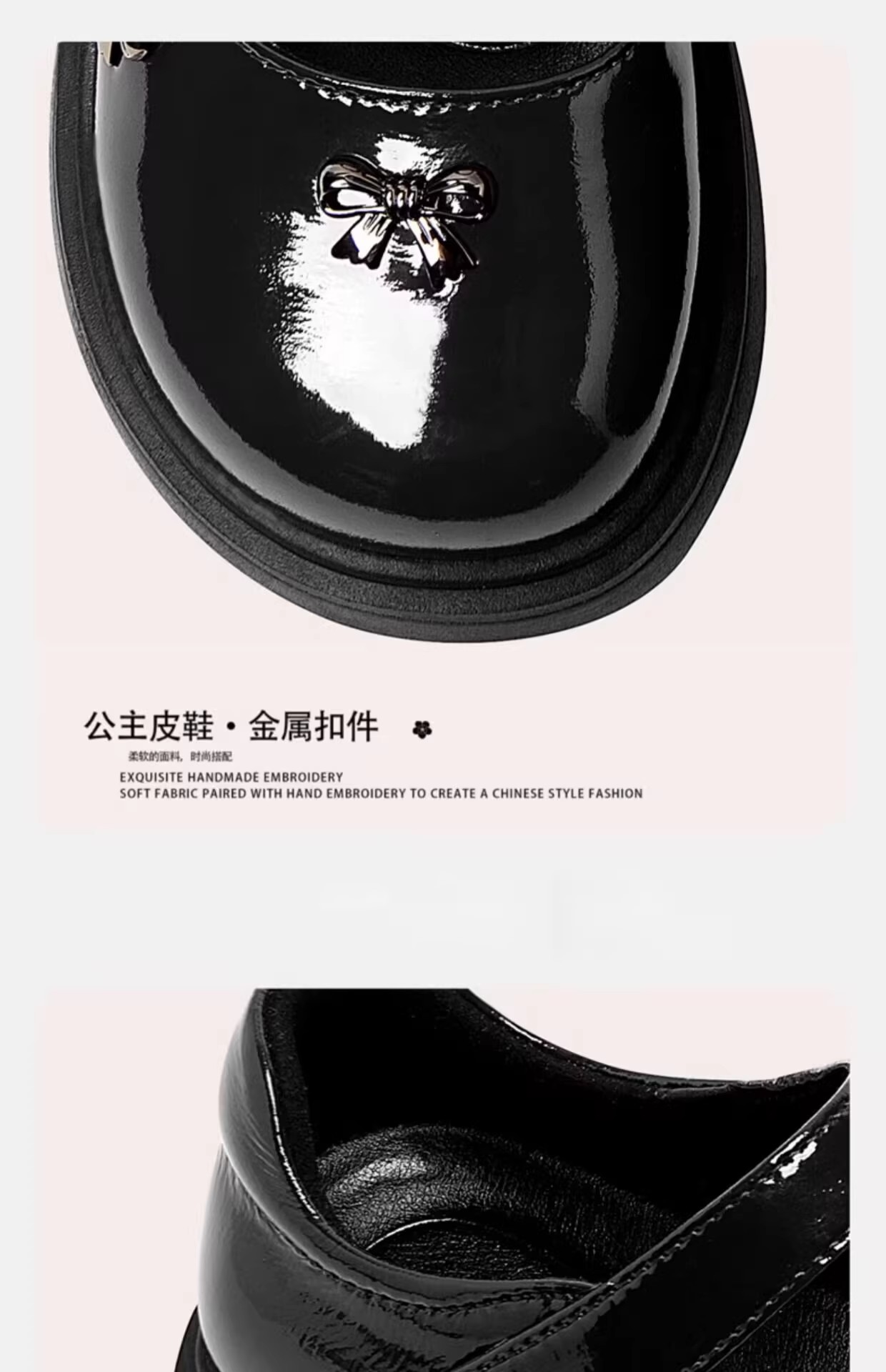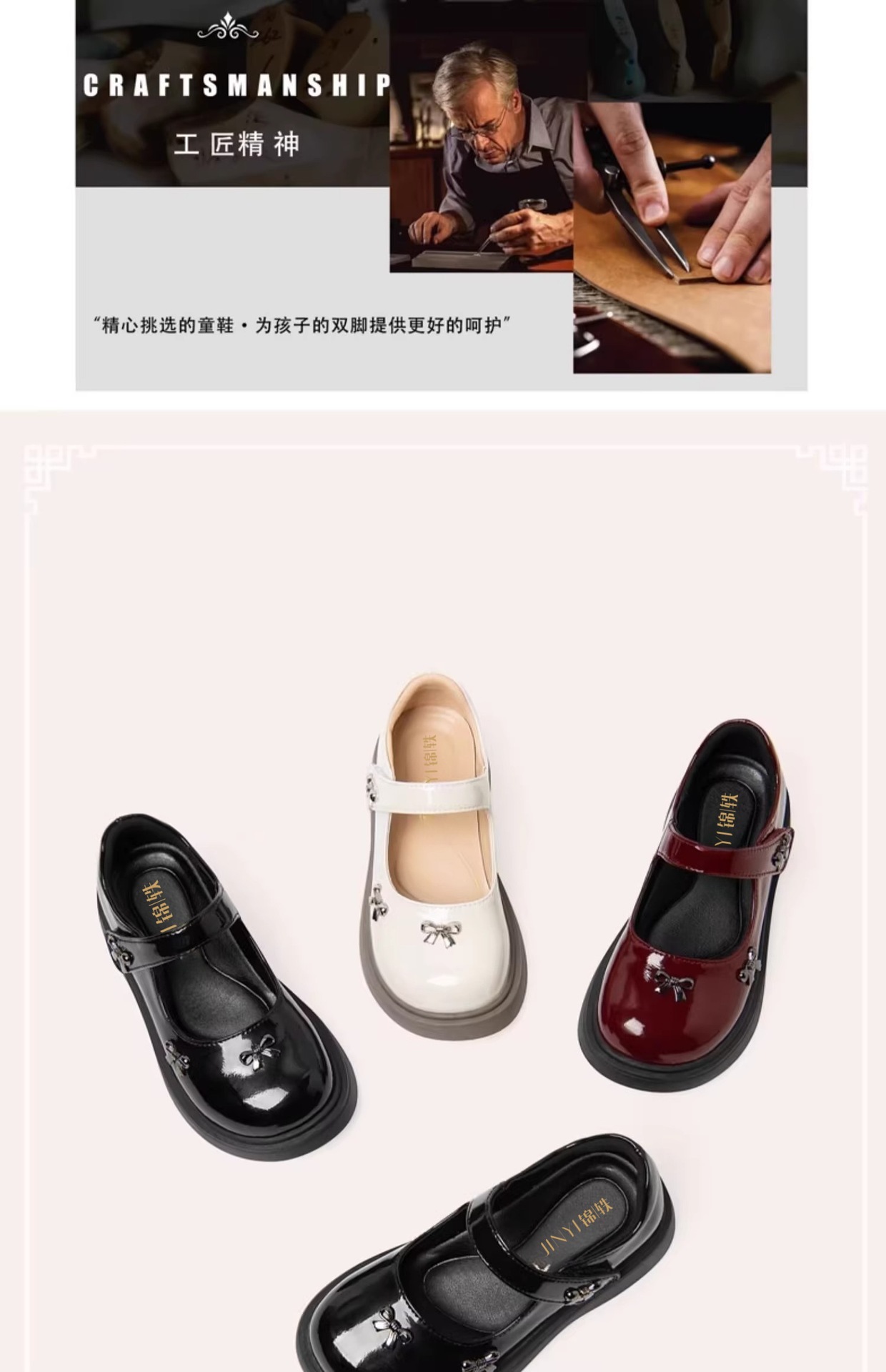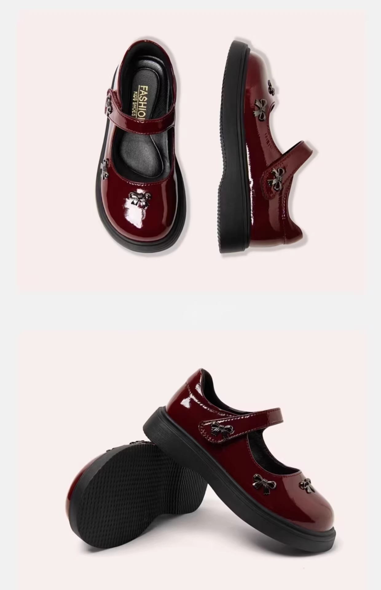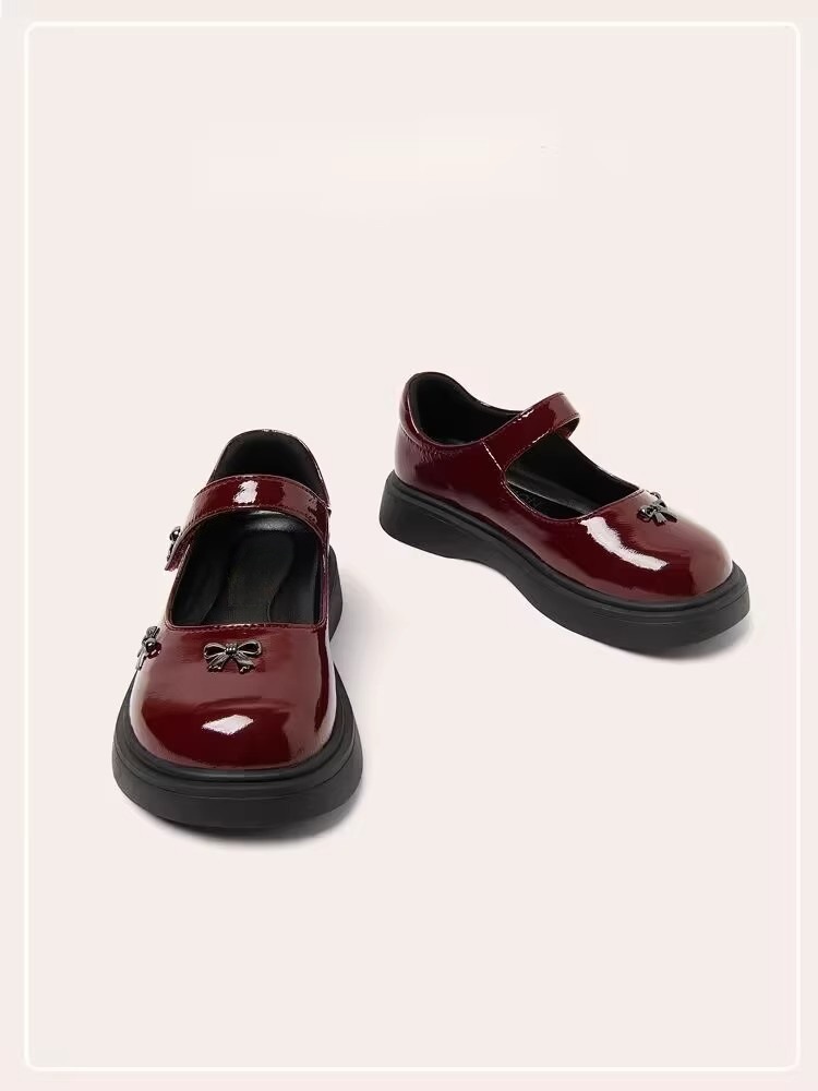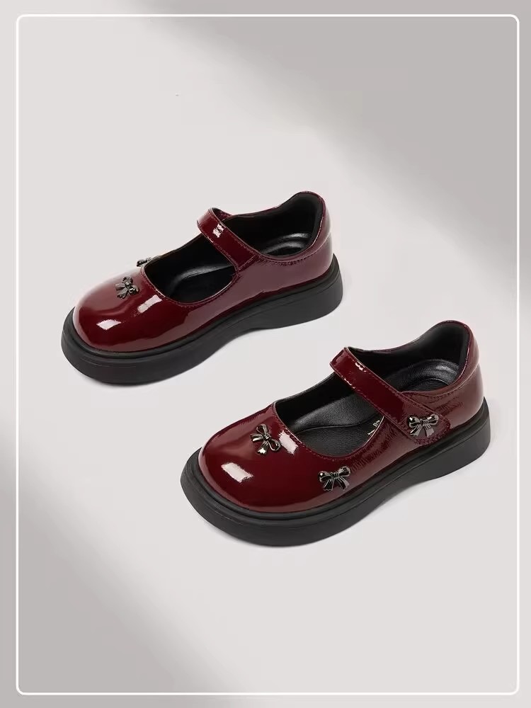 酒红色儿童皮鞋女童春秋季新款真皮珍珠吊坠软底学生单鞋演出舞蹈