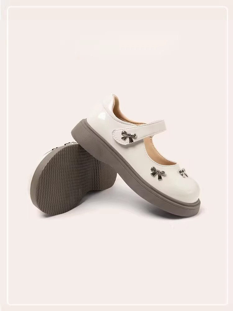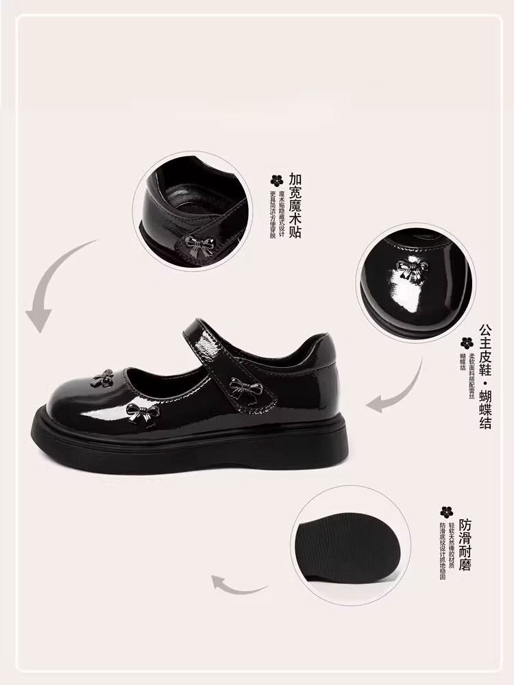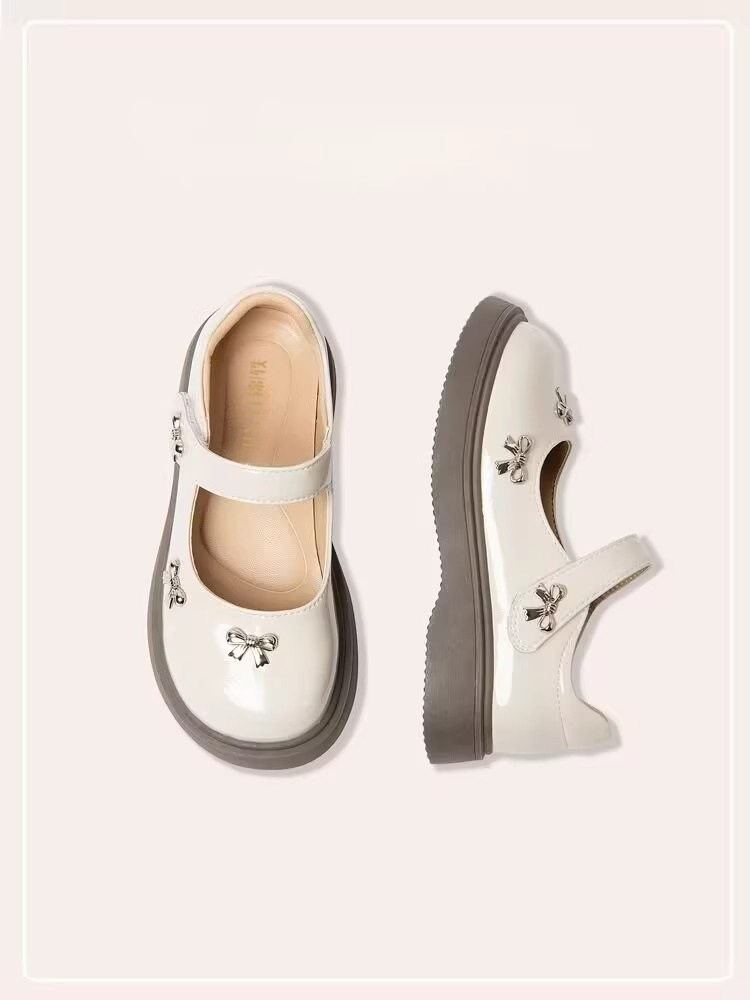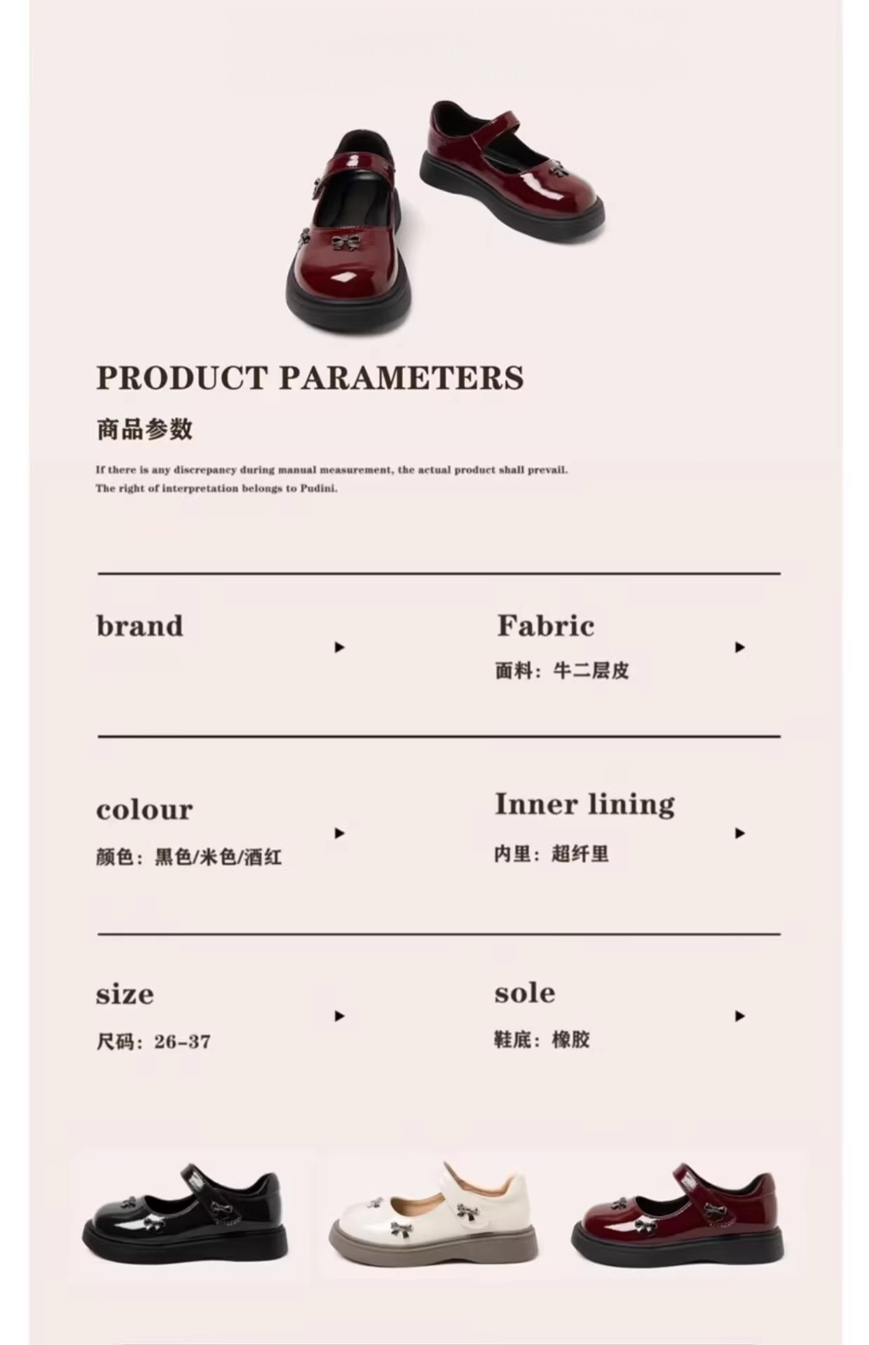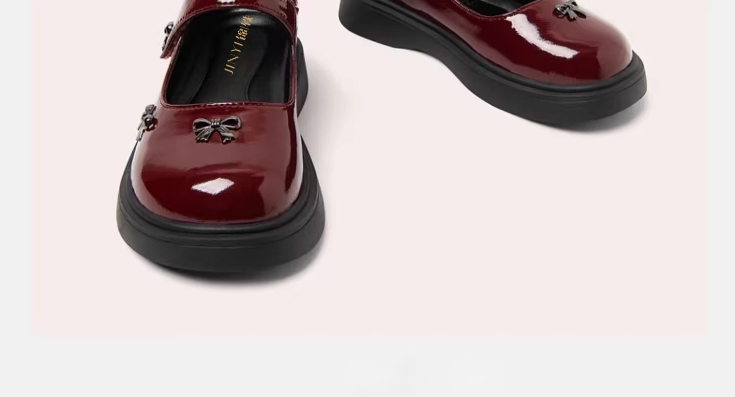 酒红色儿童皮鞋女童春秋季新款真皮珍珠吊坠软底学生单鞋演出舞蹈
