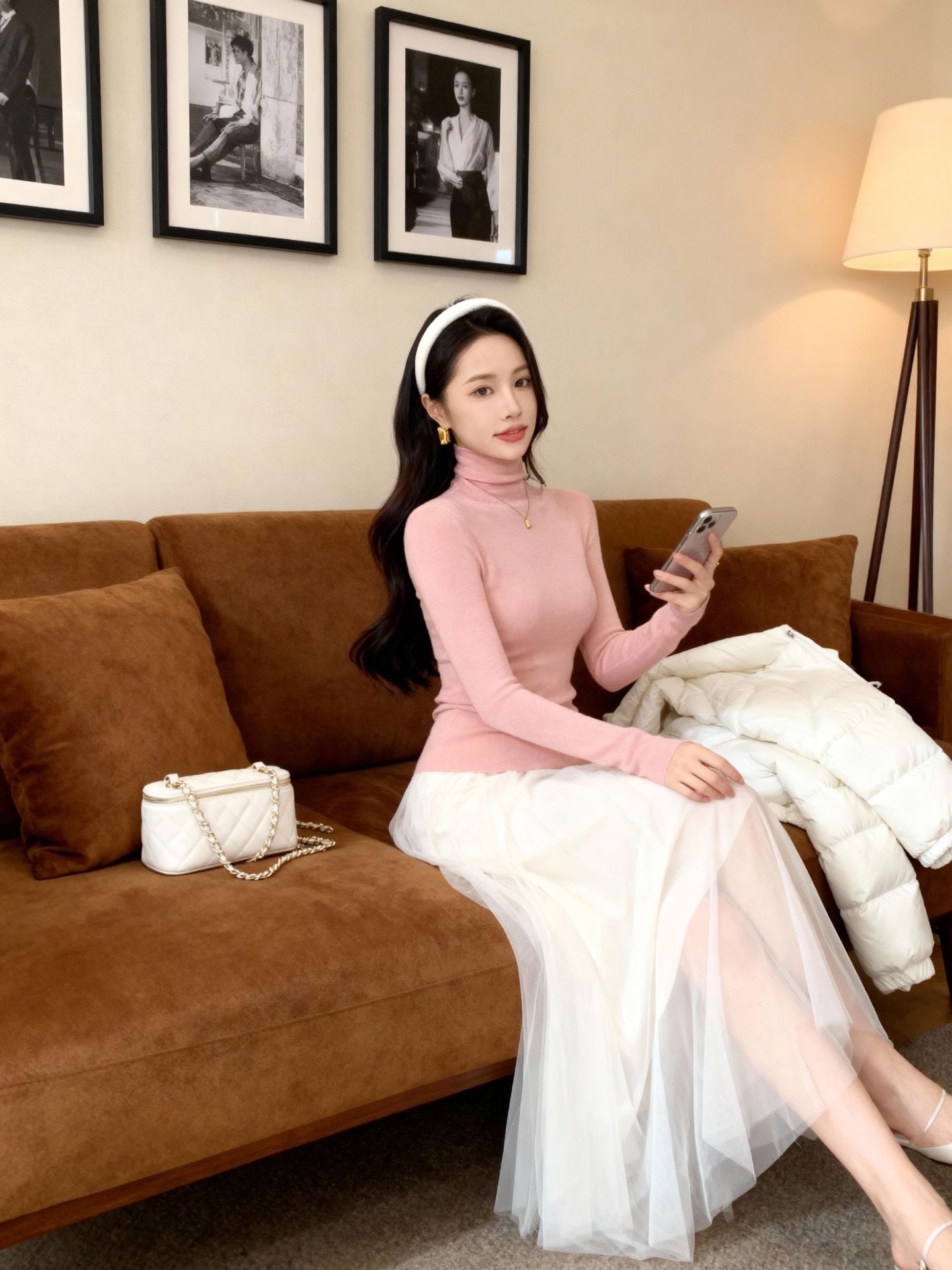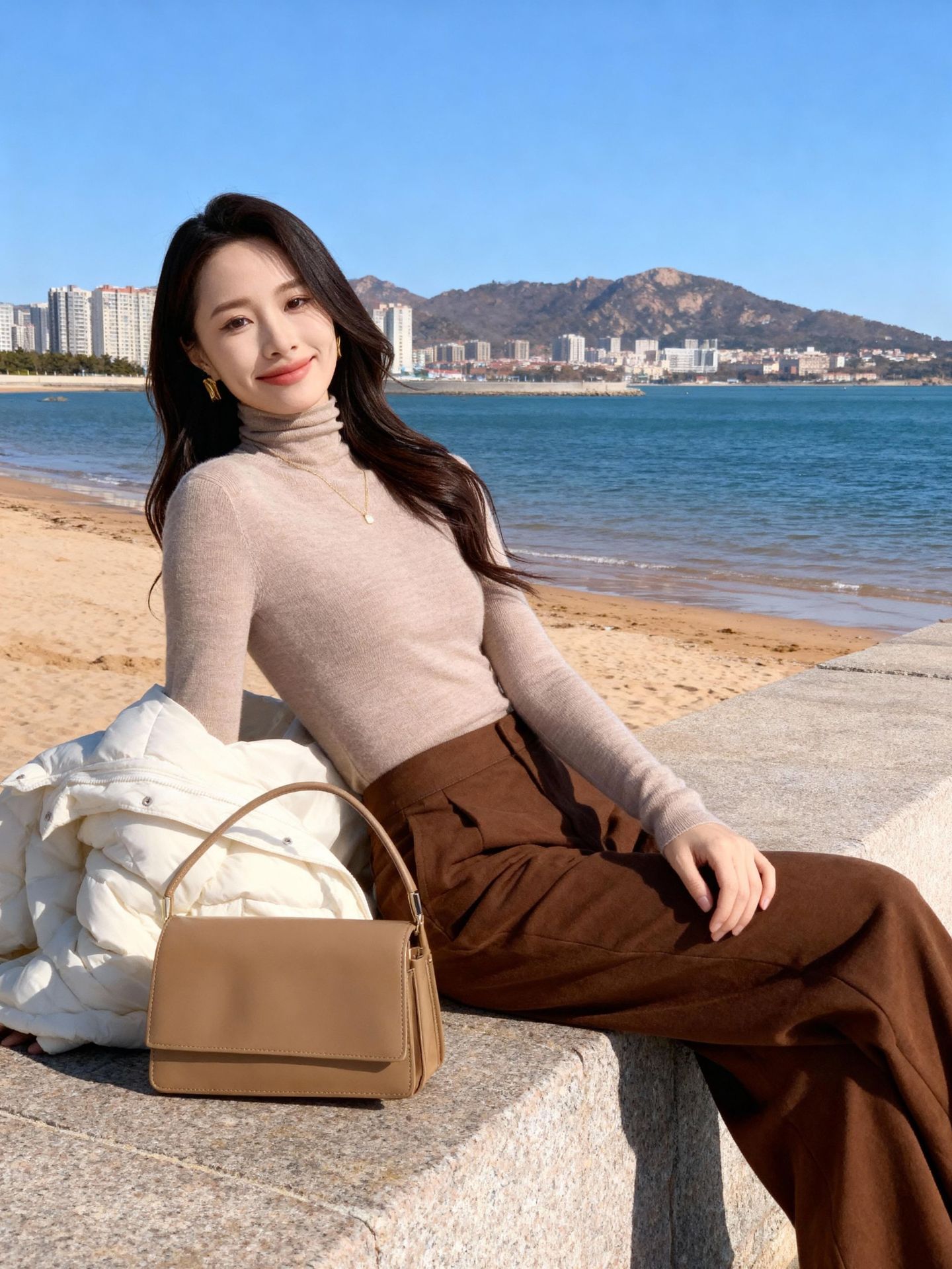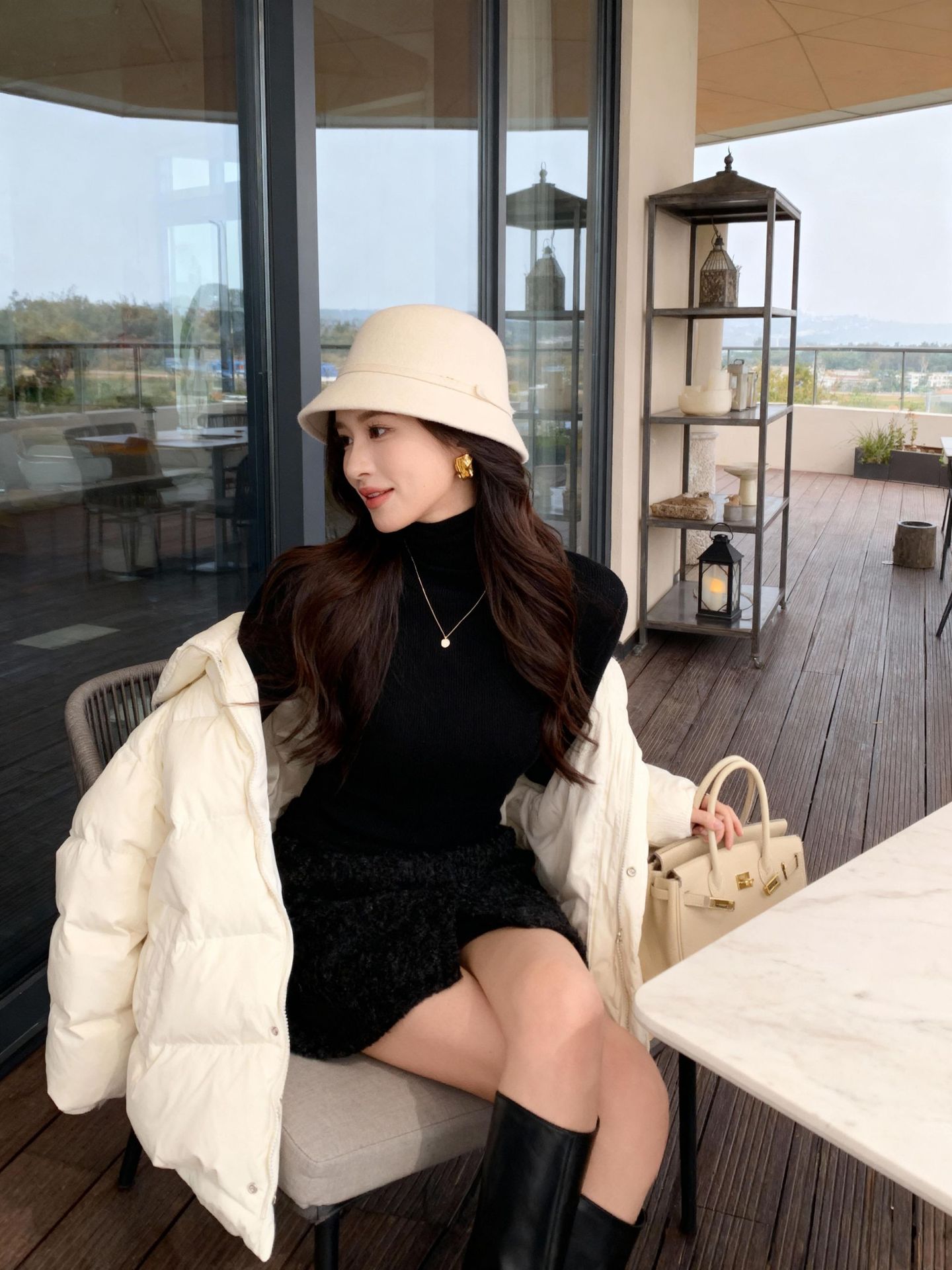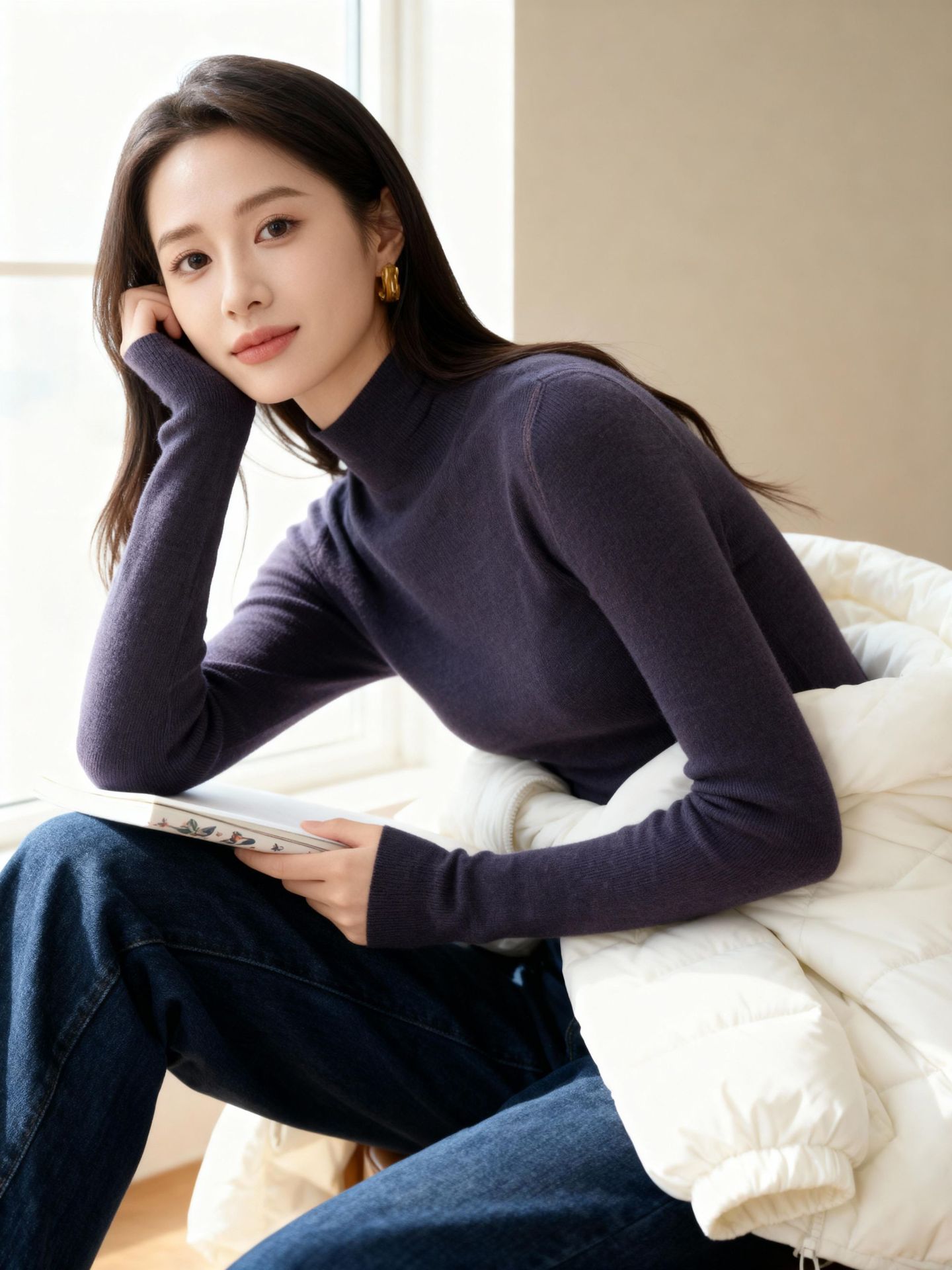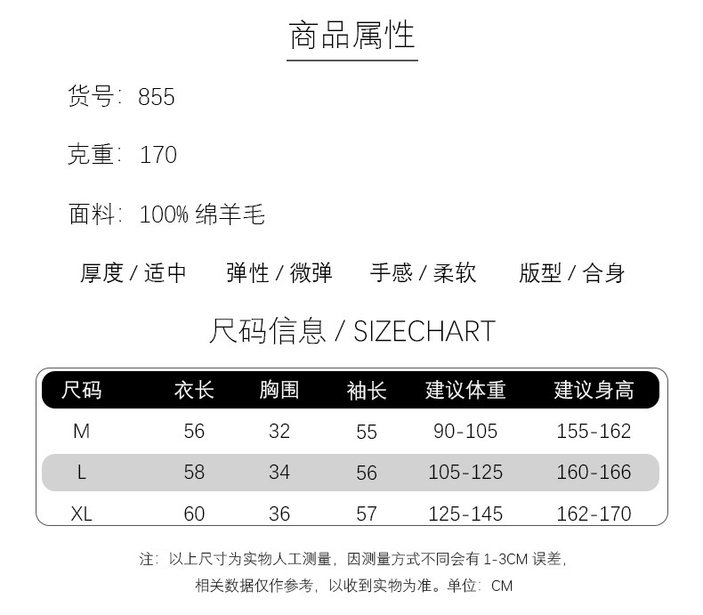 Choice 100%精纺羊毛打底衫无缝一体可机洗羊毛衫半高领毛衣打底衫女内搭