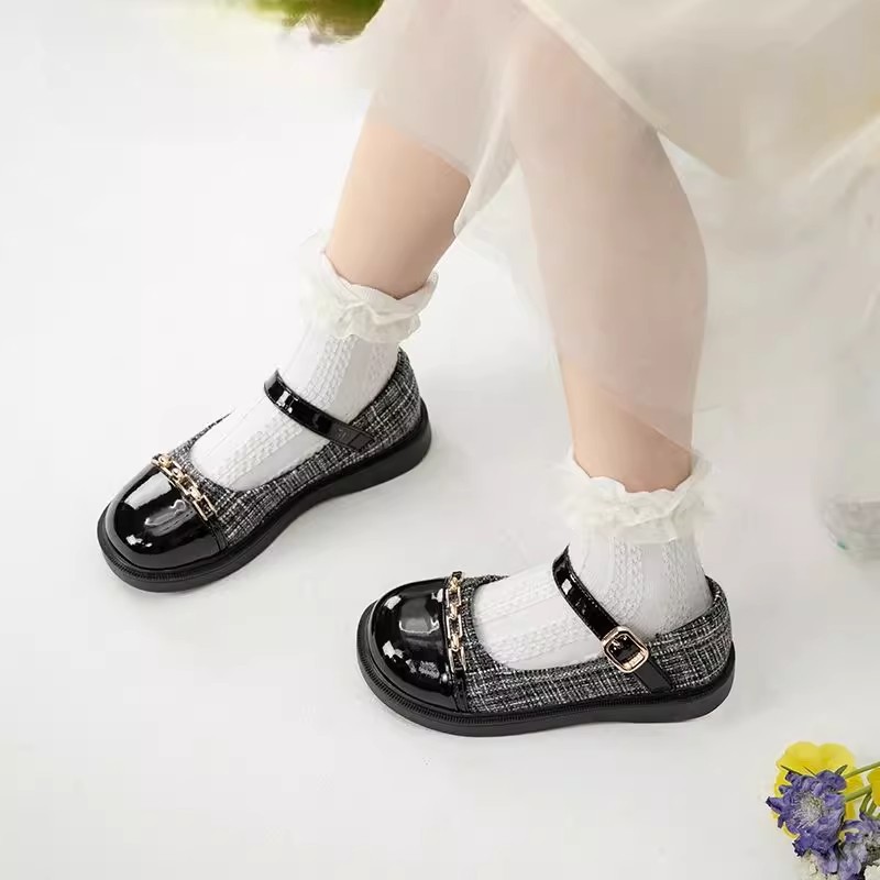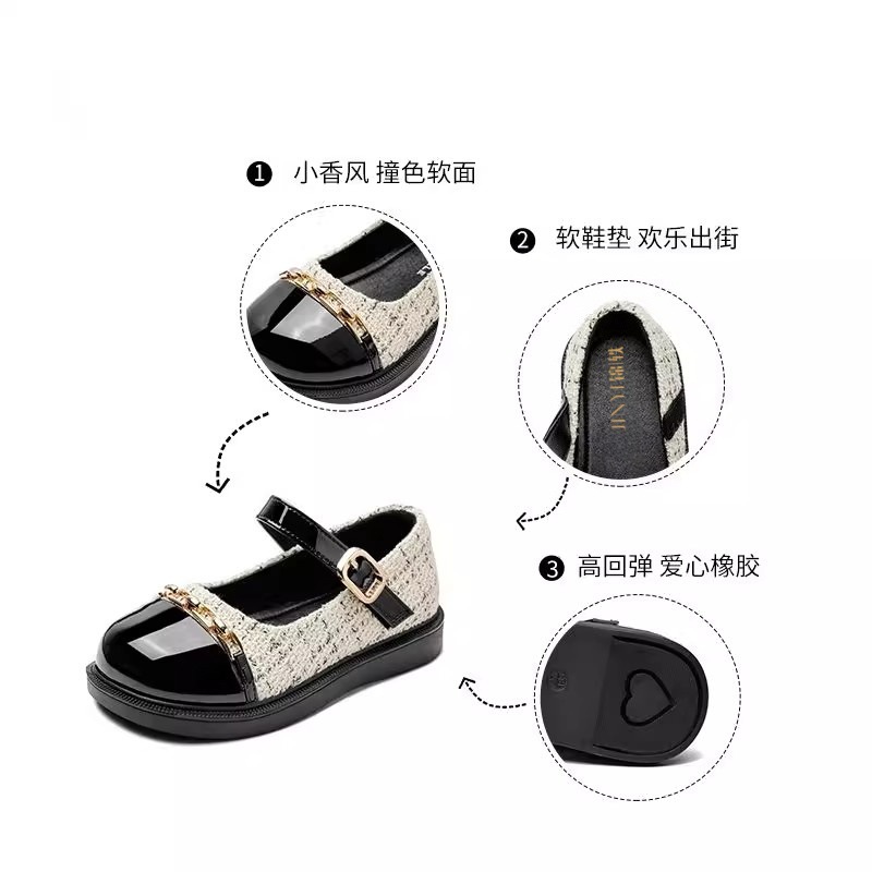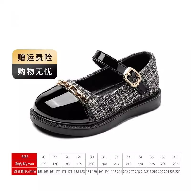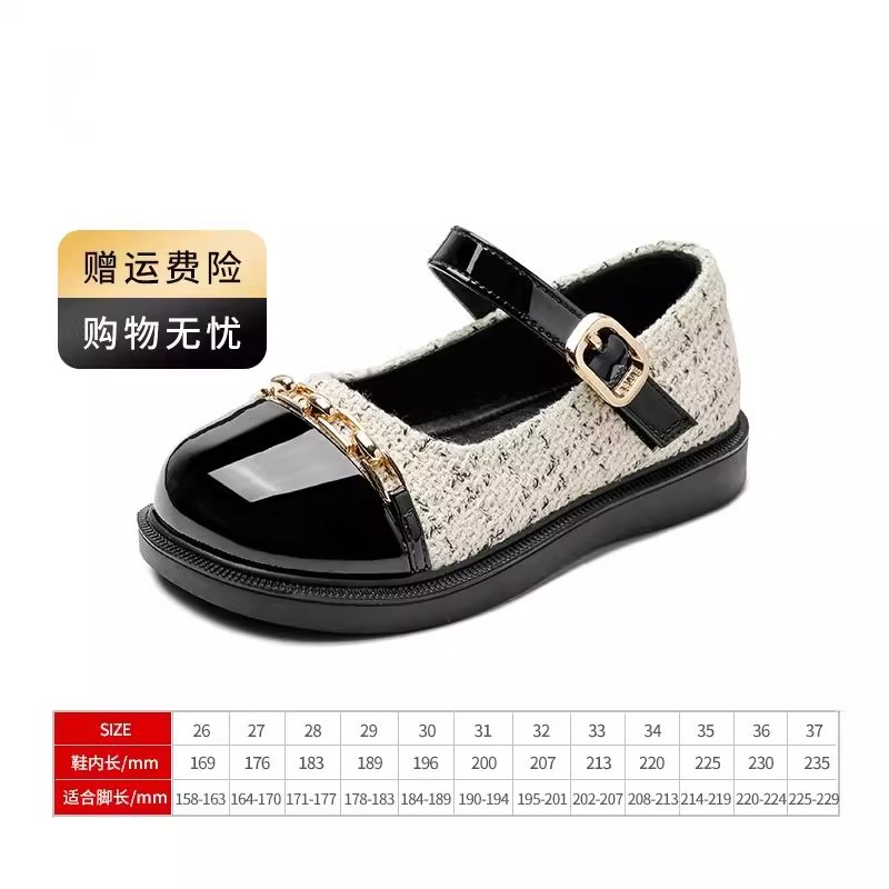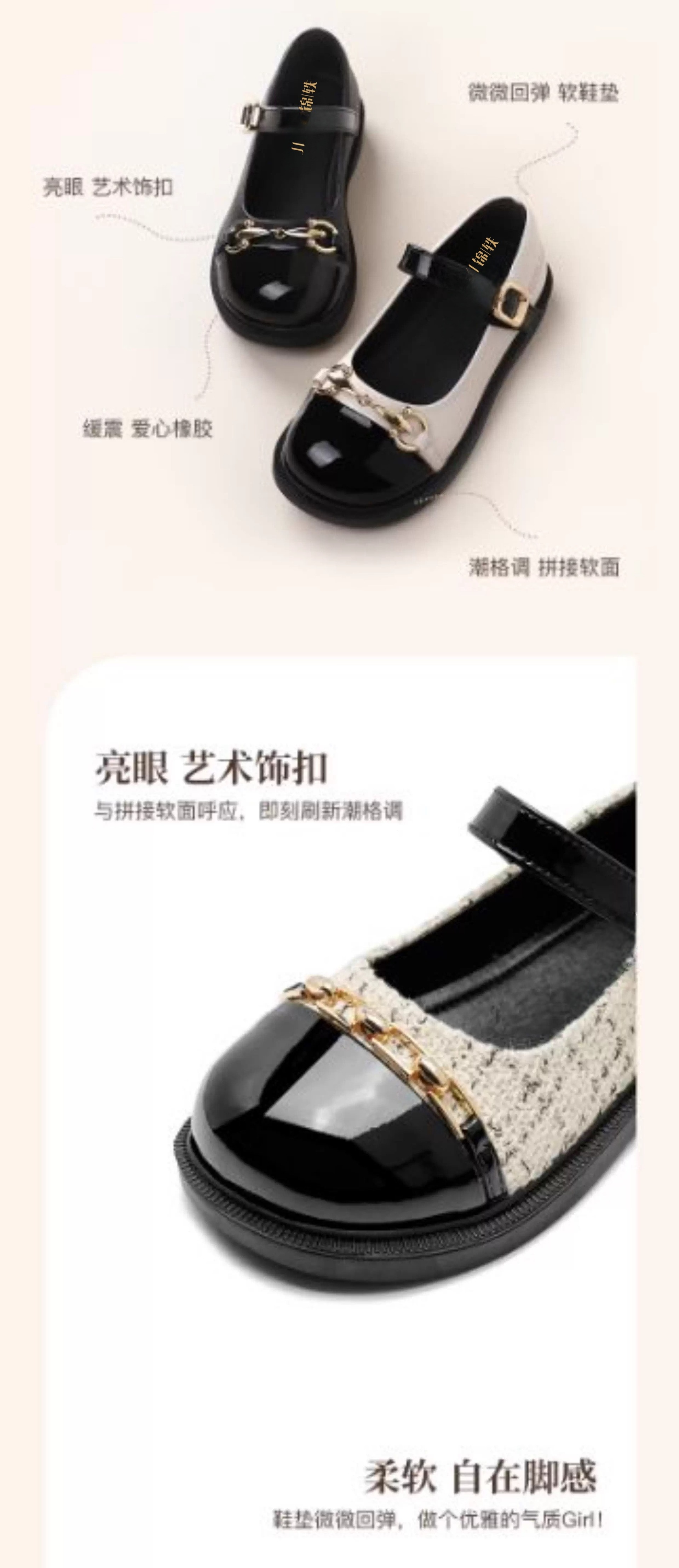 酒红色儿童皮鞋女童春秋季新款真皮珍珠吊坠软底学生单鞋演出舞蹈
