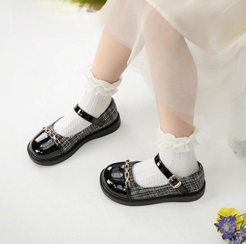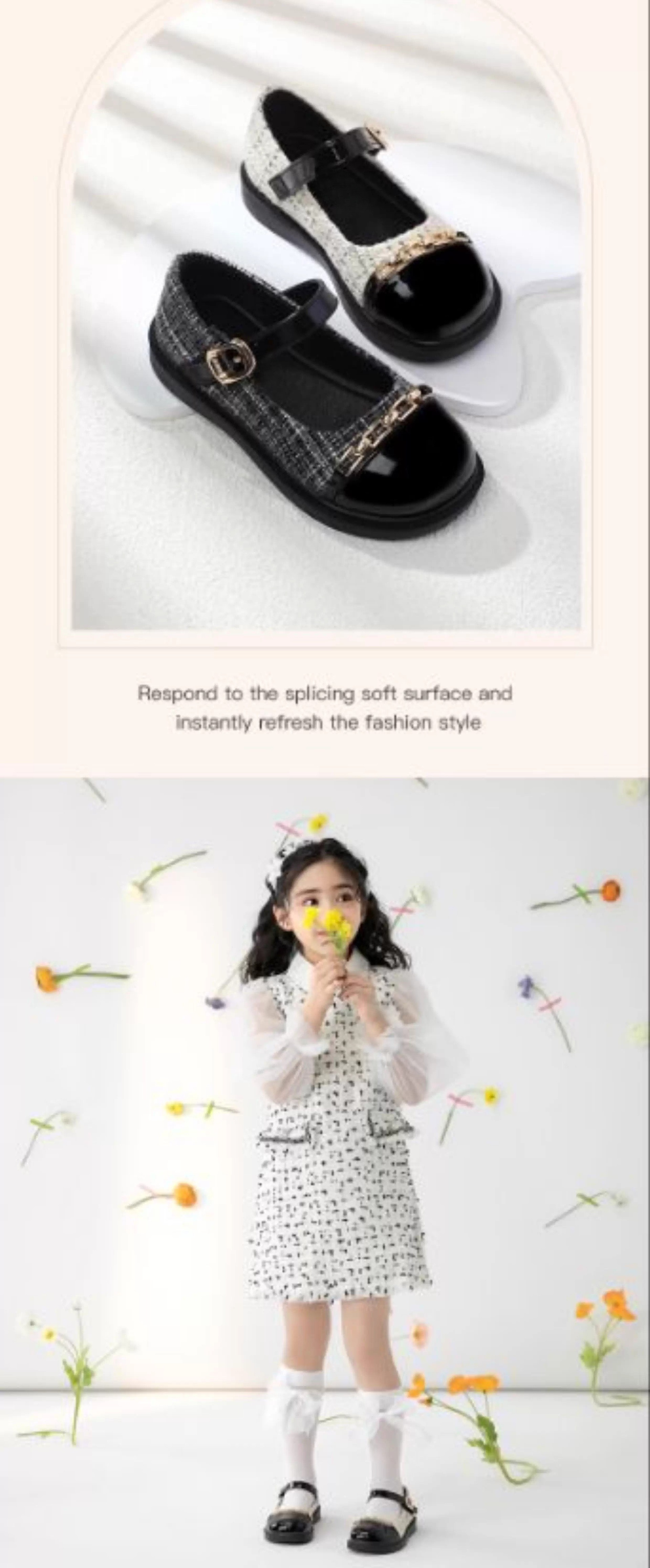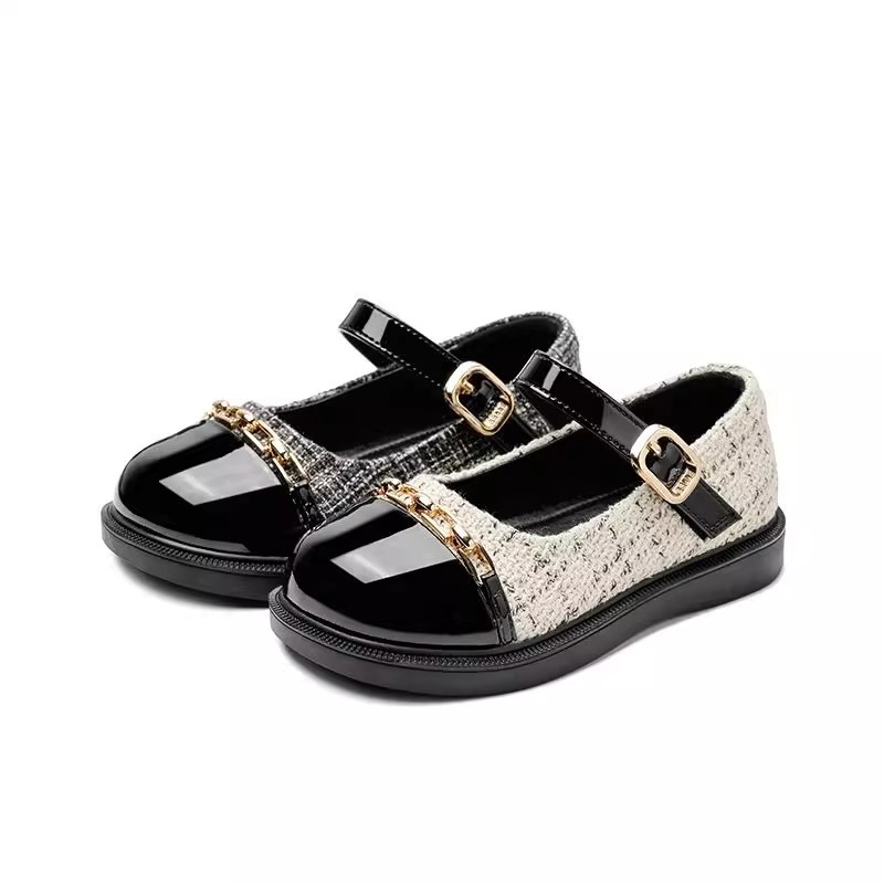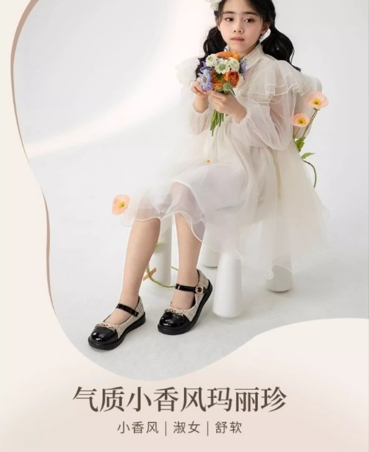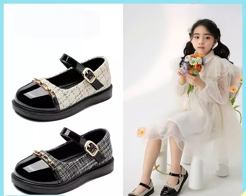酒红色儿童皮鞋女童春秋季新款真皮珍珠吊坠软底学生单鞋演出舞蹈
