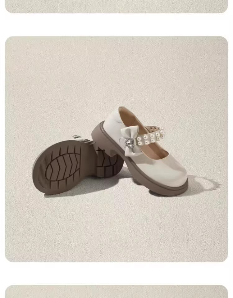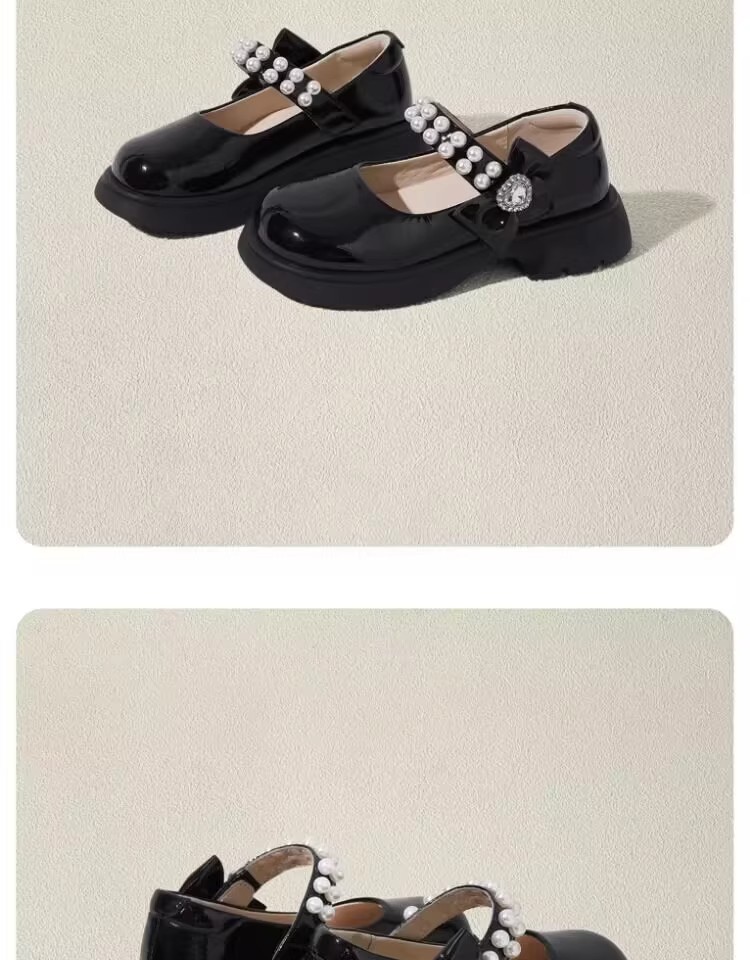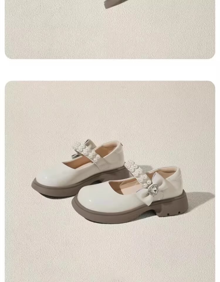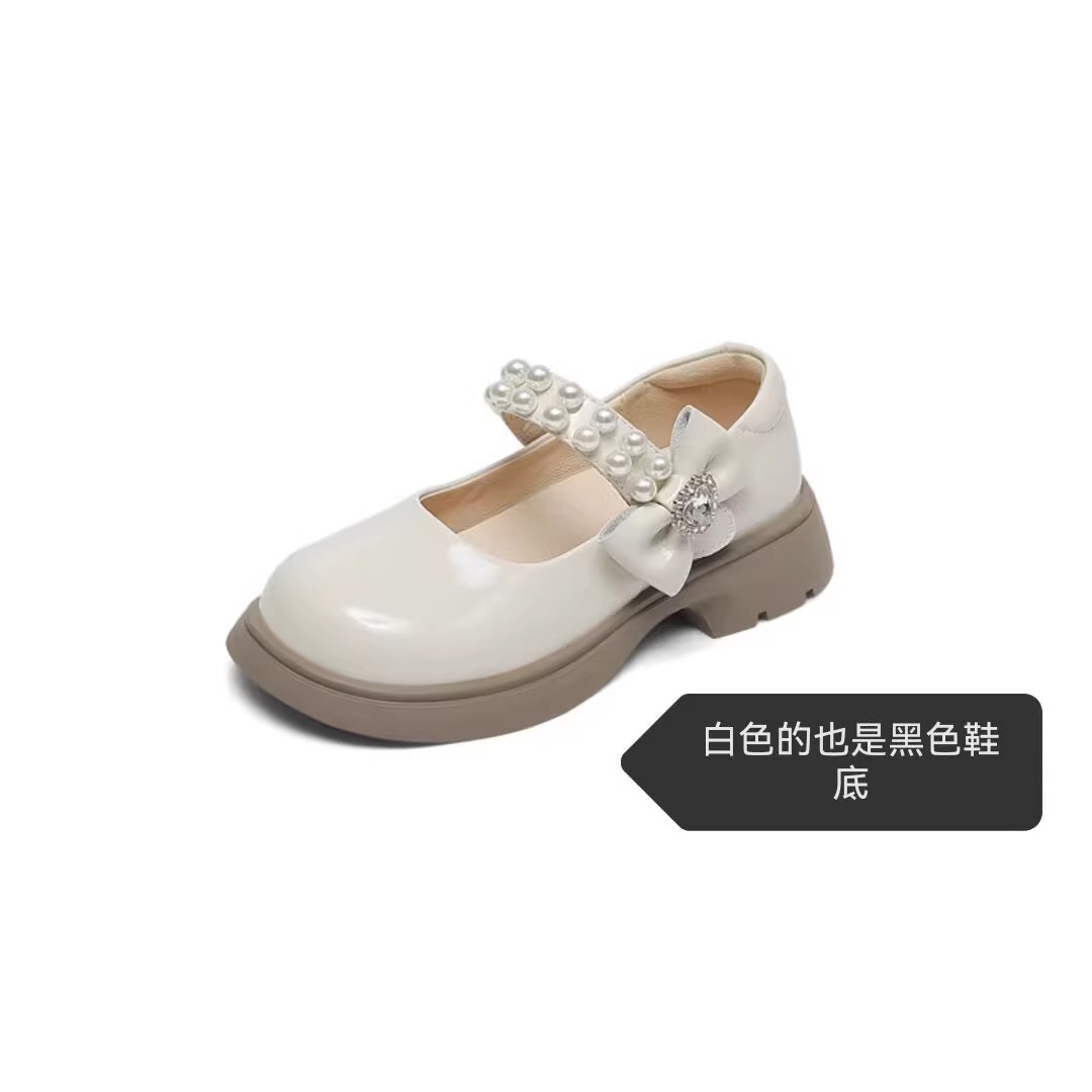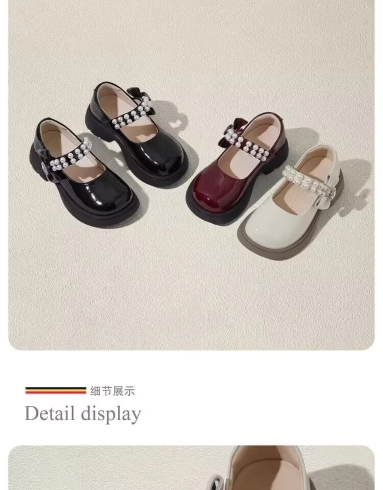 酒红色儿童皮鞋女童春秋季新款真皮珍珠吊坠软底学生单鞋演出舞蹈