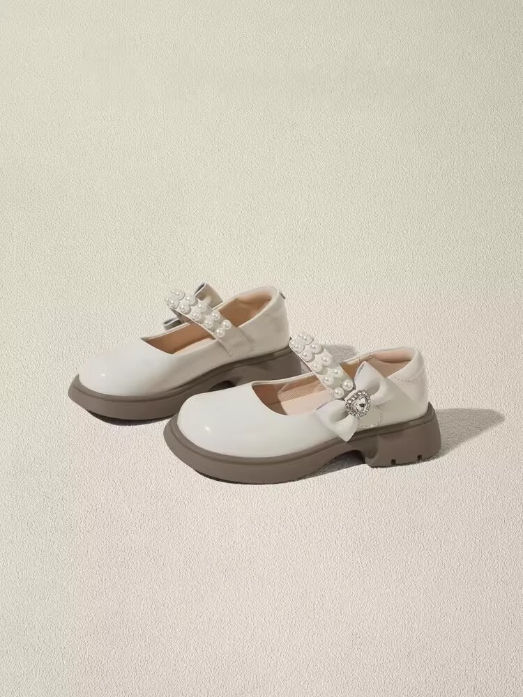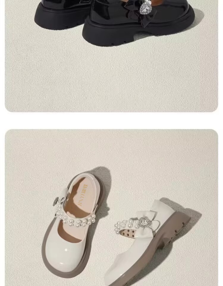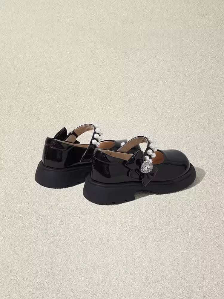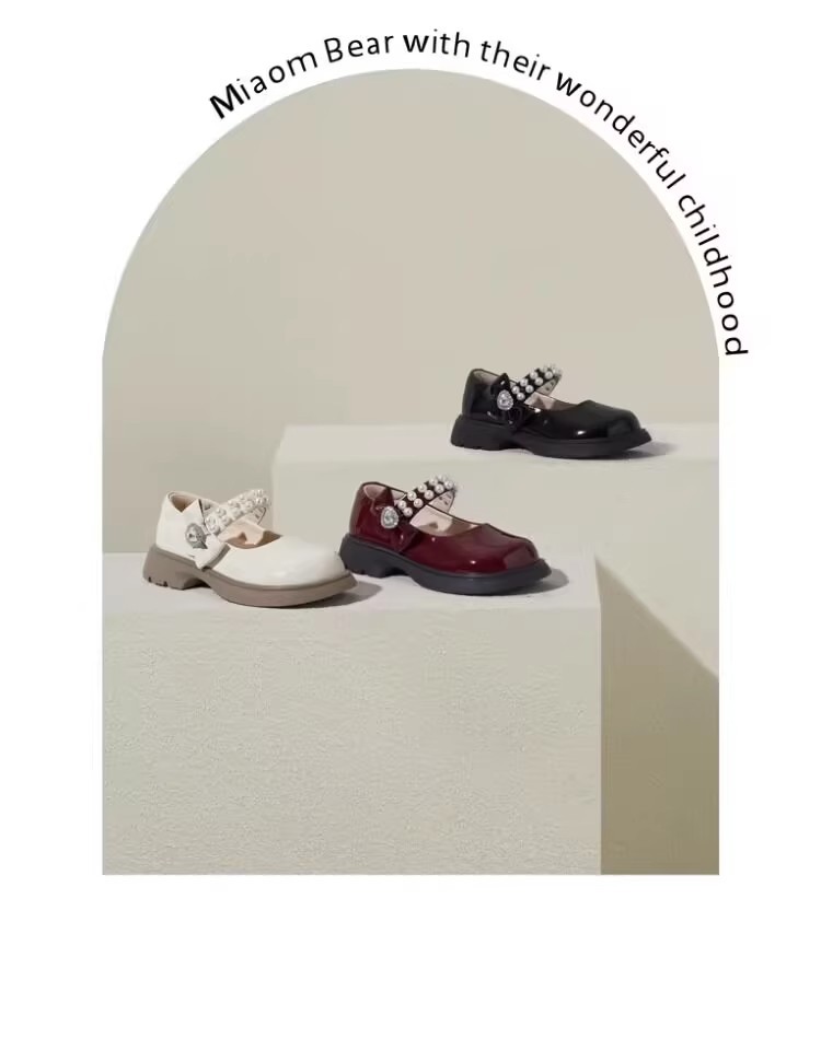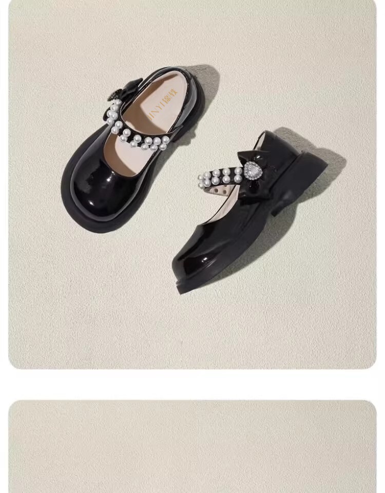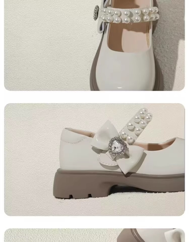 酒红色儿童皮鞋女童春秋季新款真皮珍珠吊坠软底学生单鞋演出舞蹈