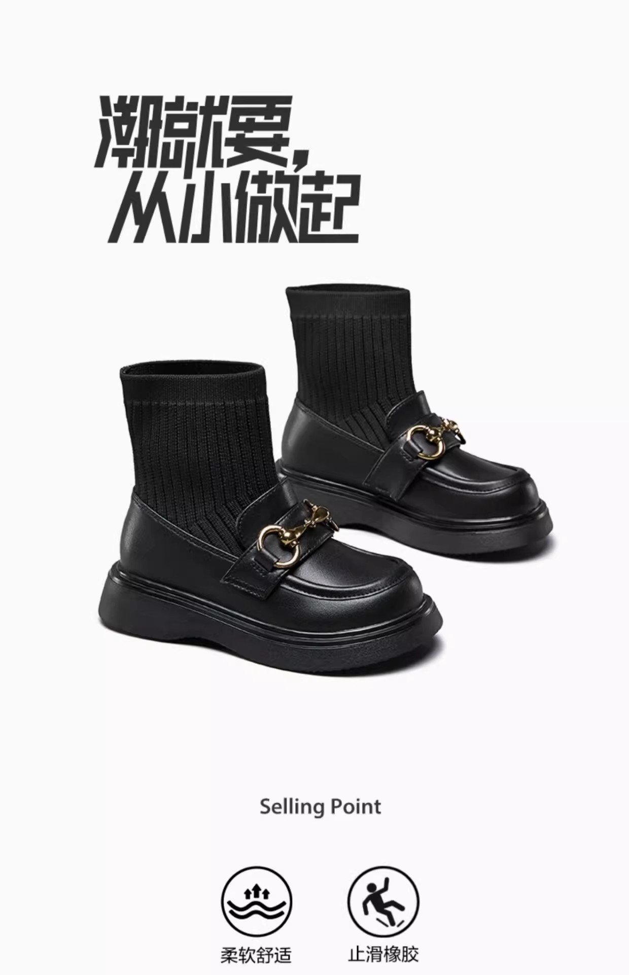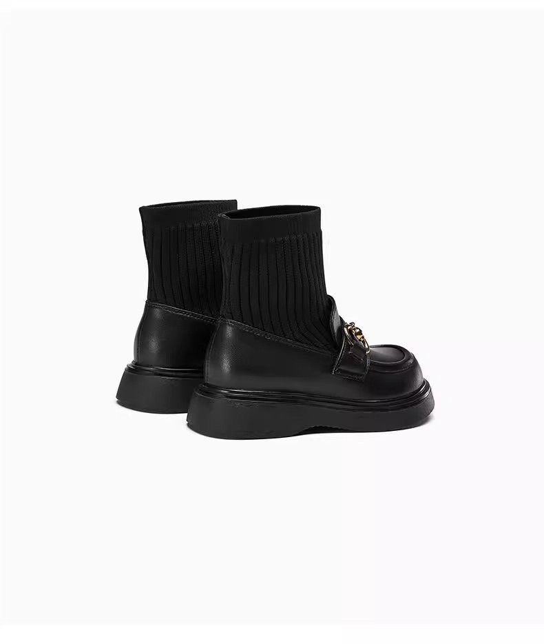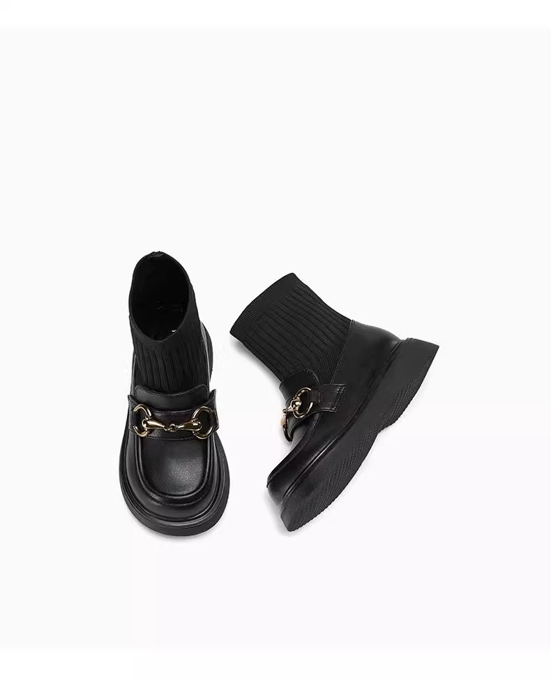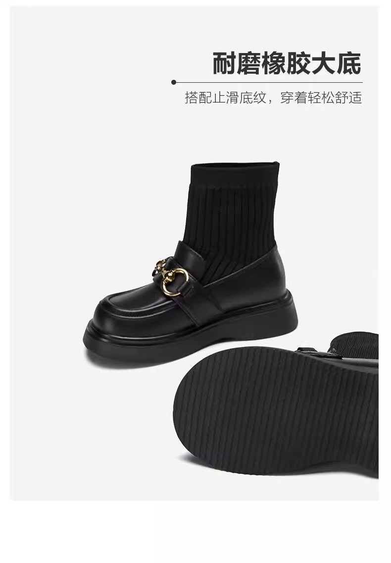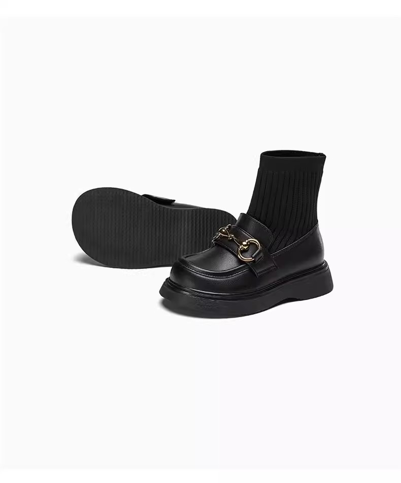 女童真皮2025秋冬新款中大童儿童韩版黑色毛线口弹力袜短靴马丁靴