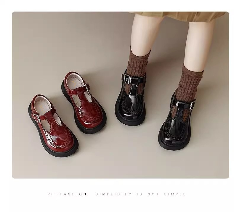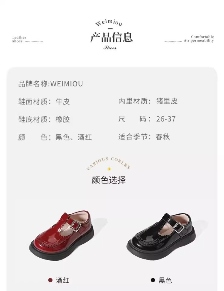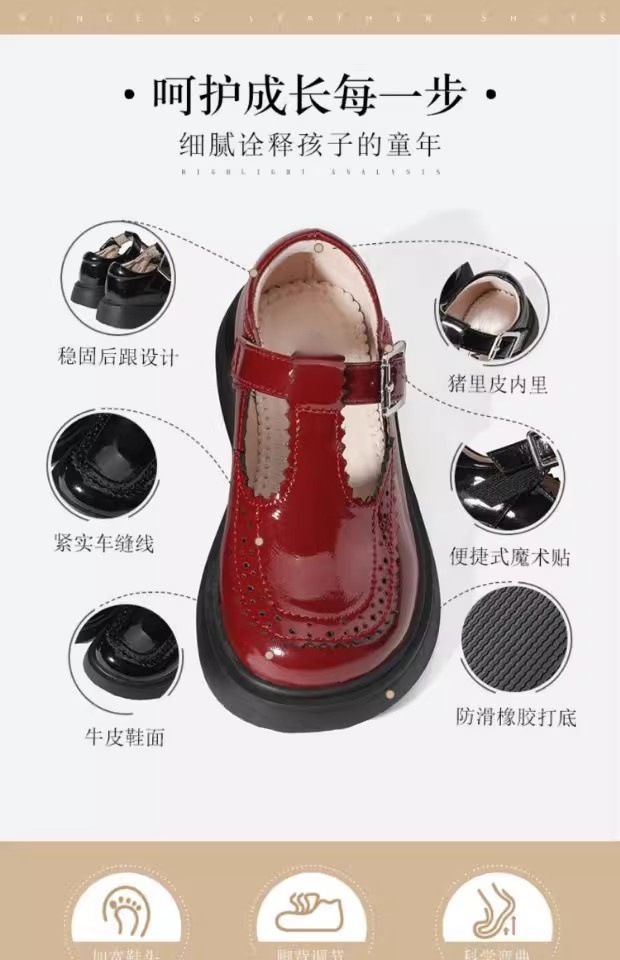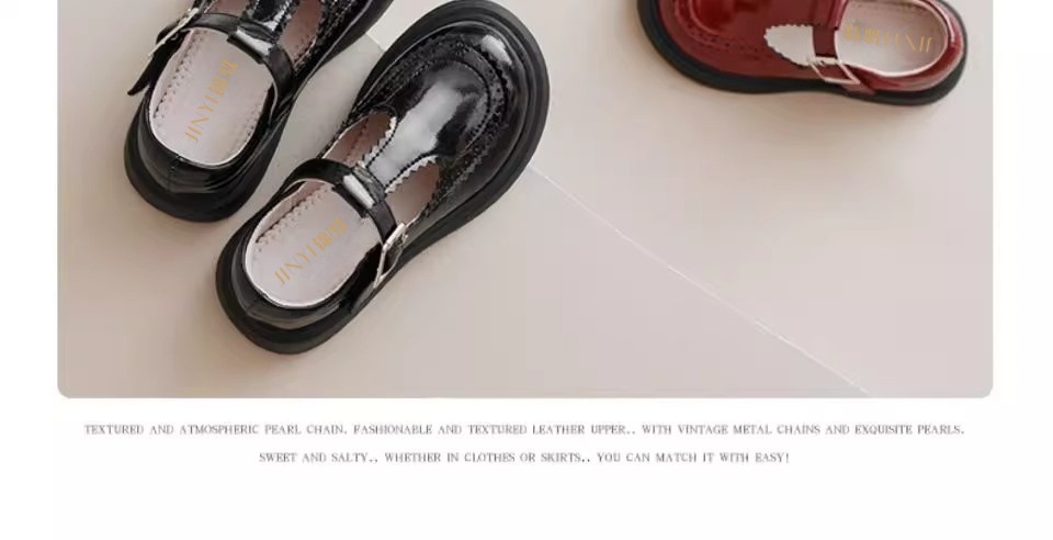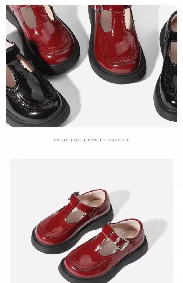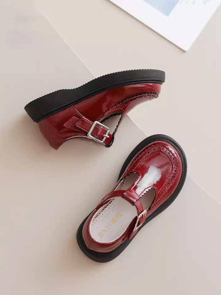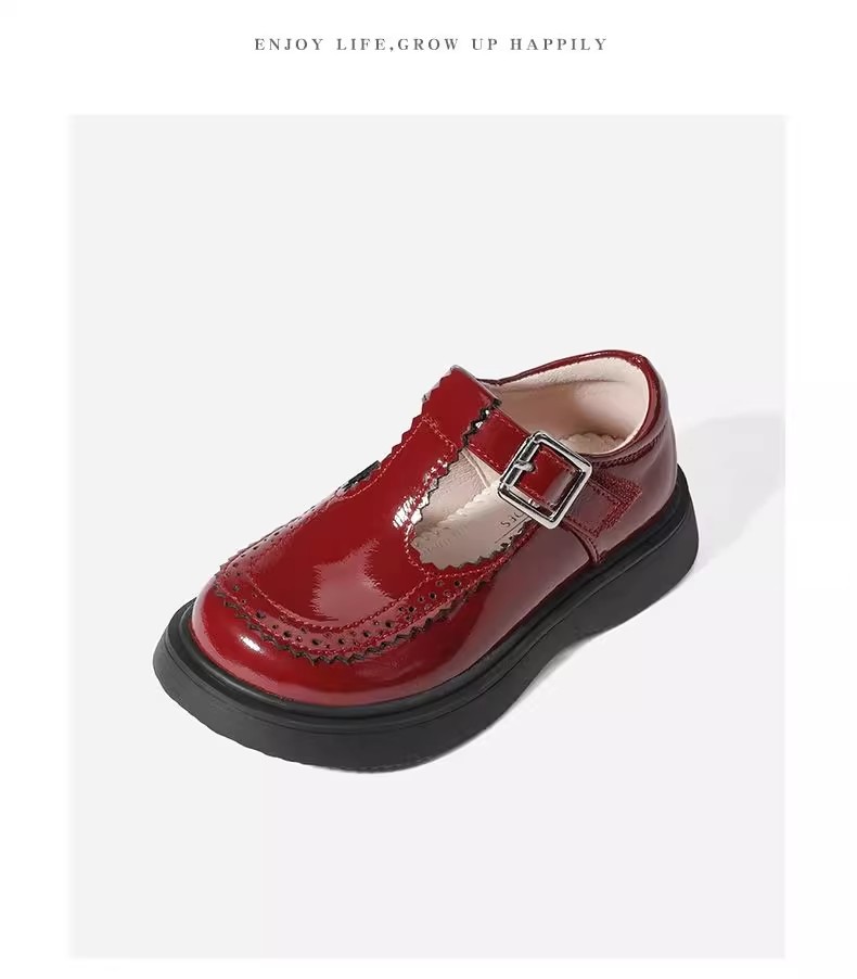 酒红色儿童皮鞋女童春秋季新款真皮珍珠吊坠软底学生单鞋演出舞蹈