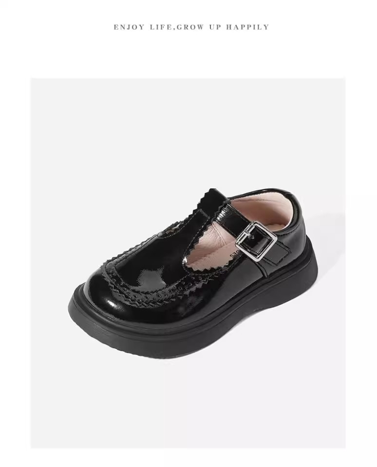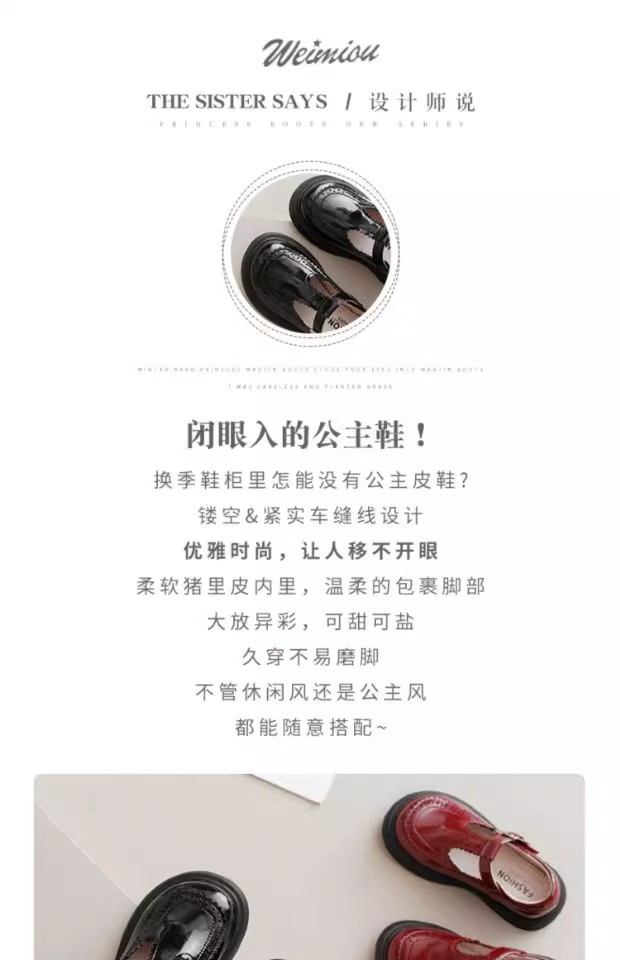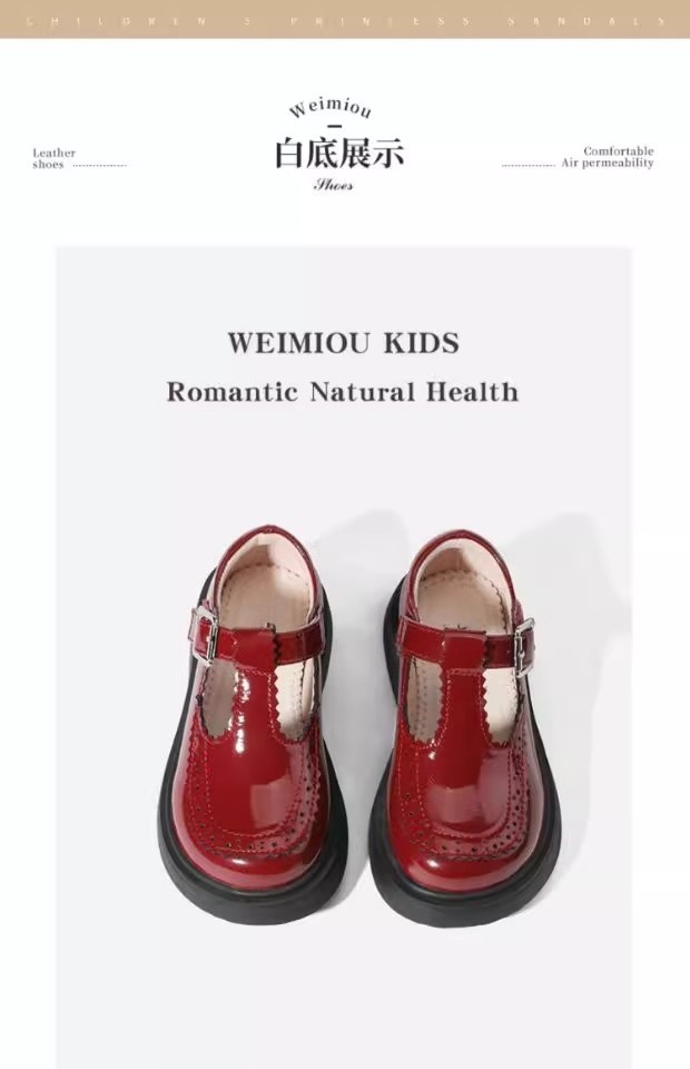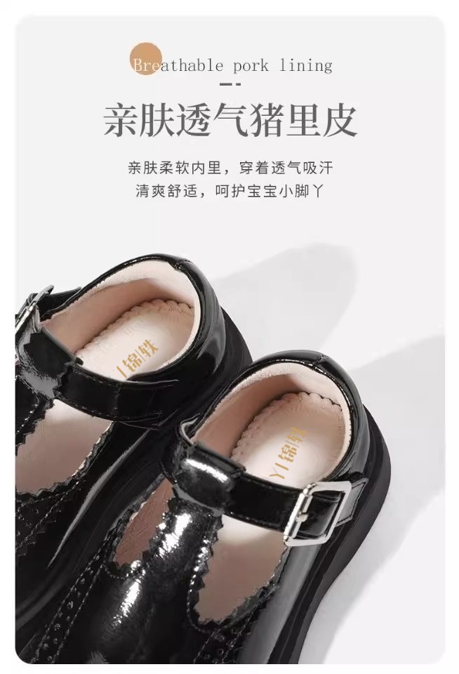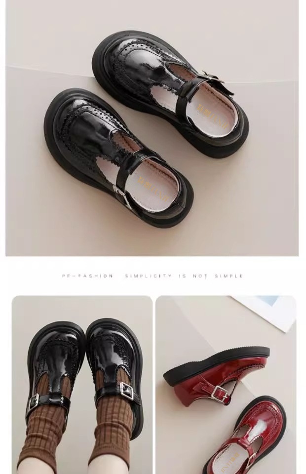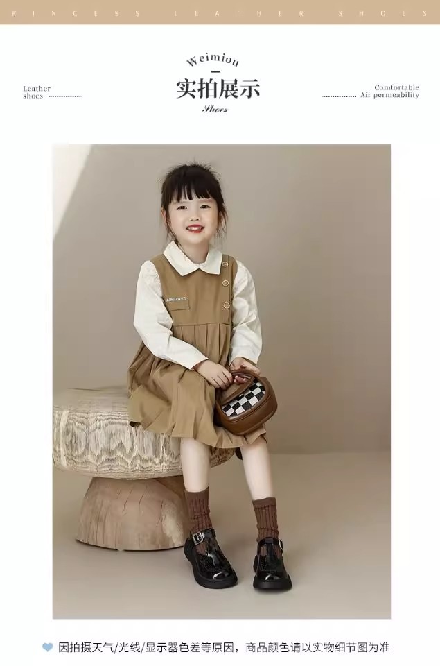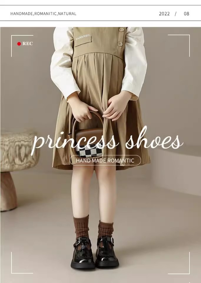 酒红色儿童皮鞋女童春秋季新款真皮珍珠吊坠软底学生单鞋演出舞蹈