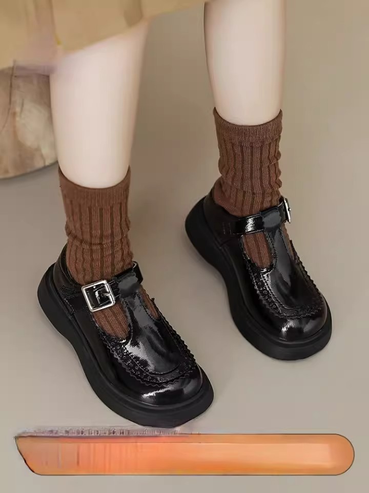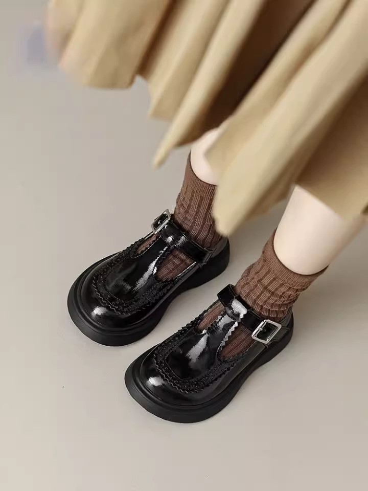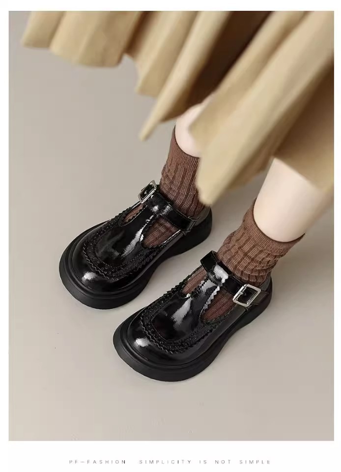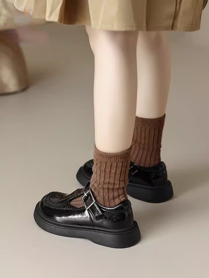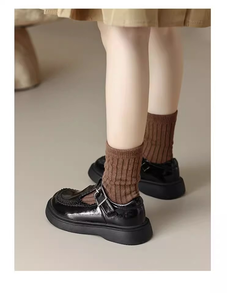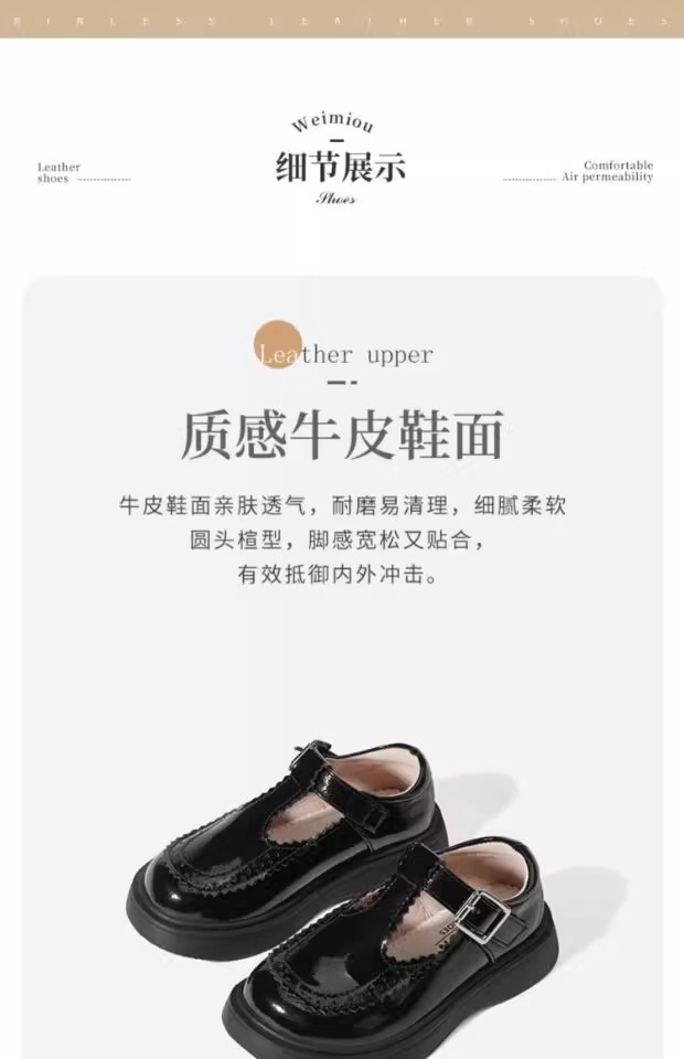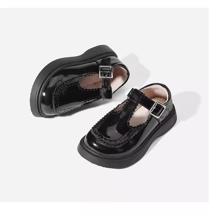 酒红色儿童皮鞋女童春秋季新款真皮珍珠吊坠软底学生单鞋演出舞蹈